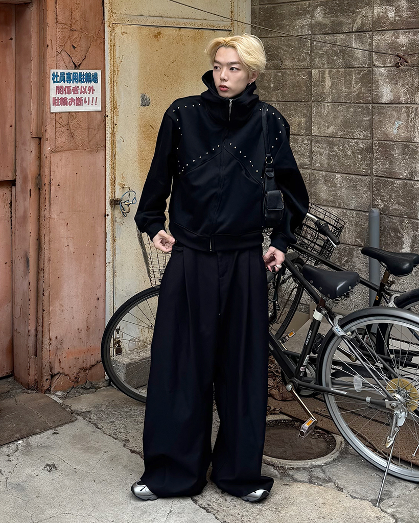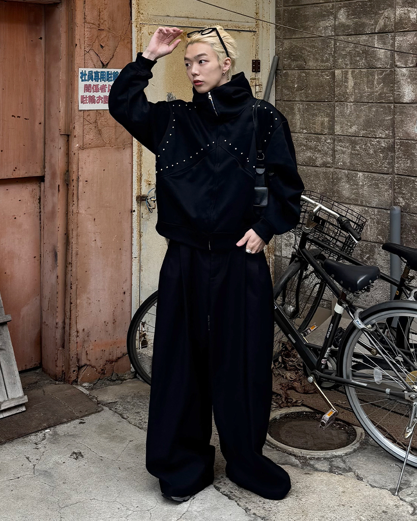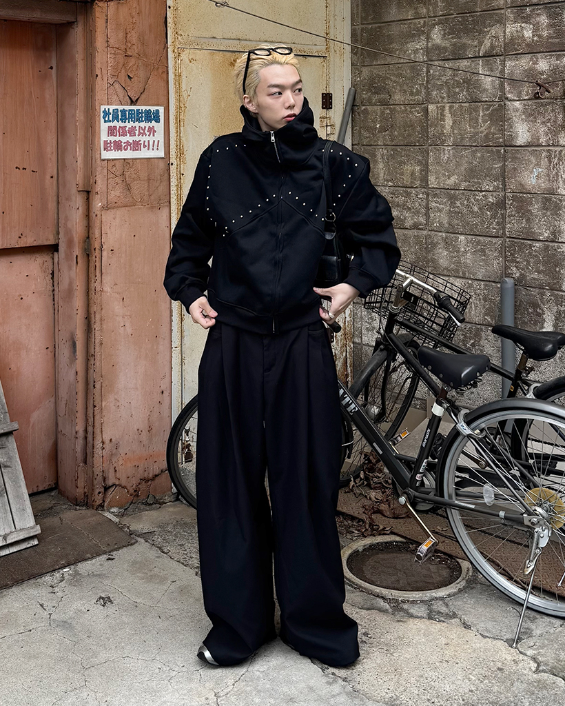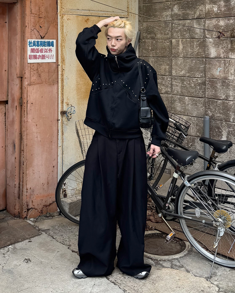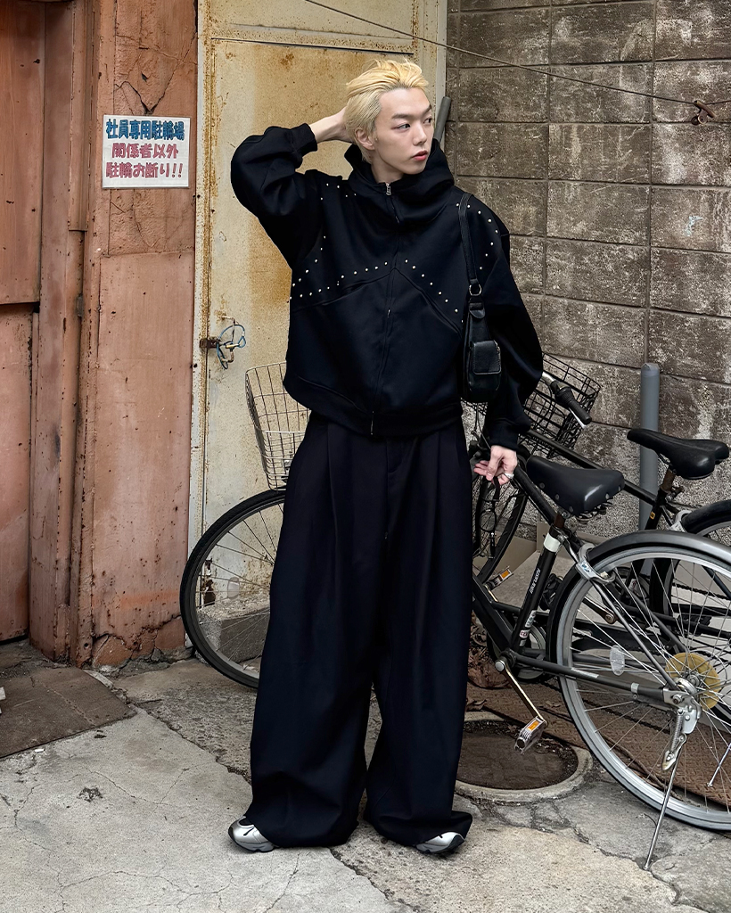 (ユニセックス)ルーズフィットスタッズポイントパーカー