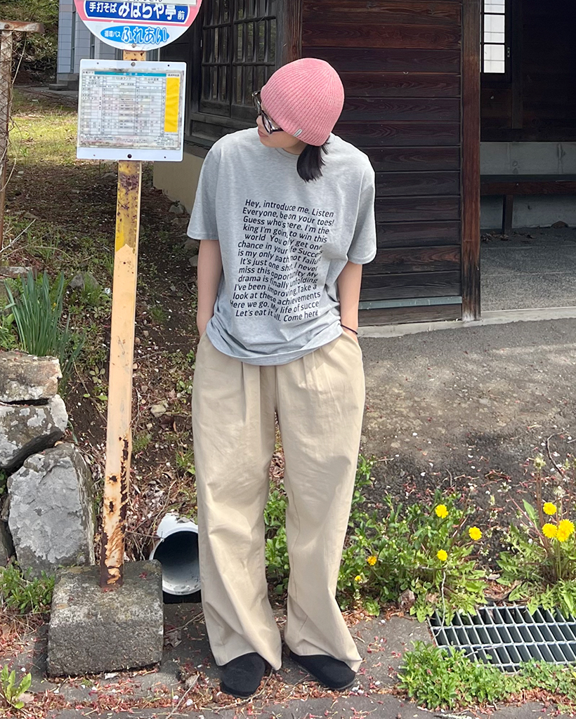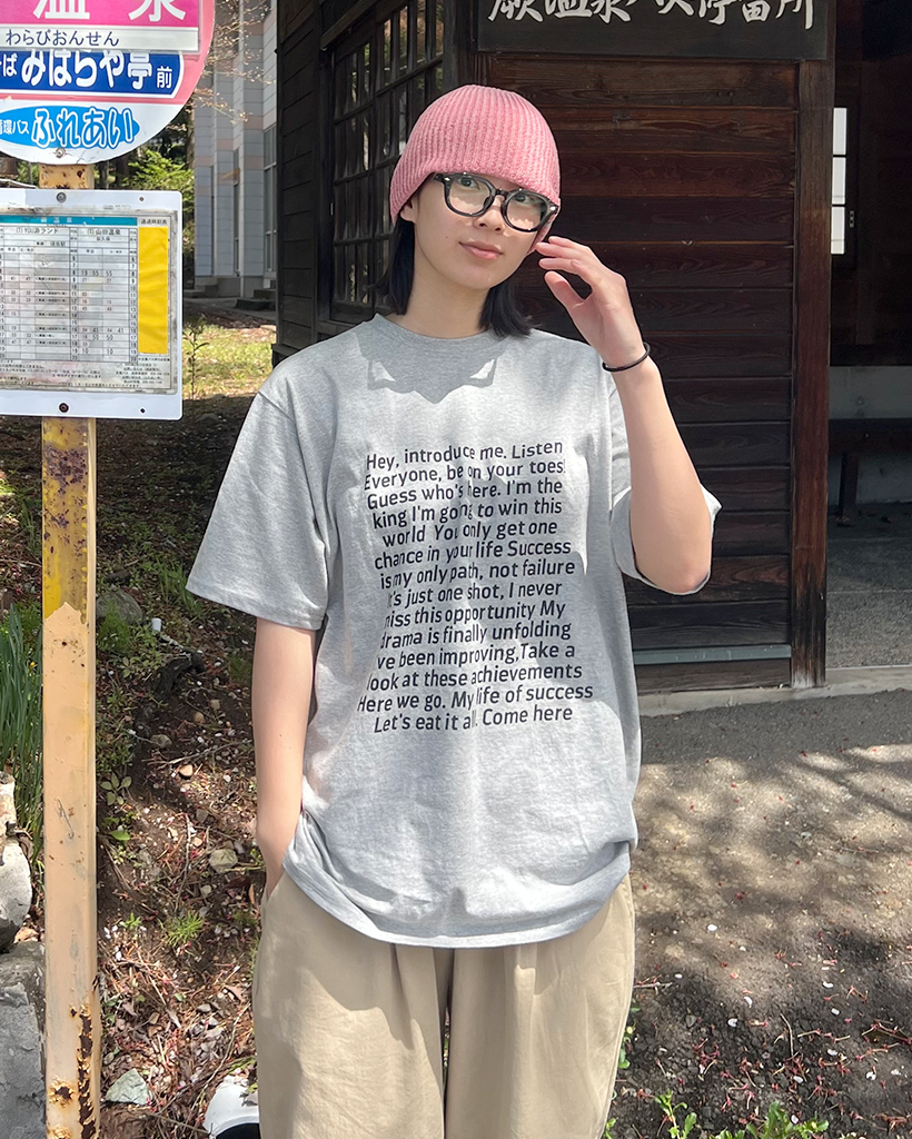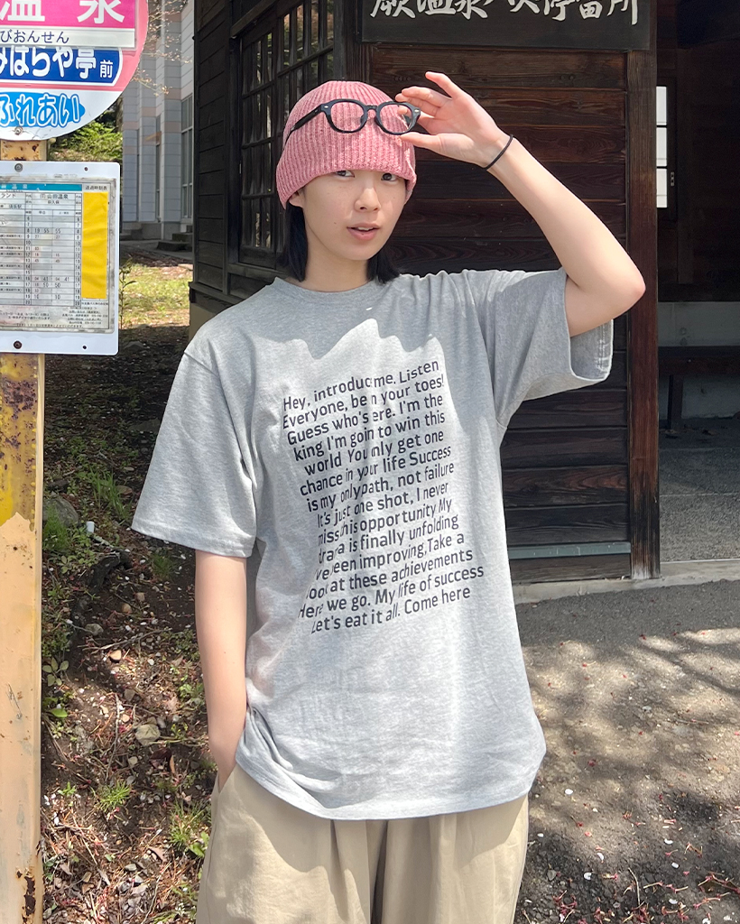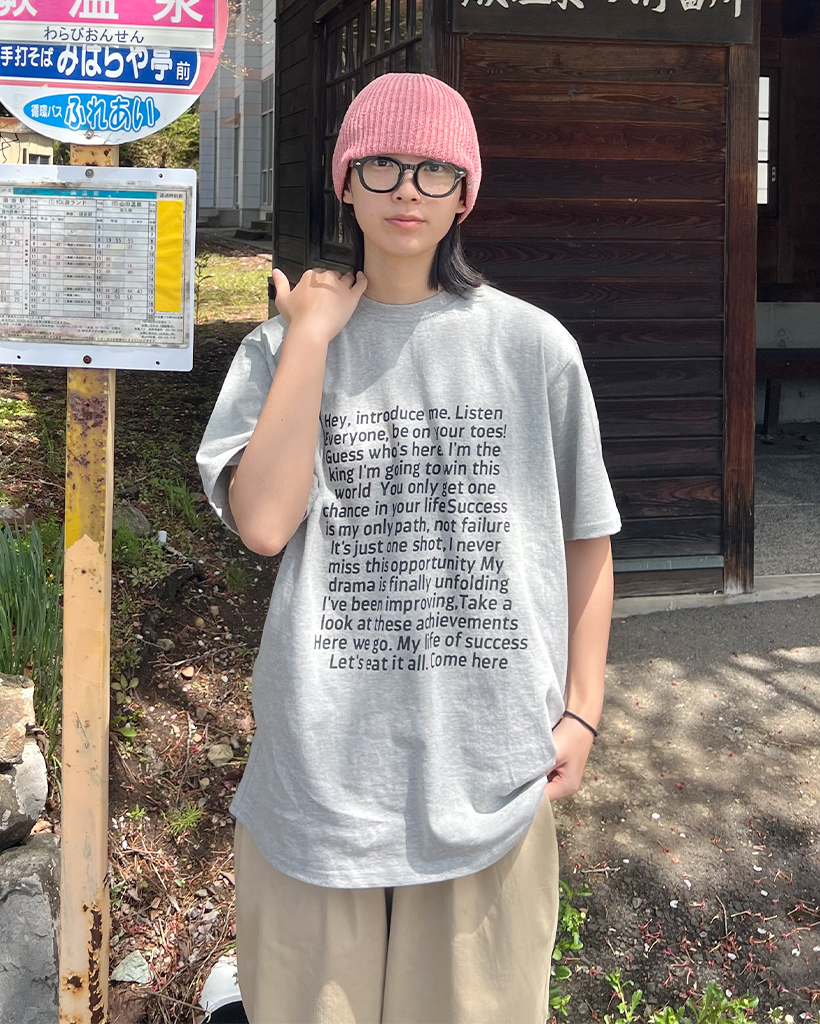 (ユニセックス)ルーズフィットレタリング半袖Tシャツ