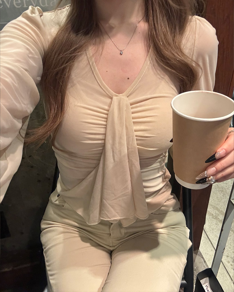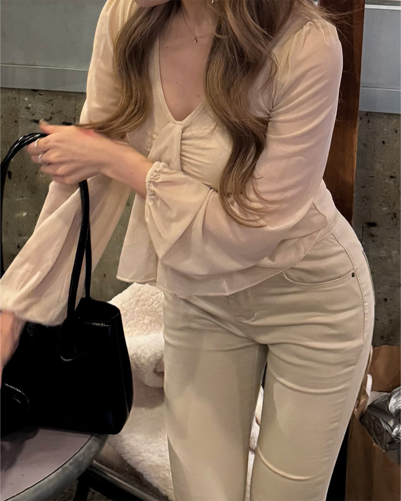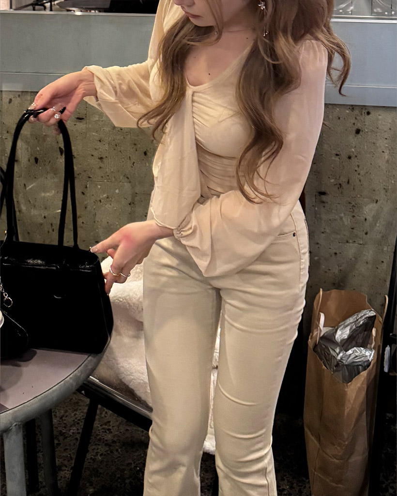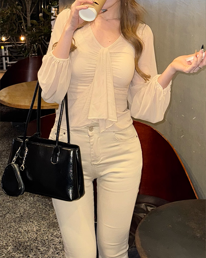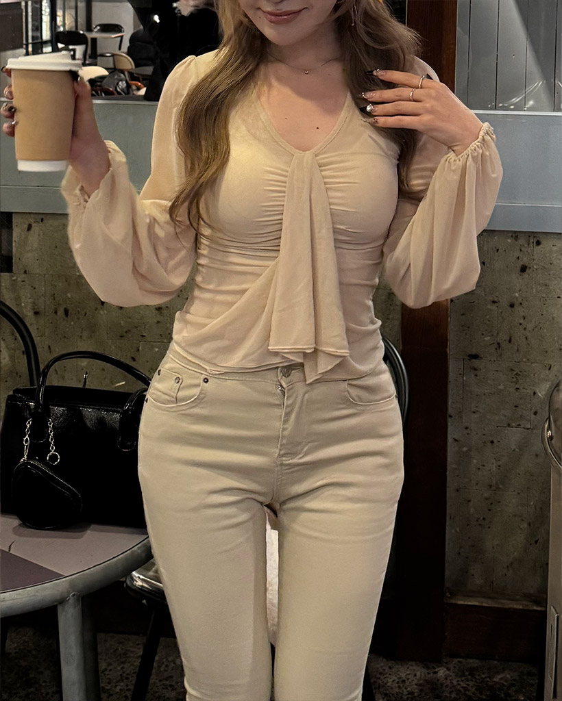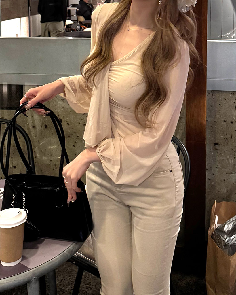 Vネックギャザーブラウス
