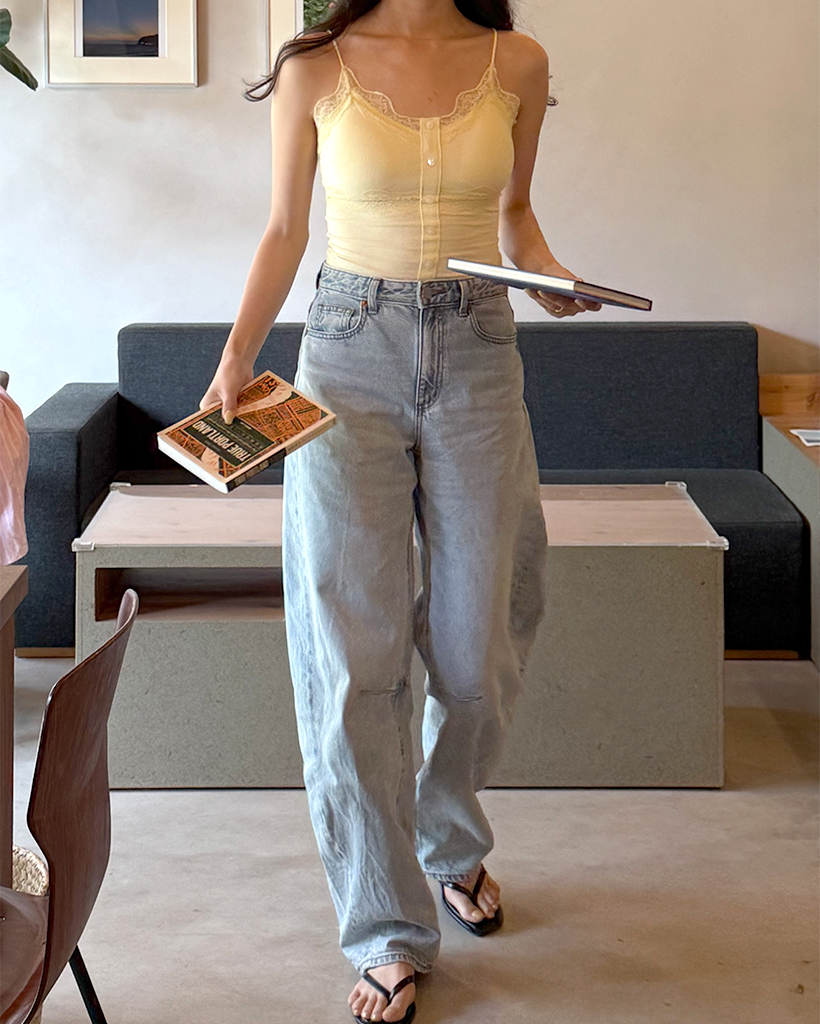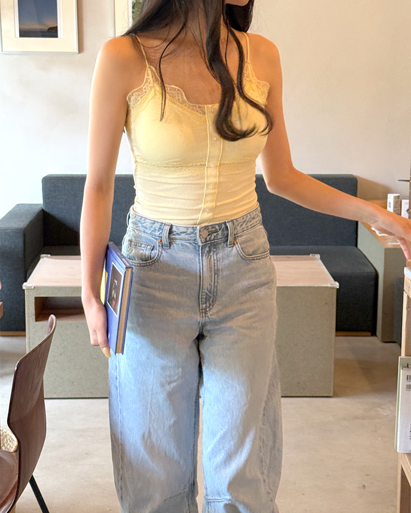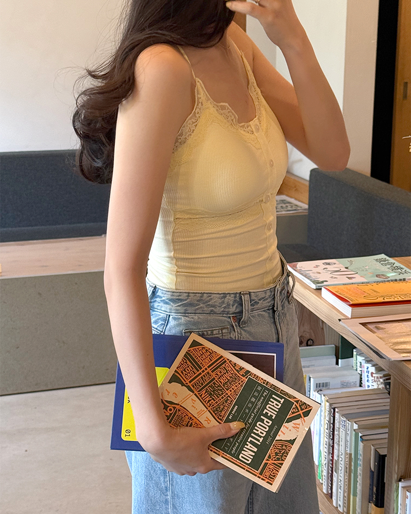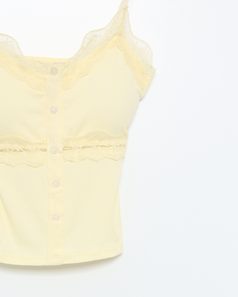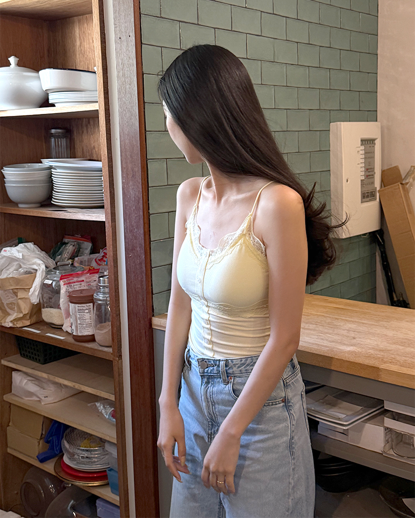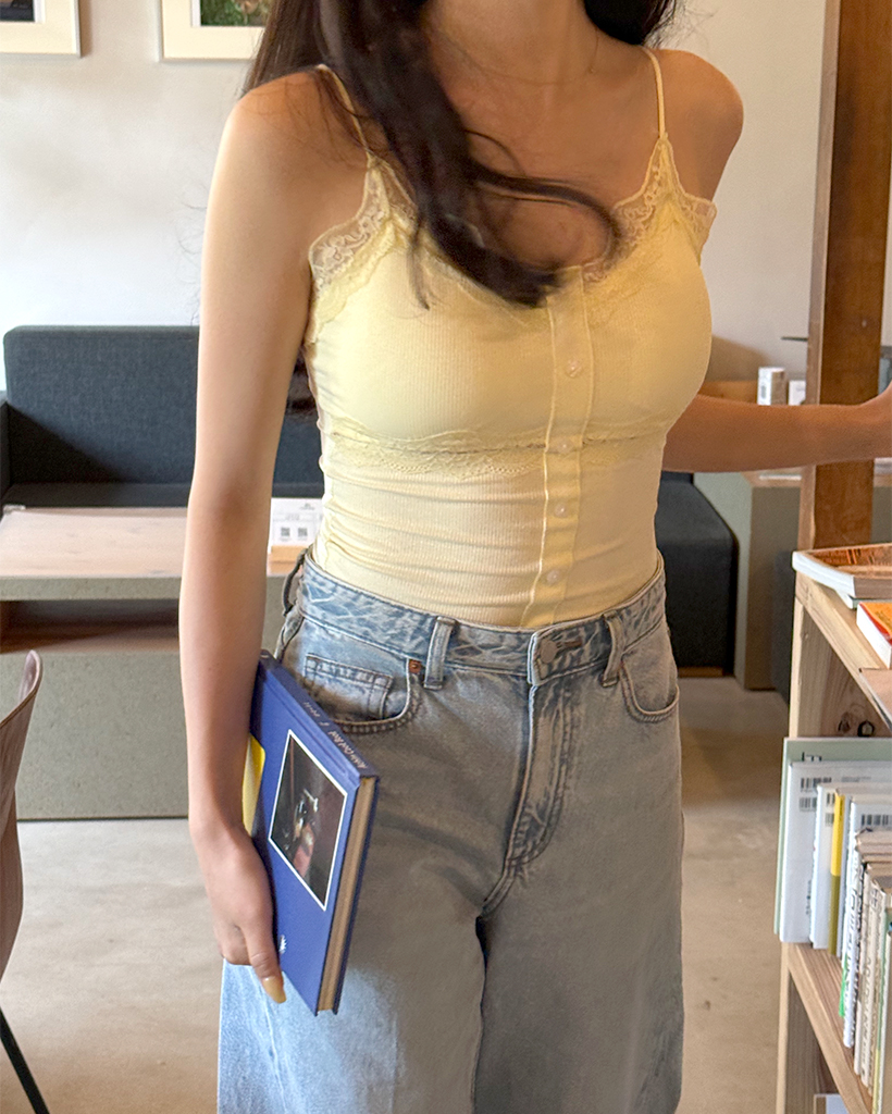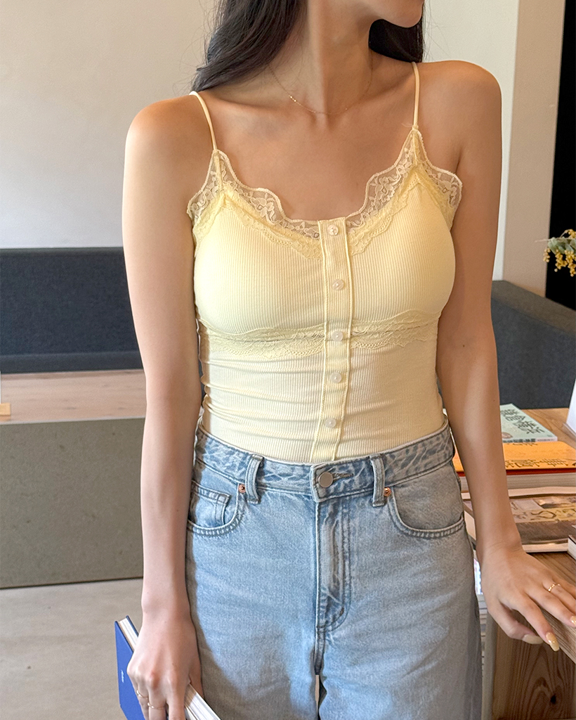 レースボタンノースリーブトップ