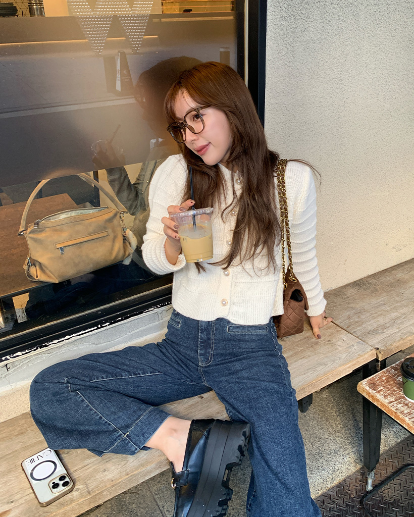 パールボタンニットカーディガン