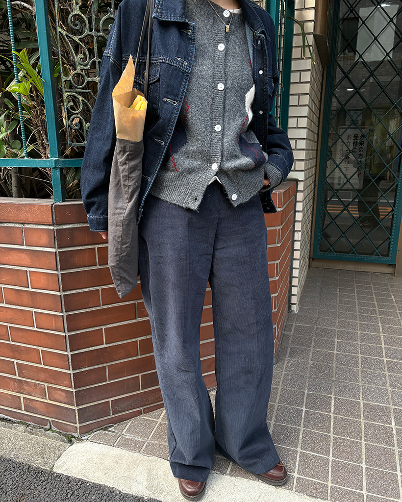 ユニークパイピングポケットスリムコーデュロイパンツ