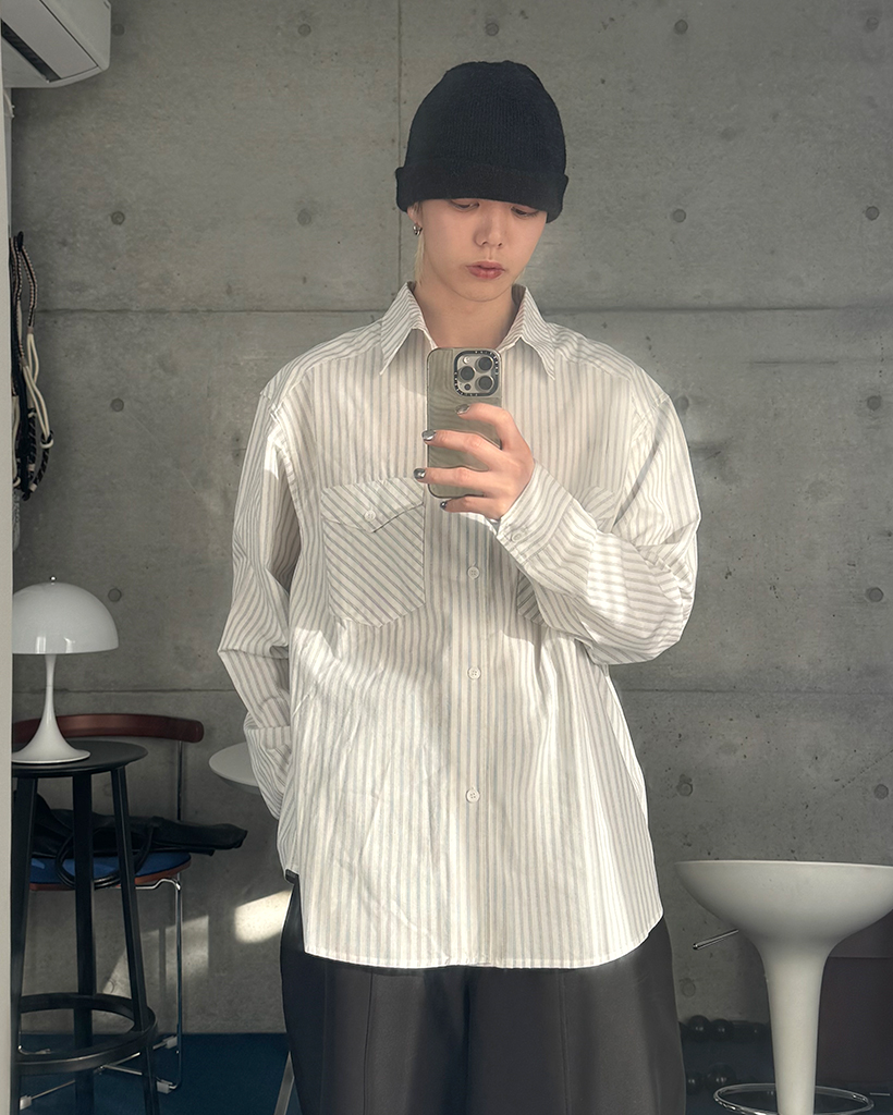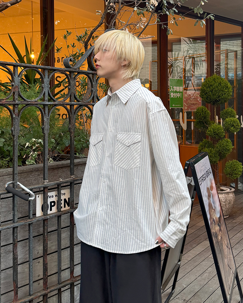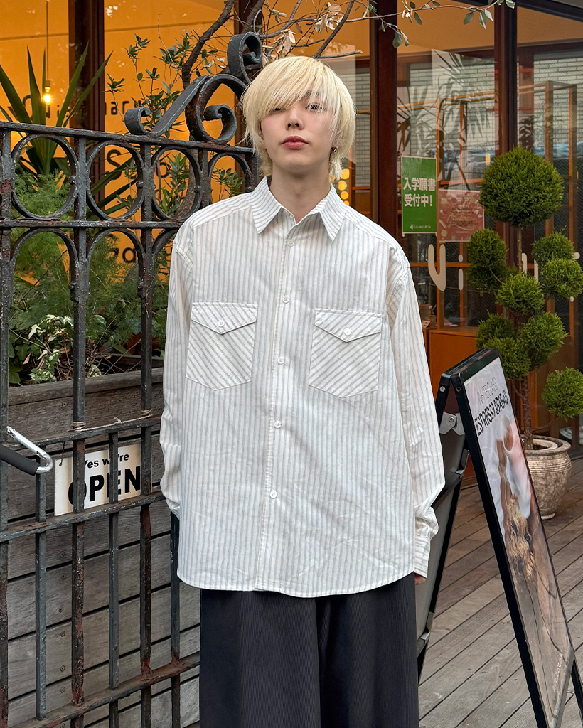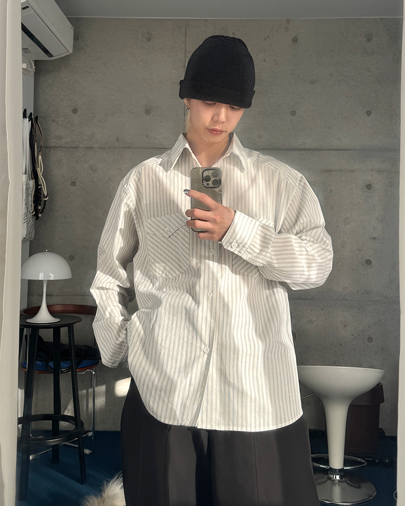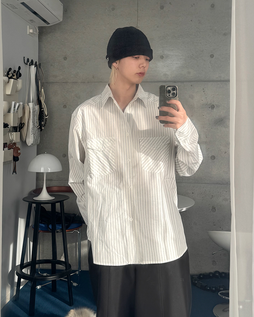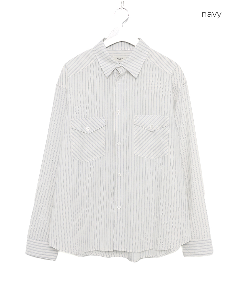 ポケット付きストライプシャツ