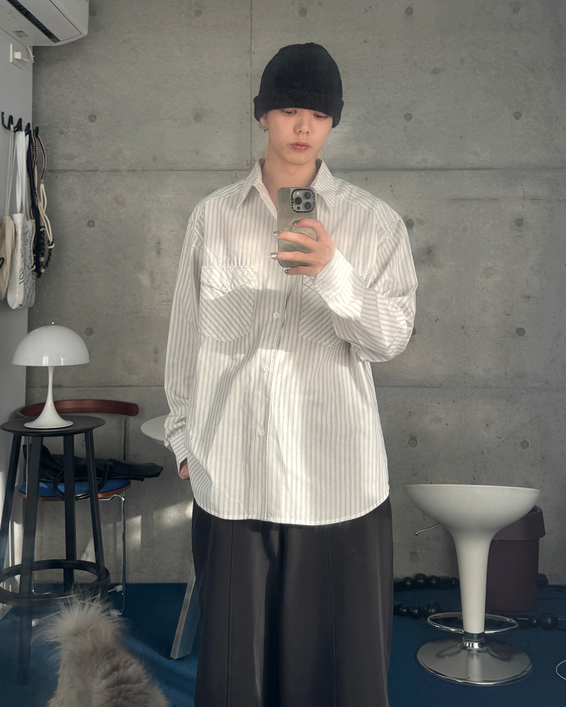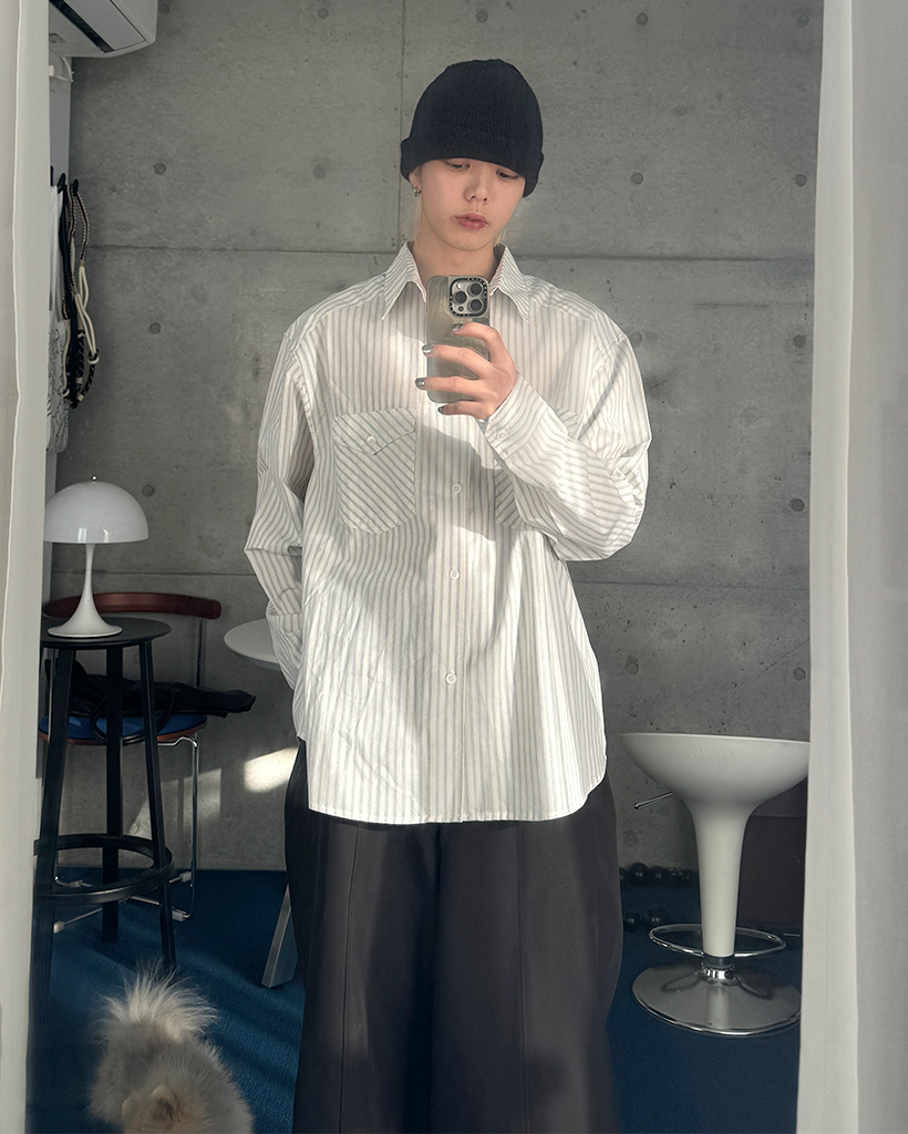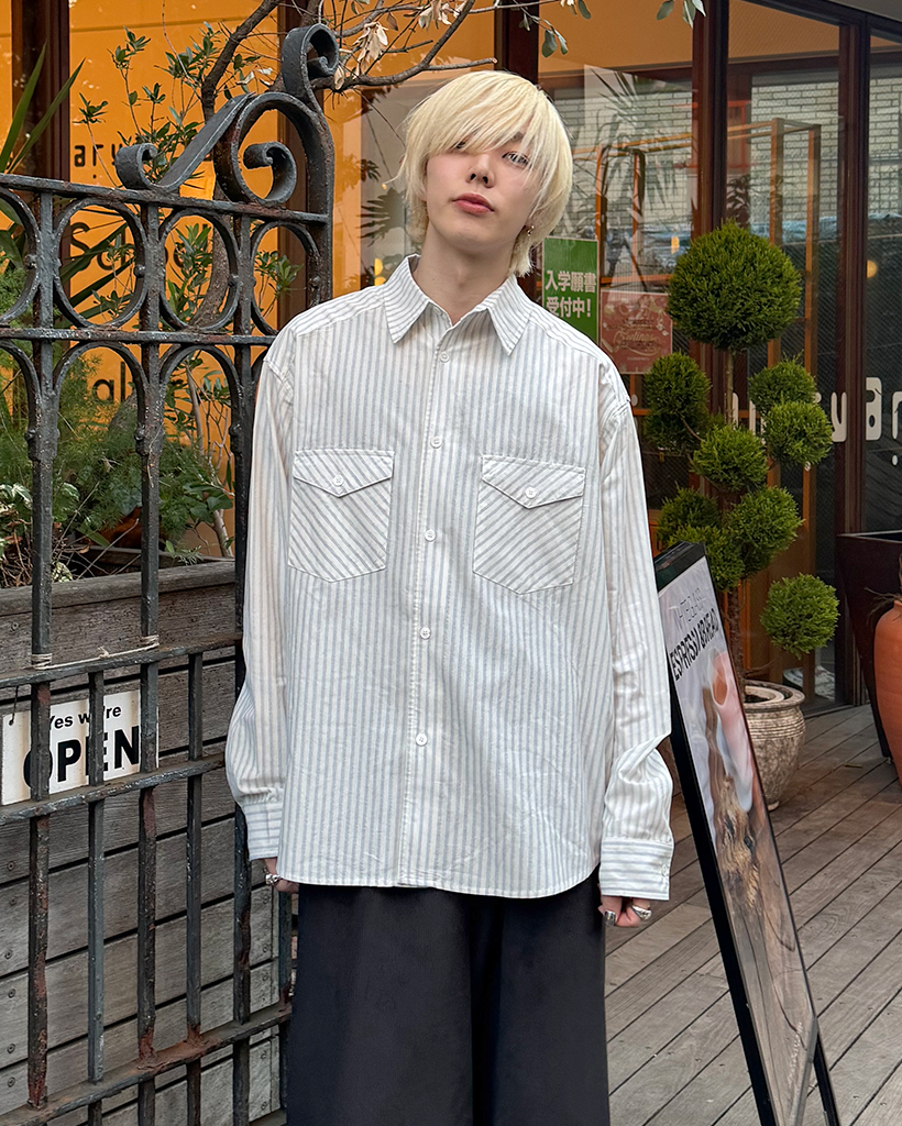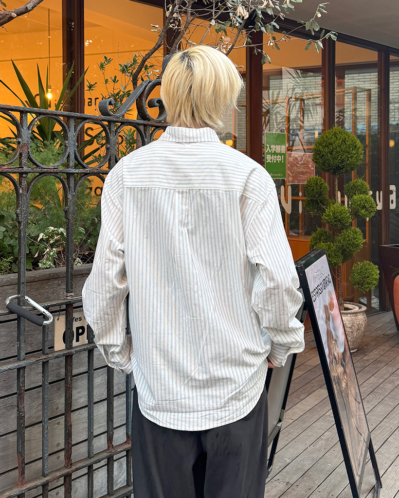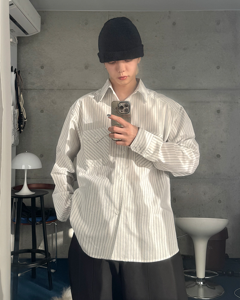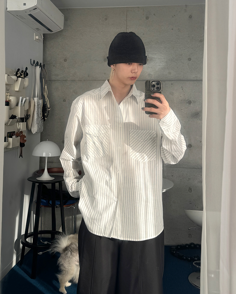 ポケット付きストライプシャツ