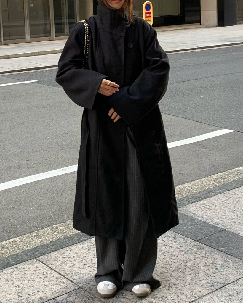 ハイネックウールロングコート