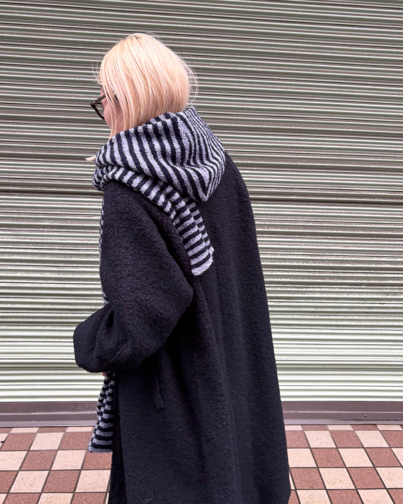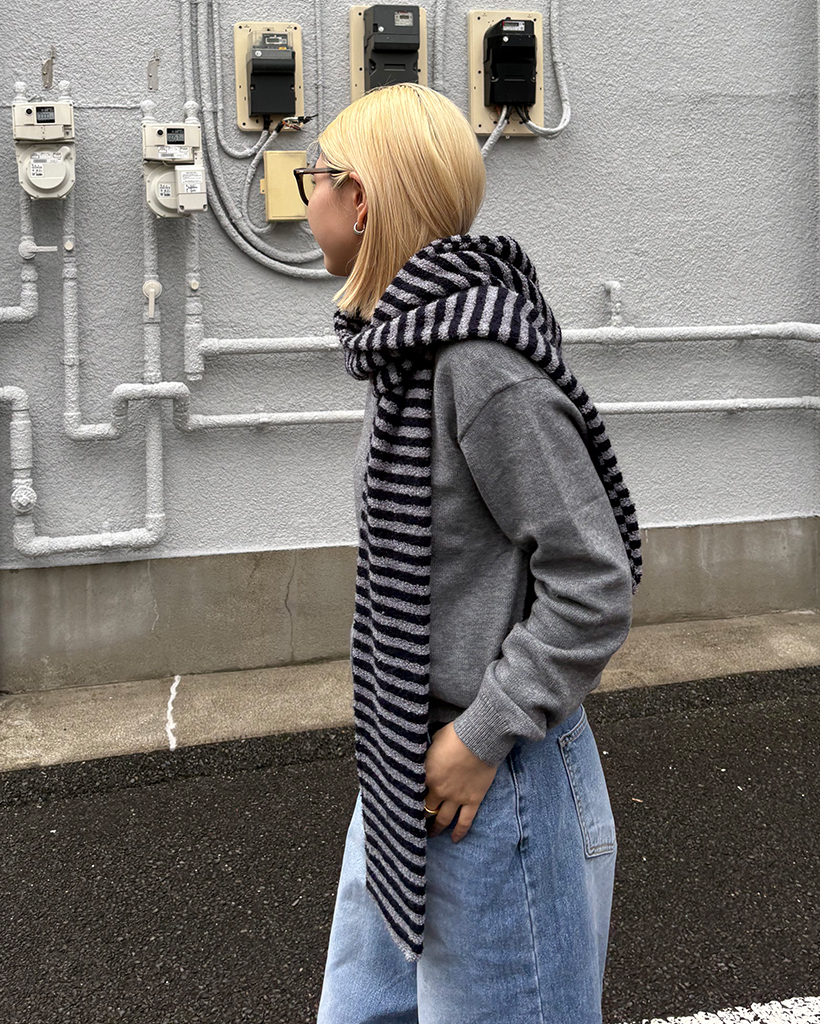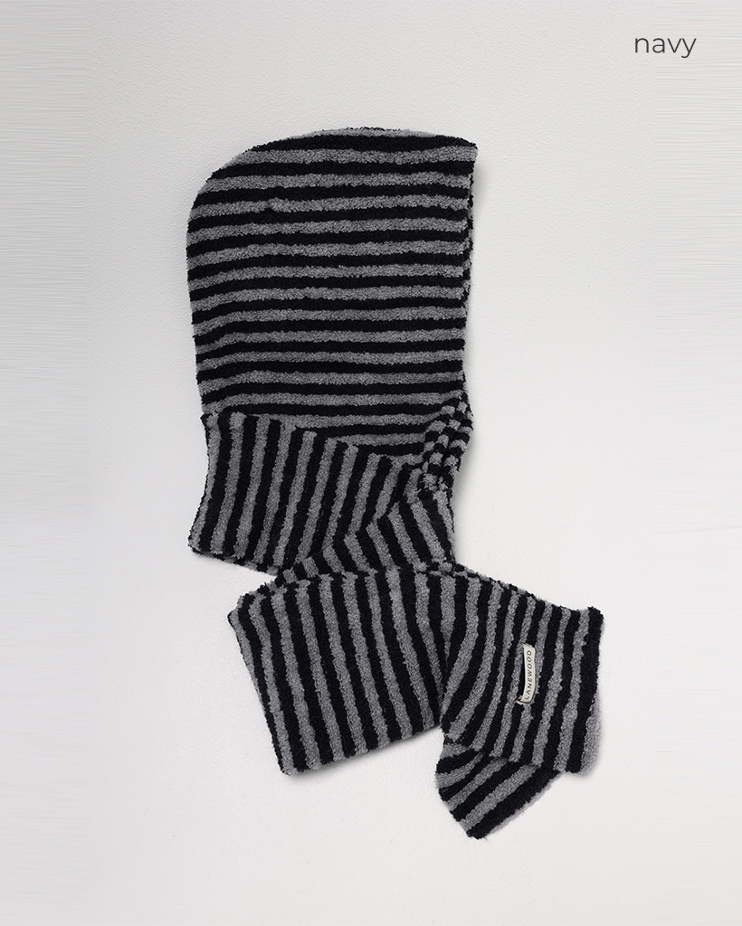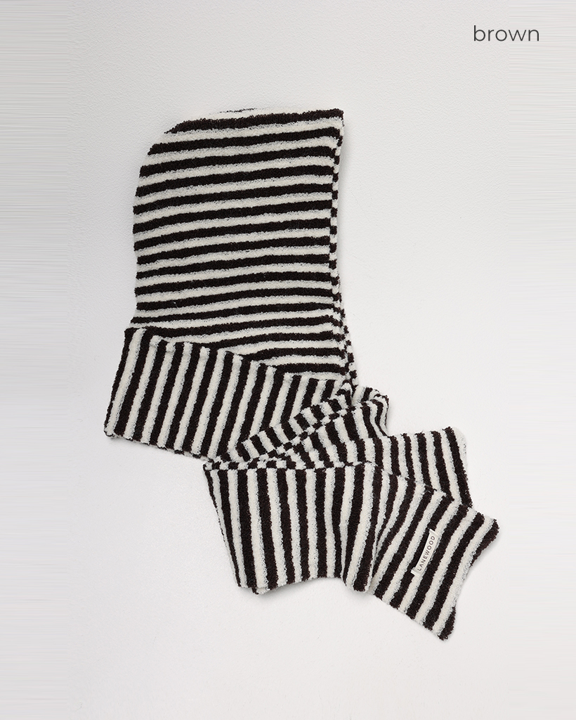 ボーダーパイルニットフードマフラー