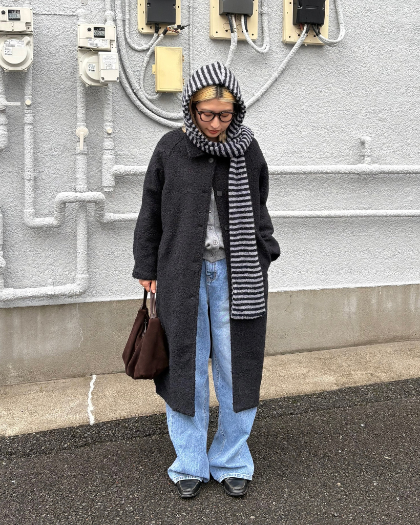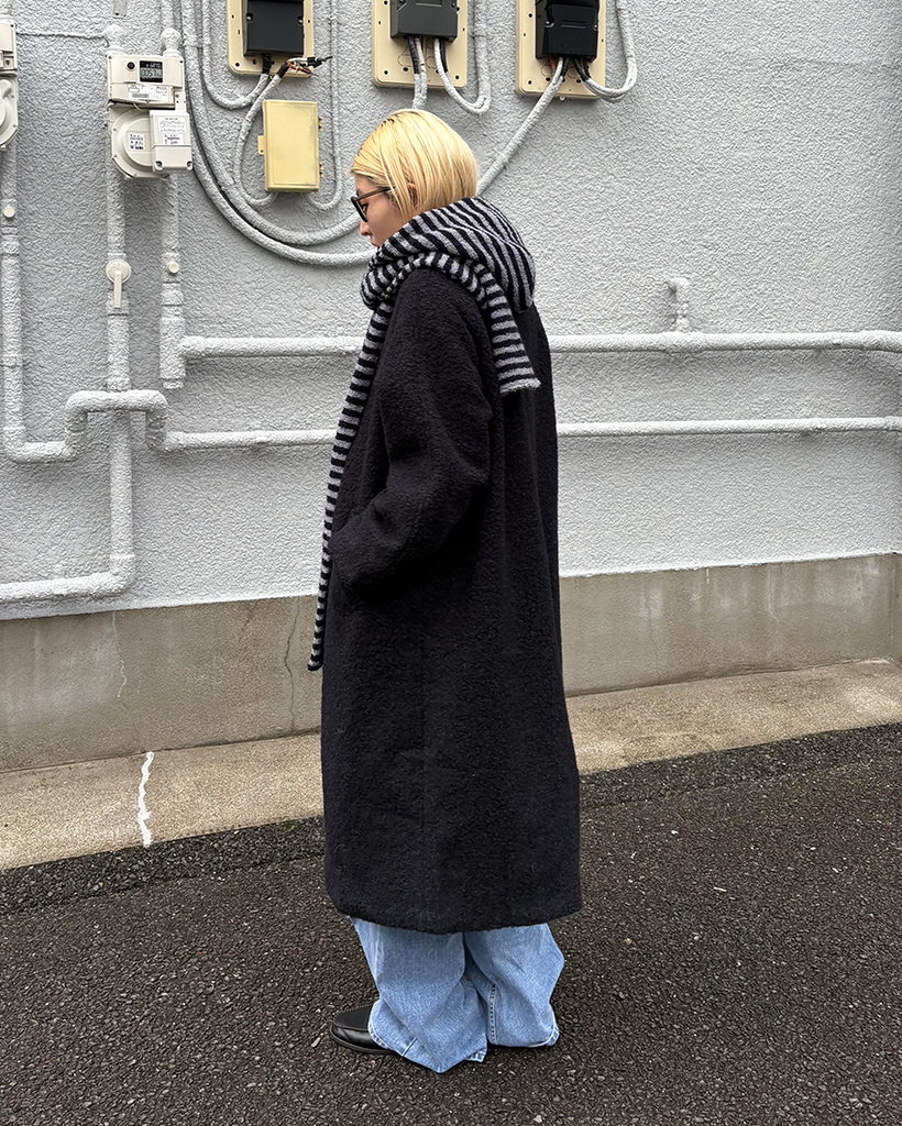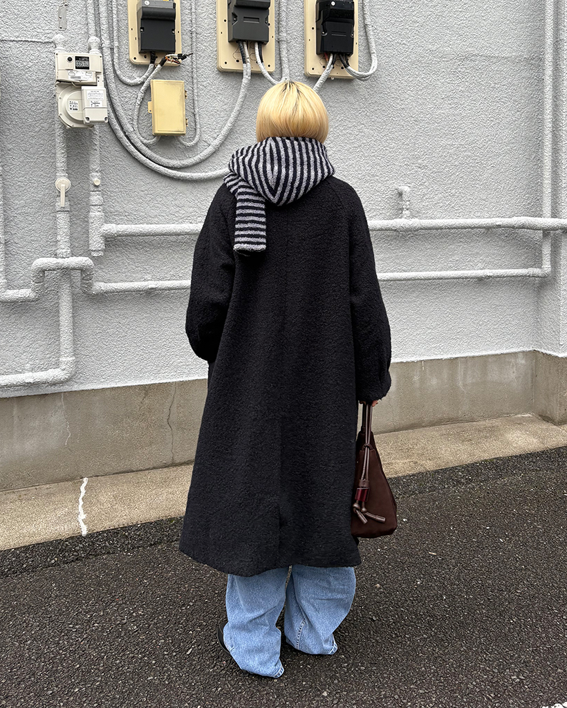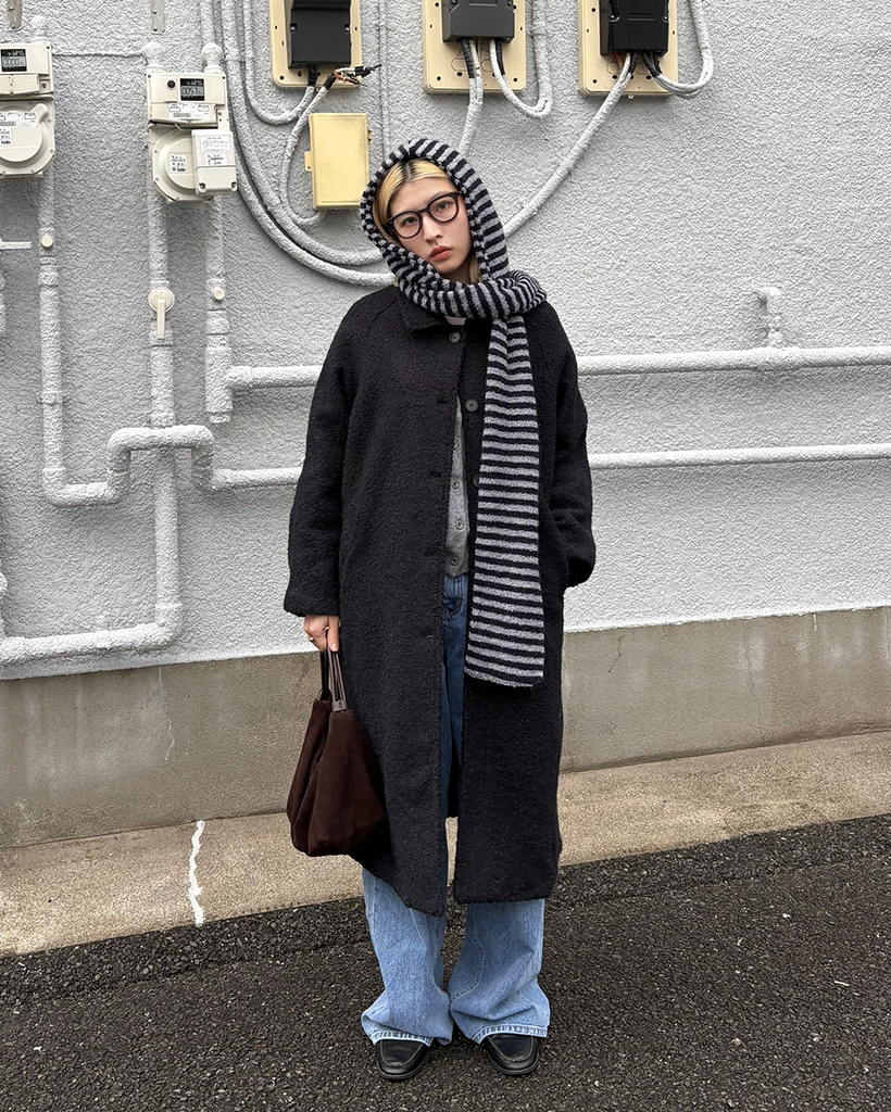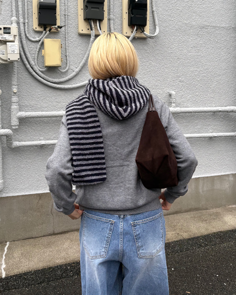 ボーダーパイルニットフードマフラー