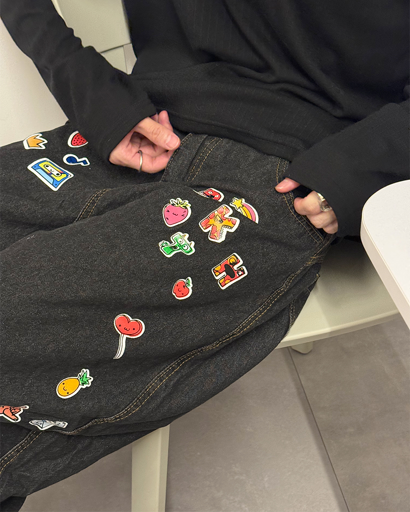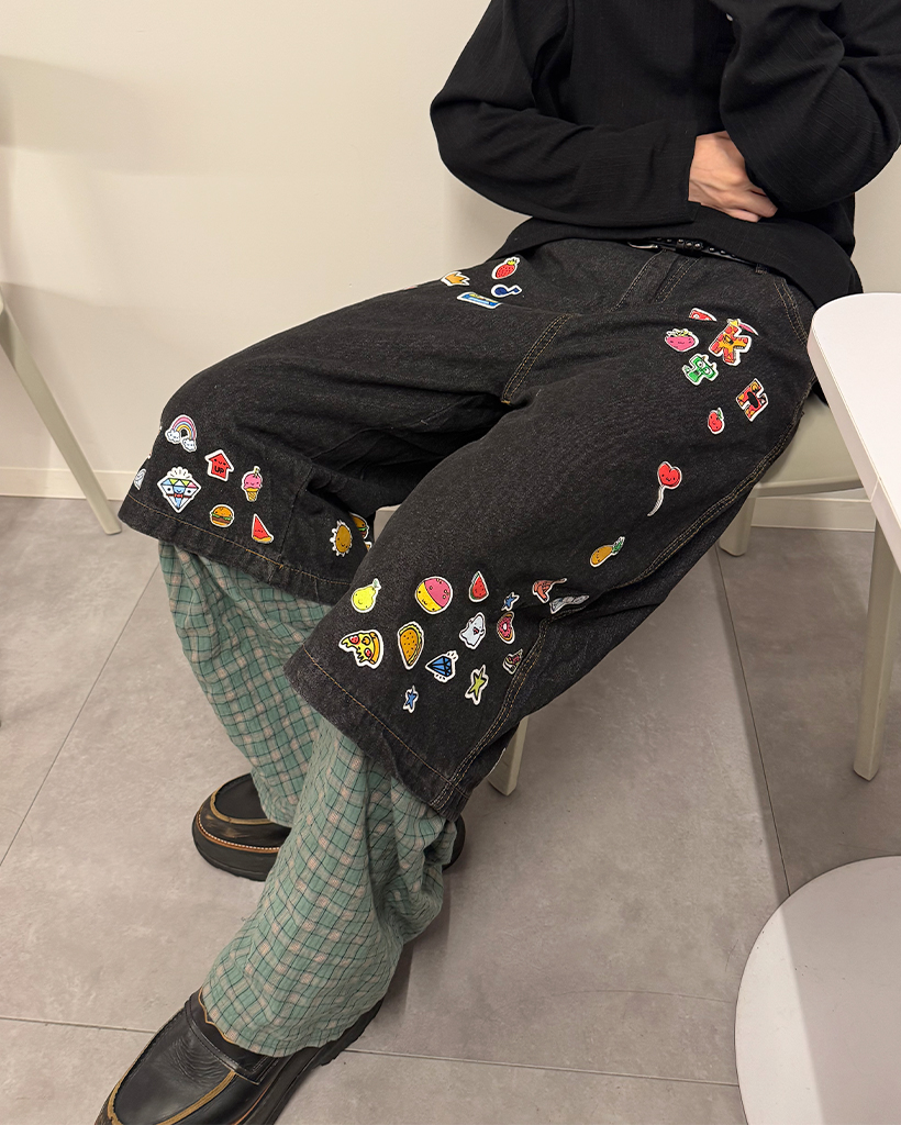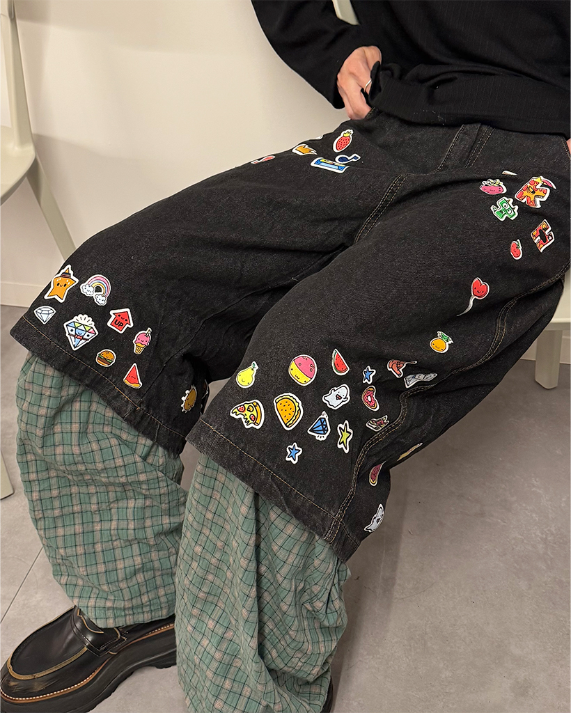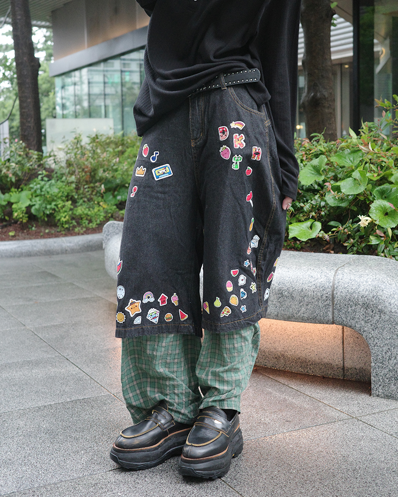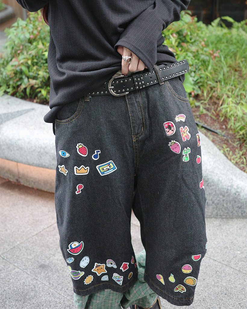 (ユニセックス)カラフルステッカーバミューダパンツ
