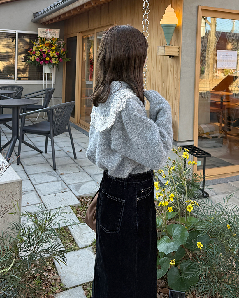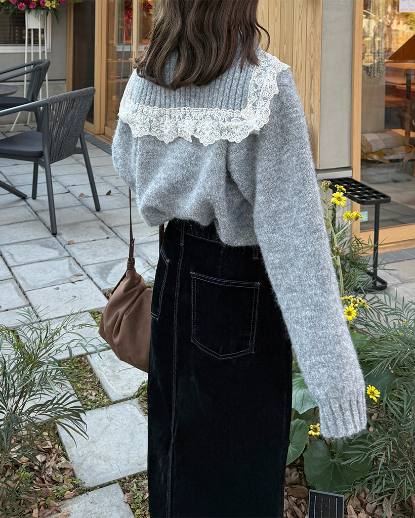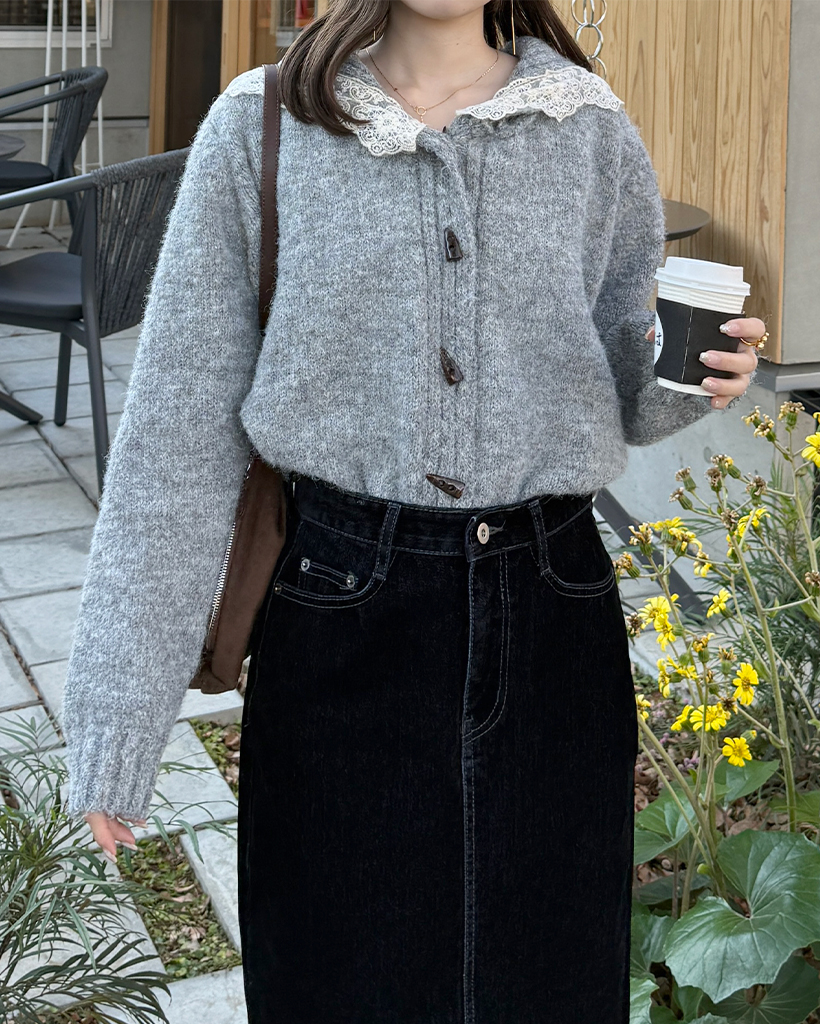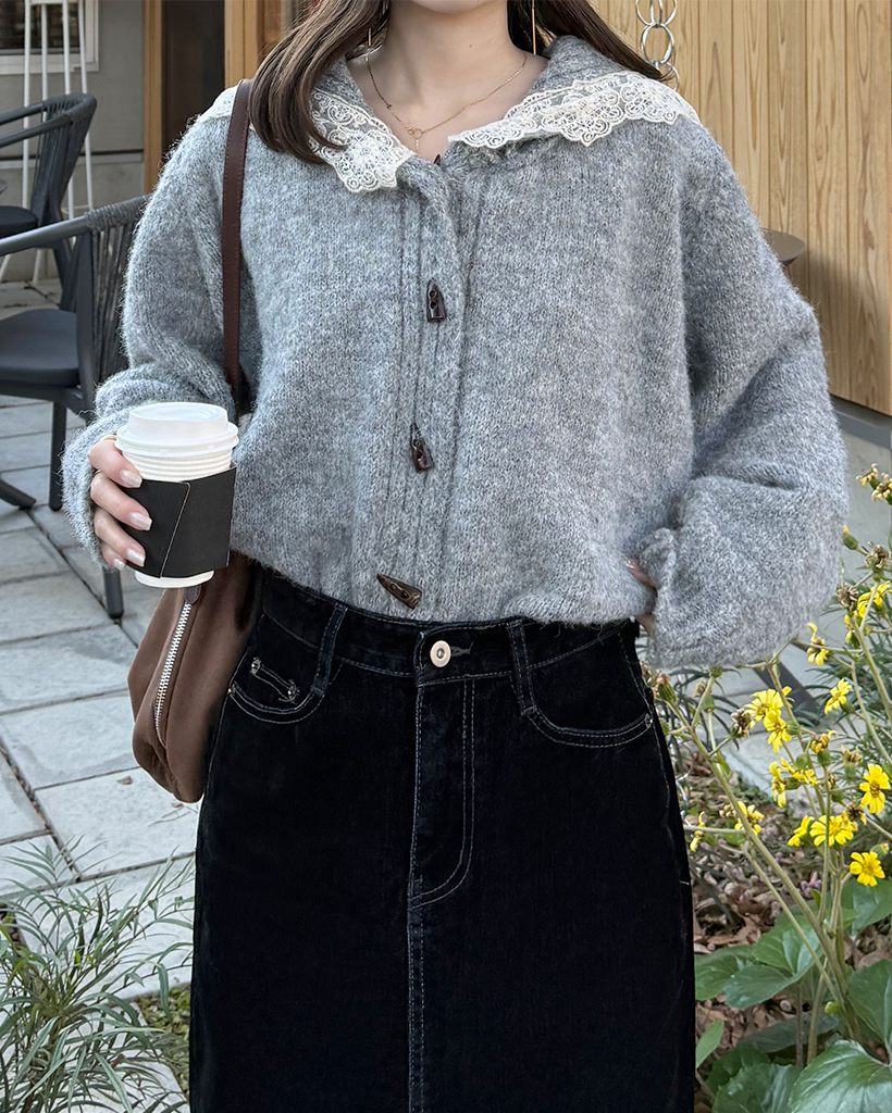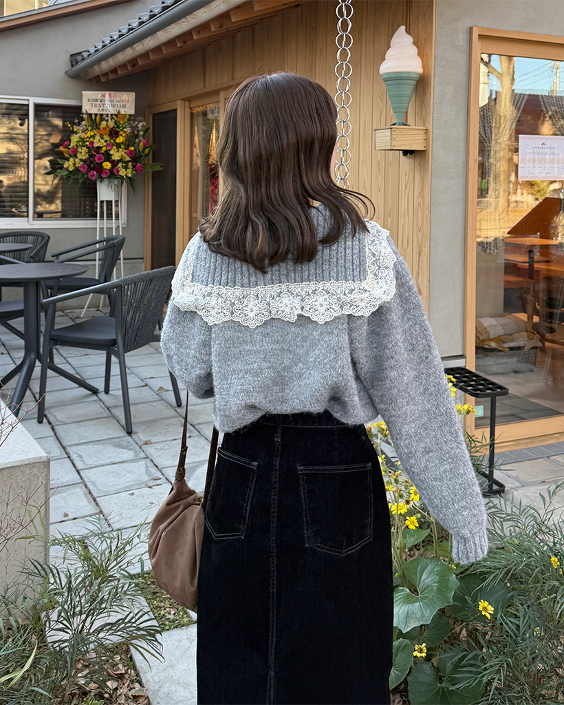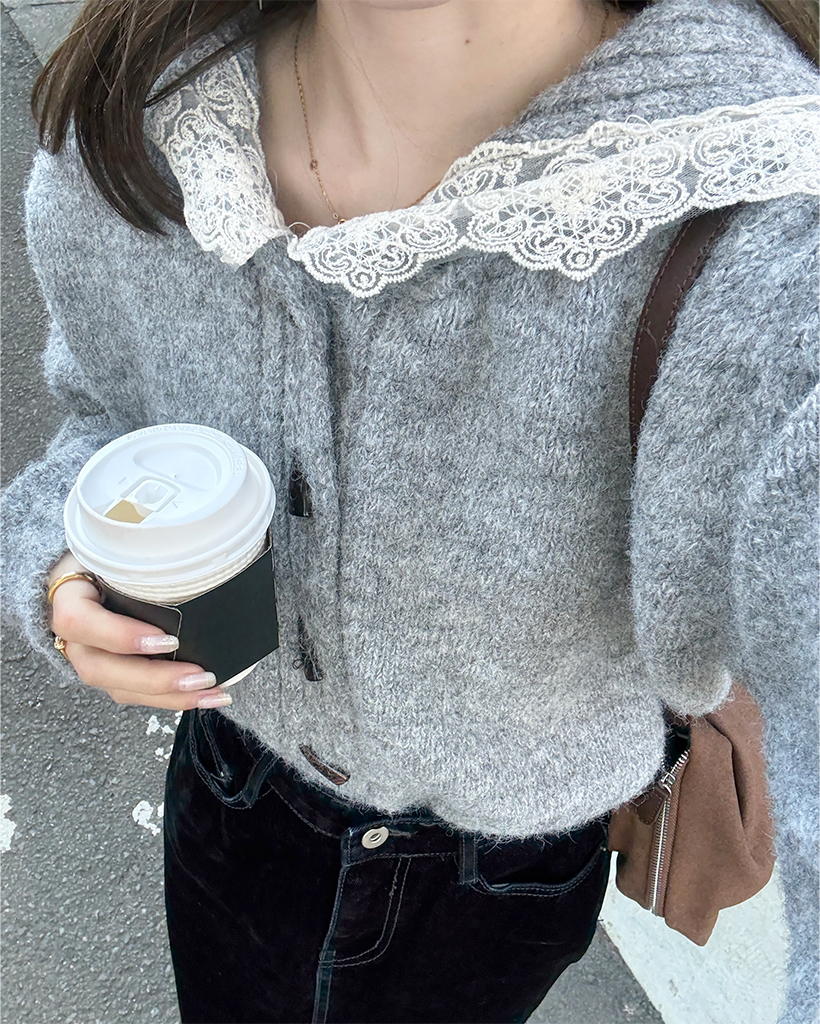 レースセーラーカラーニットカーディガン