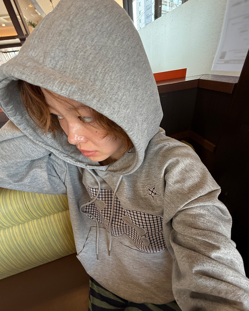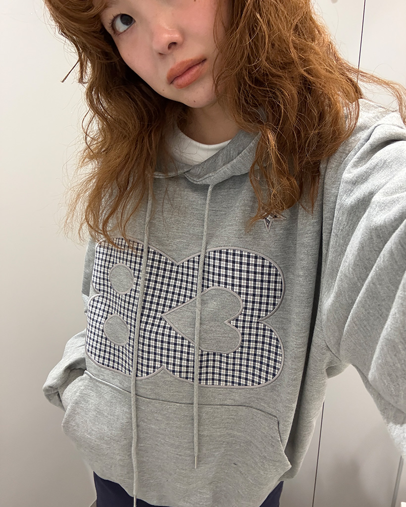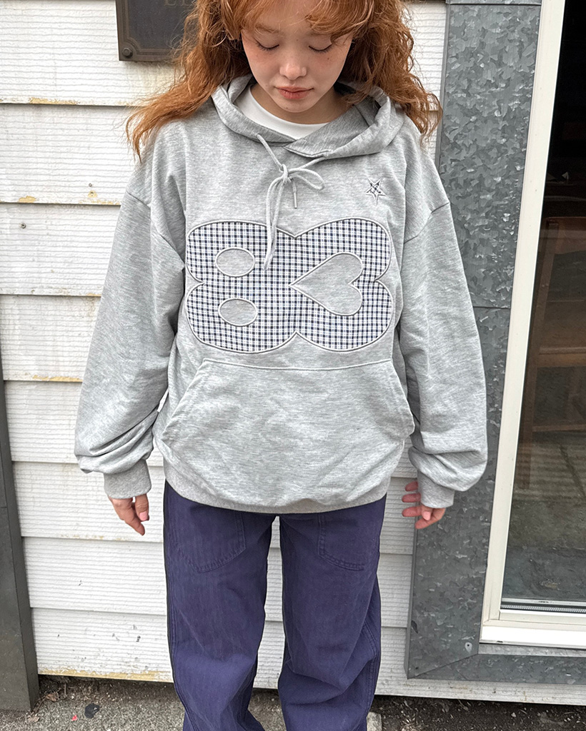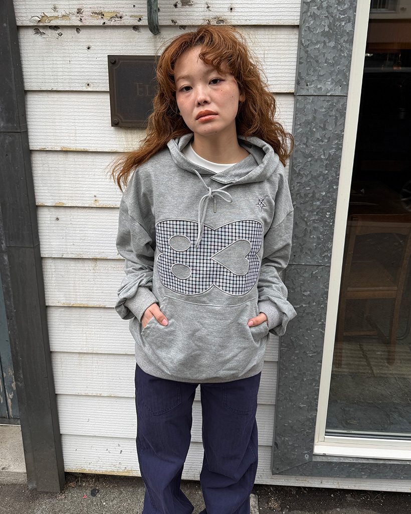 83チェックレタリングパーカー