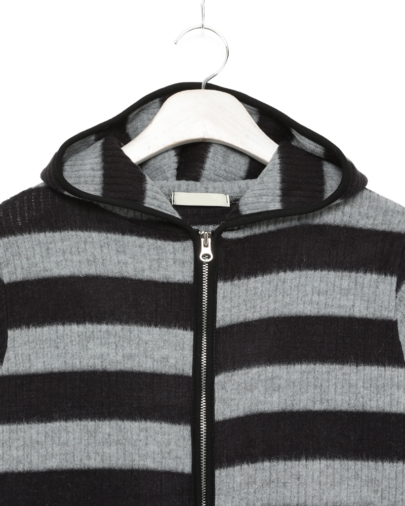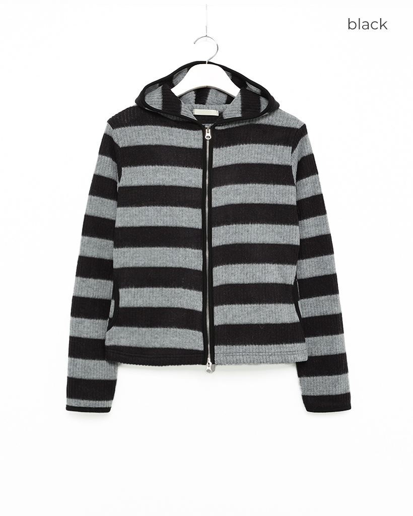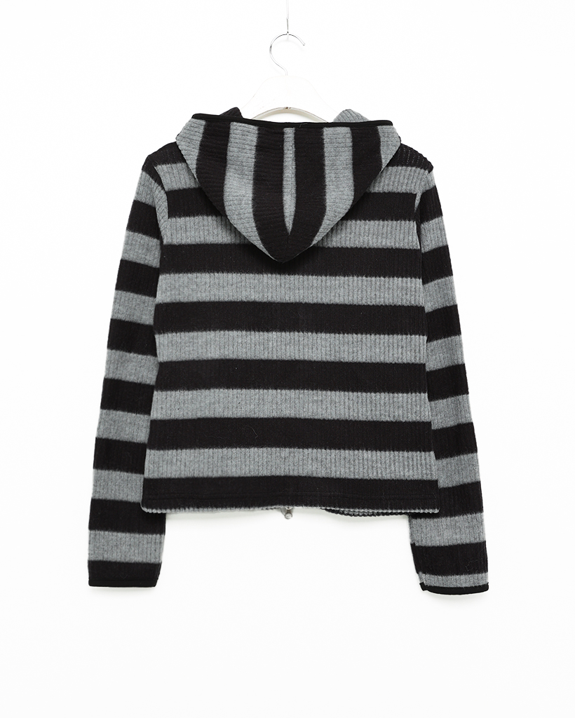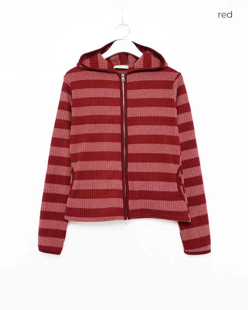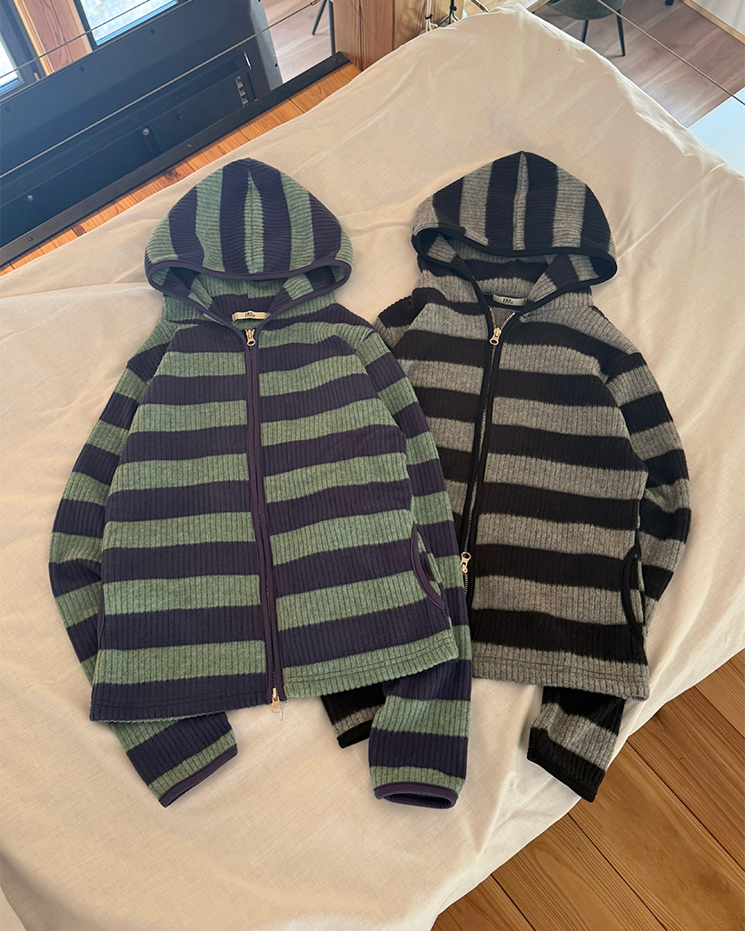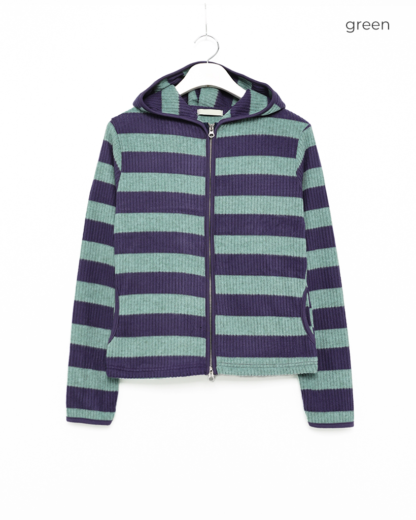 リブボーダーフードジップパーカー