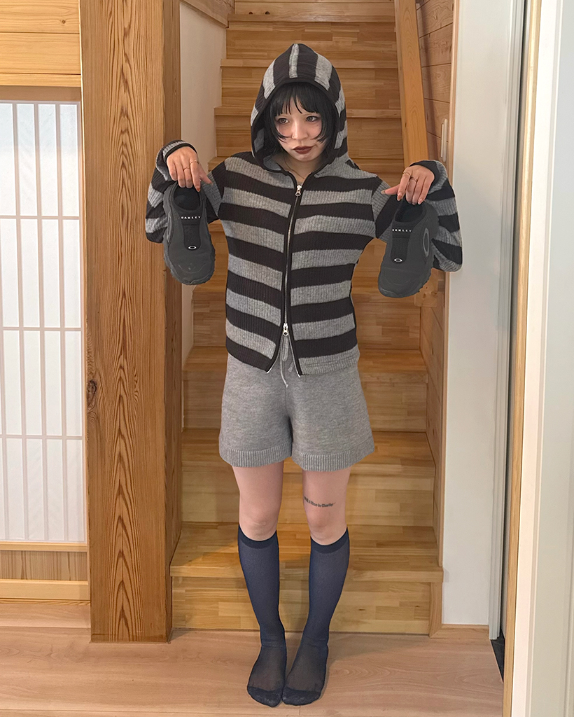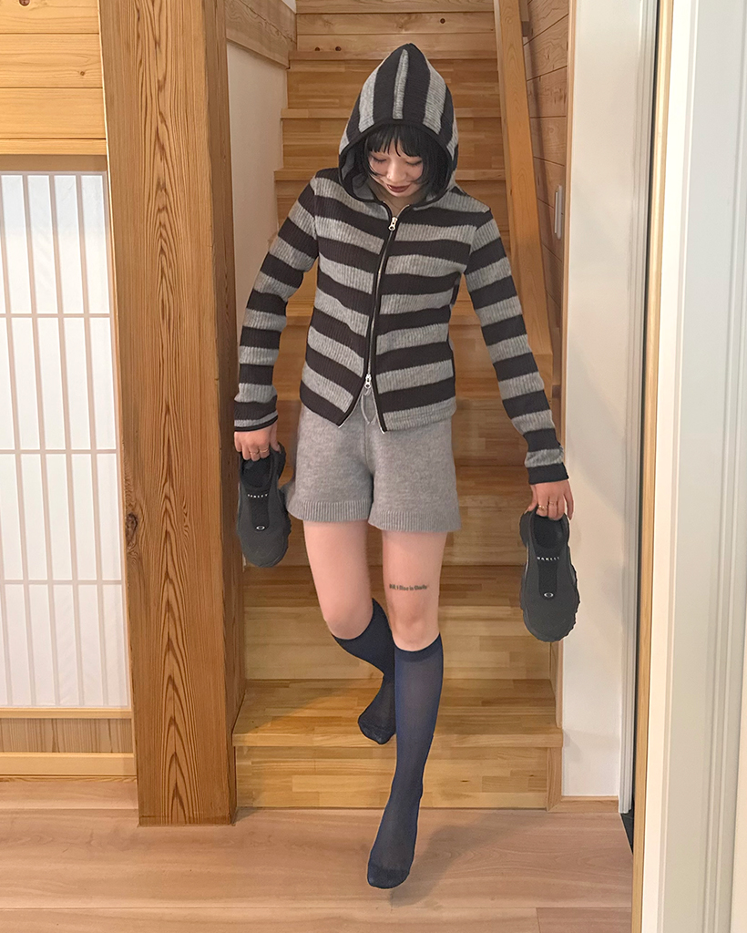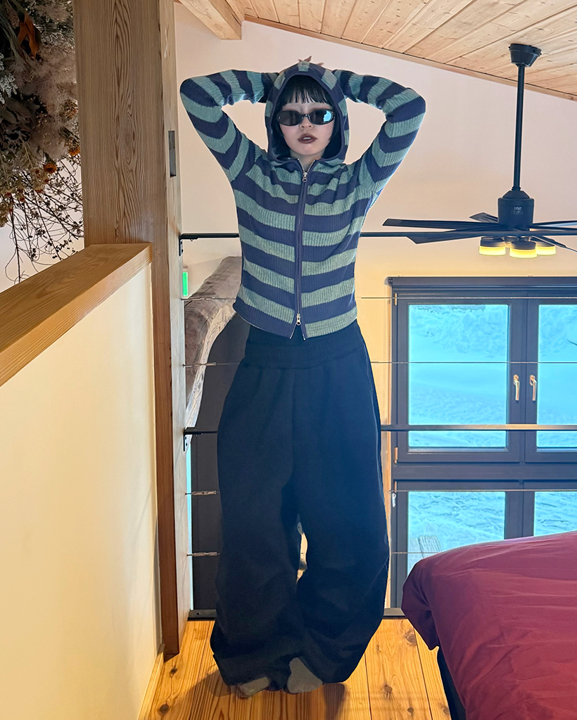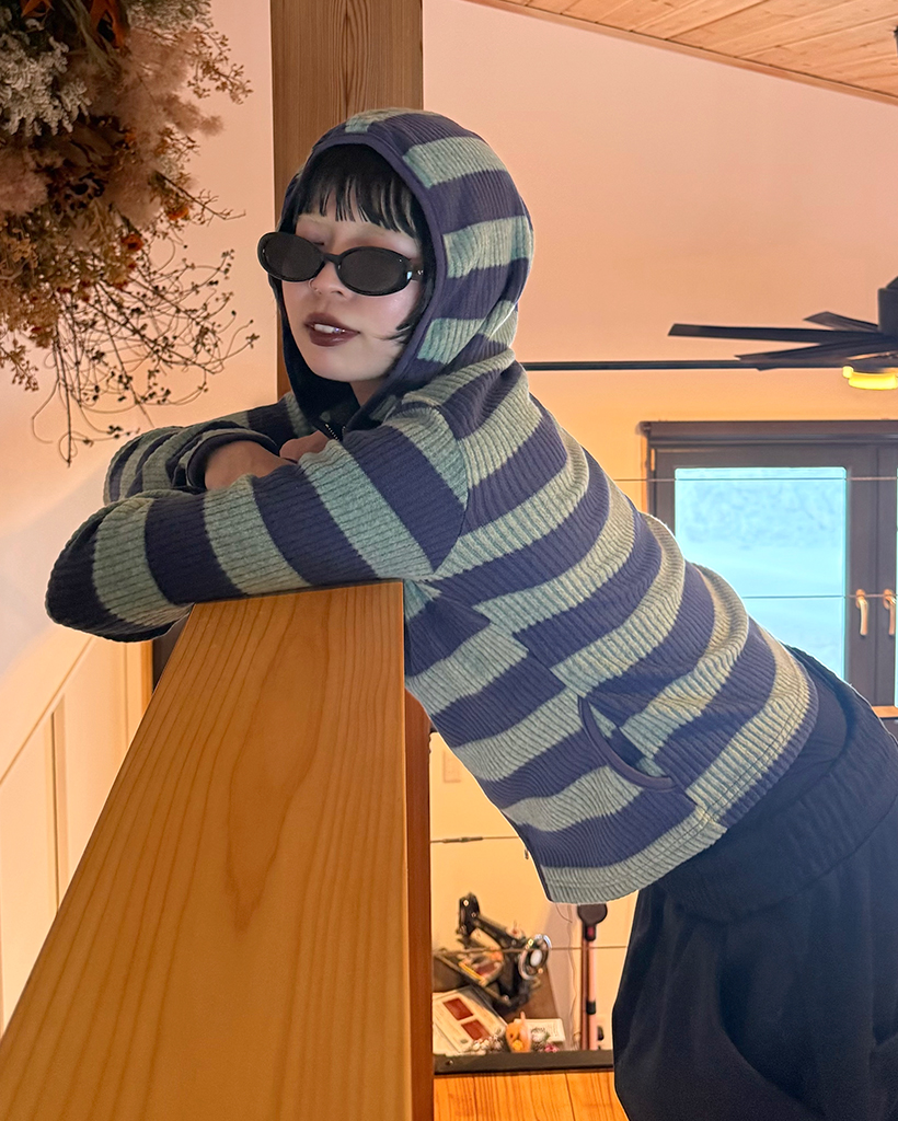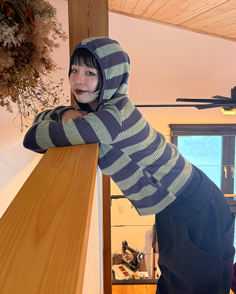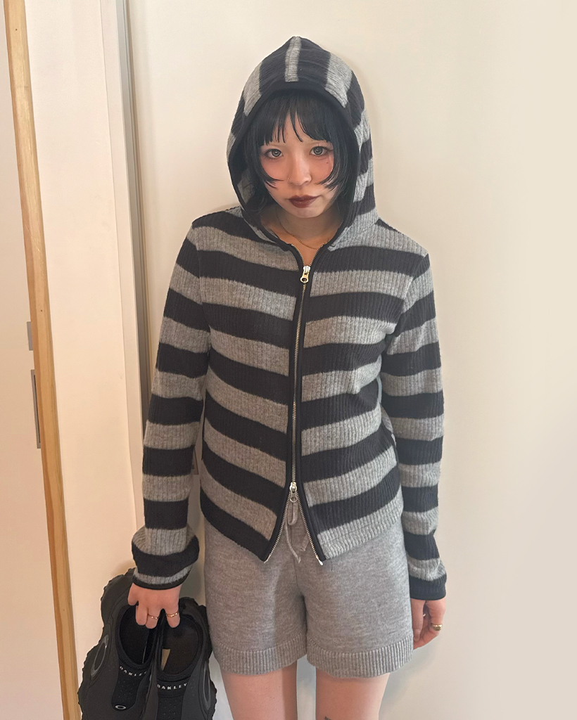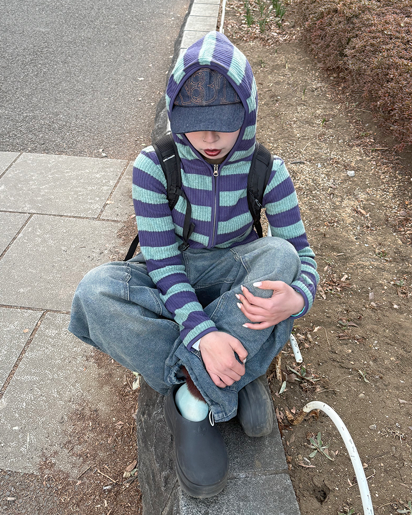 リブボーダーフードジップパーカー