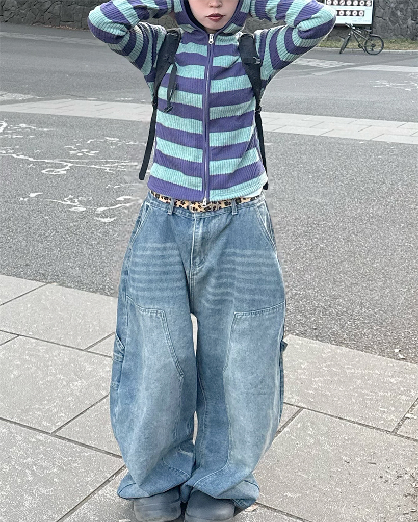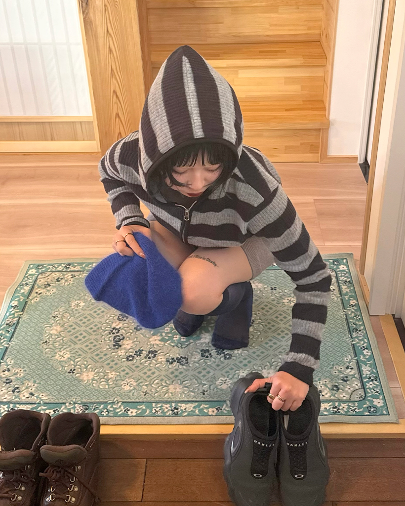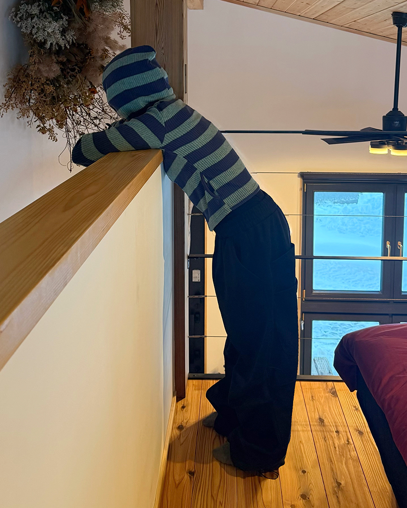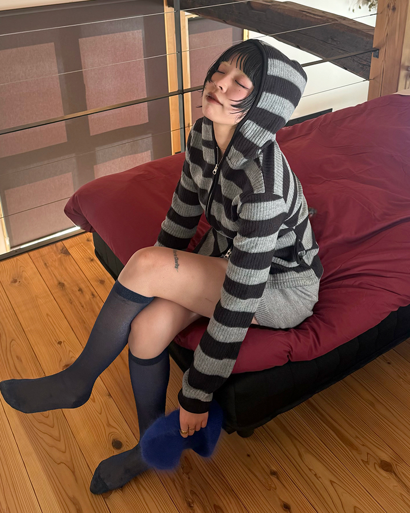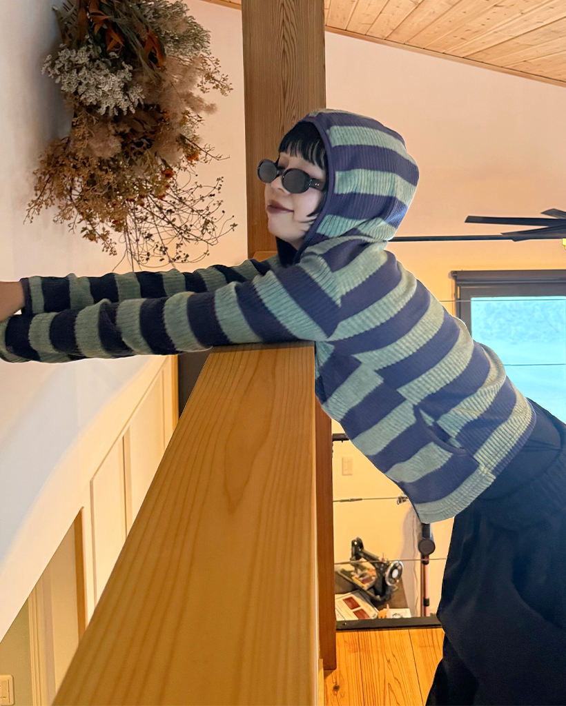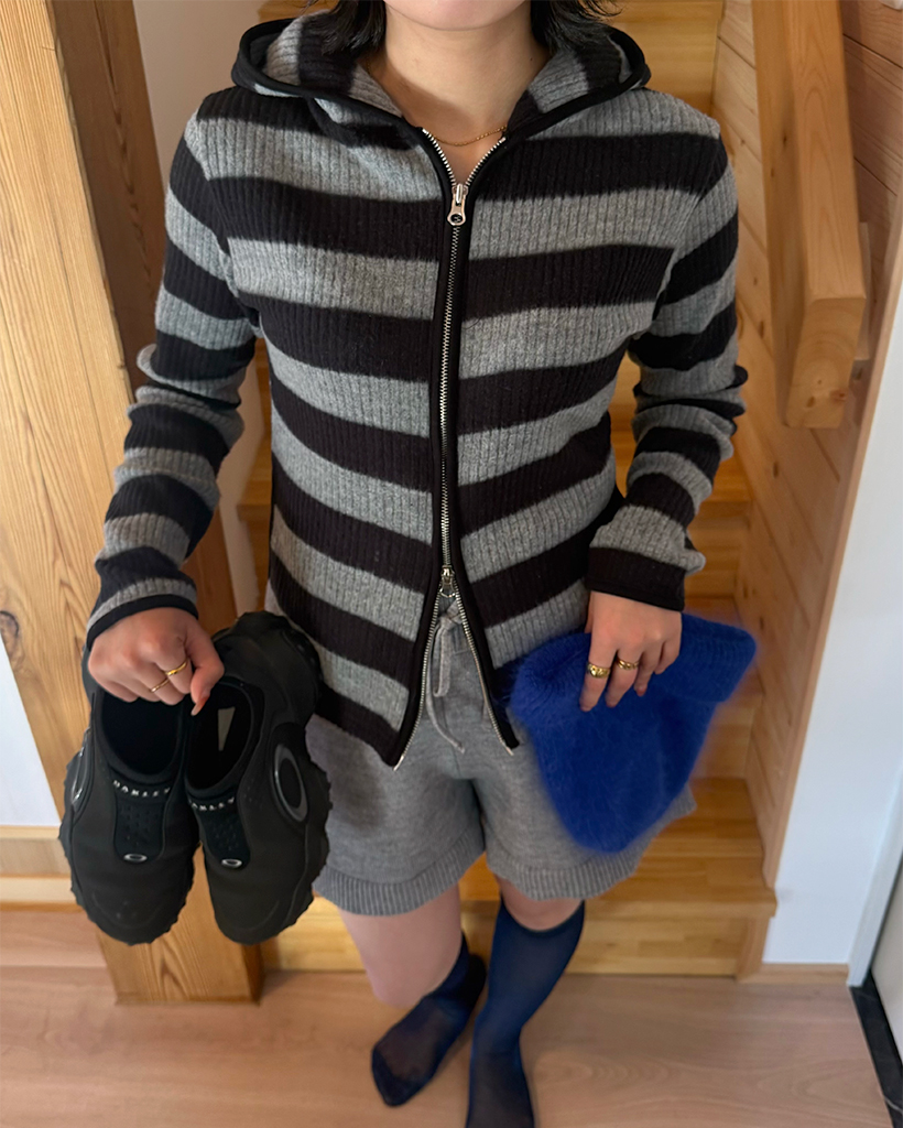 リブボーダーフードジップパーカー