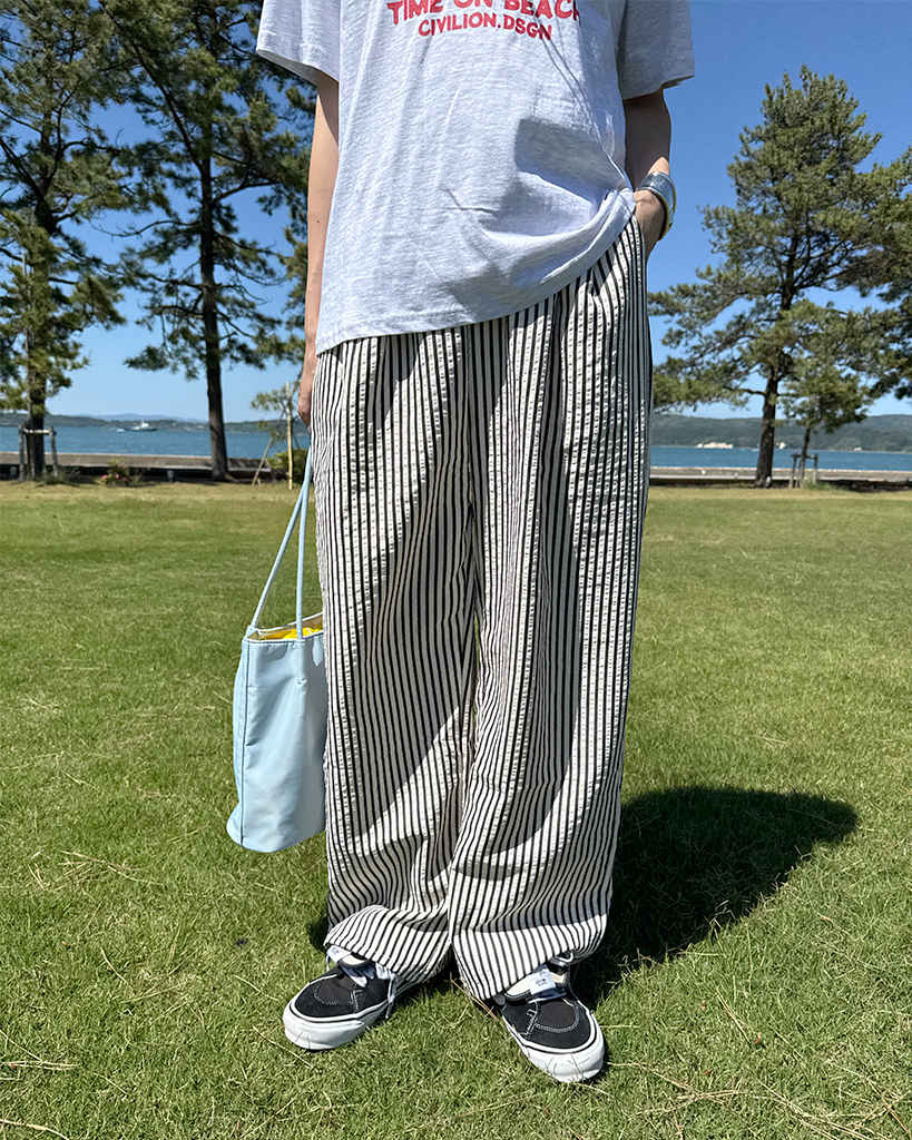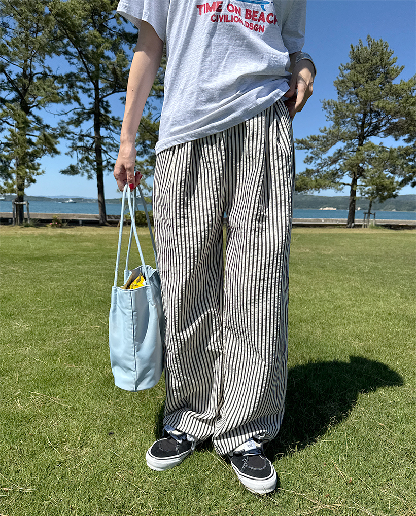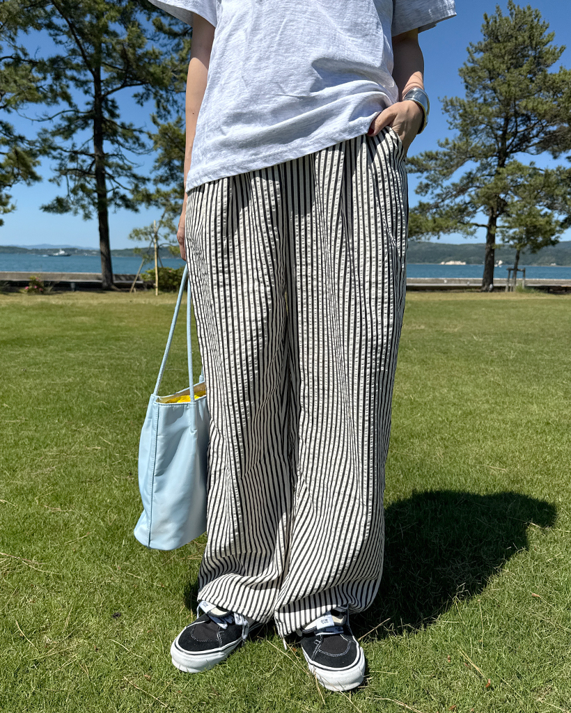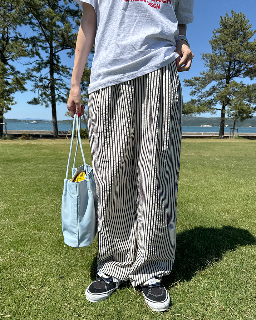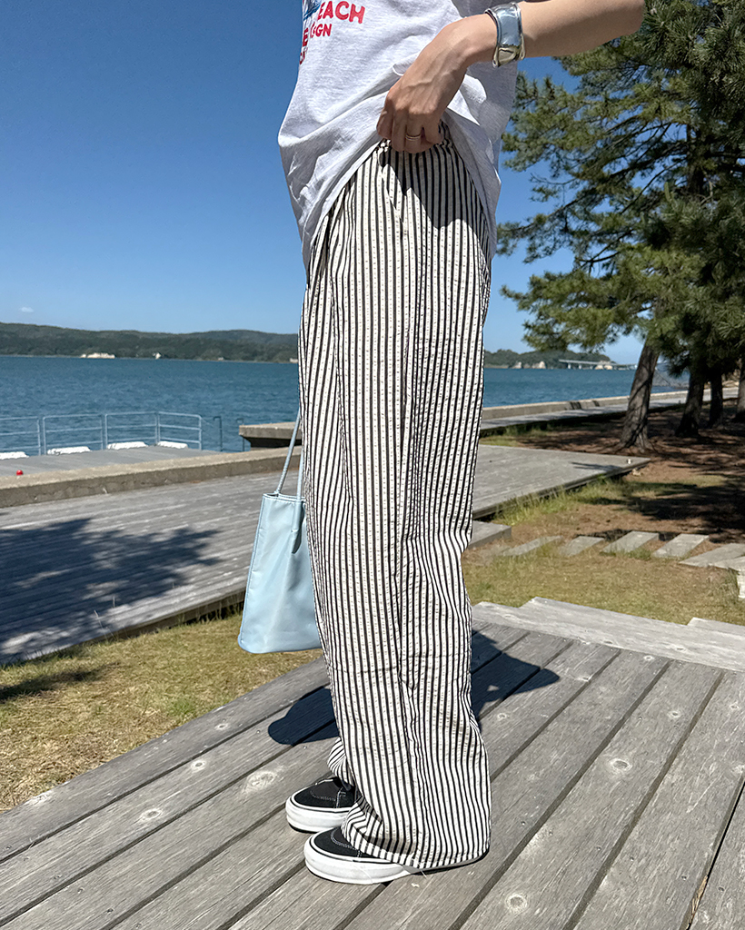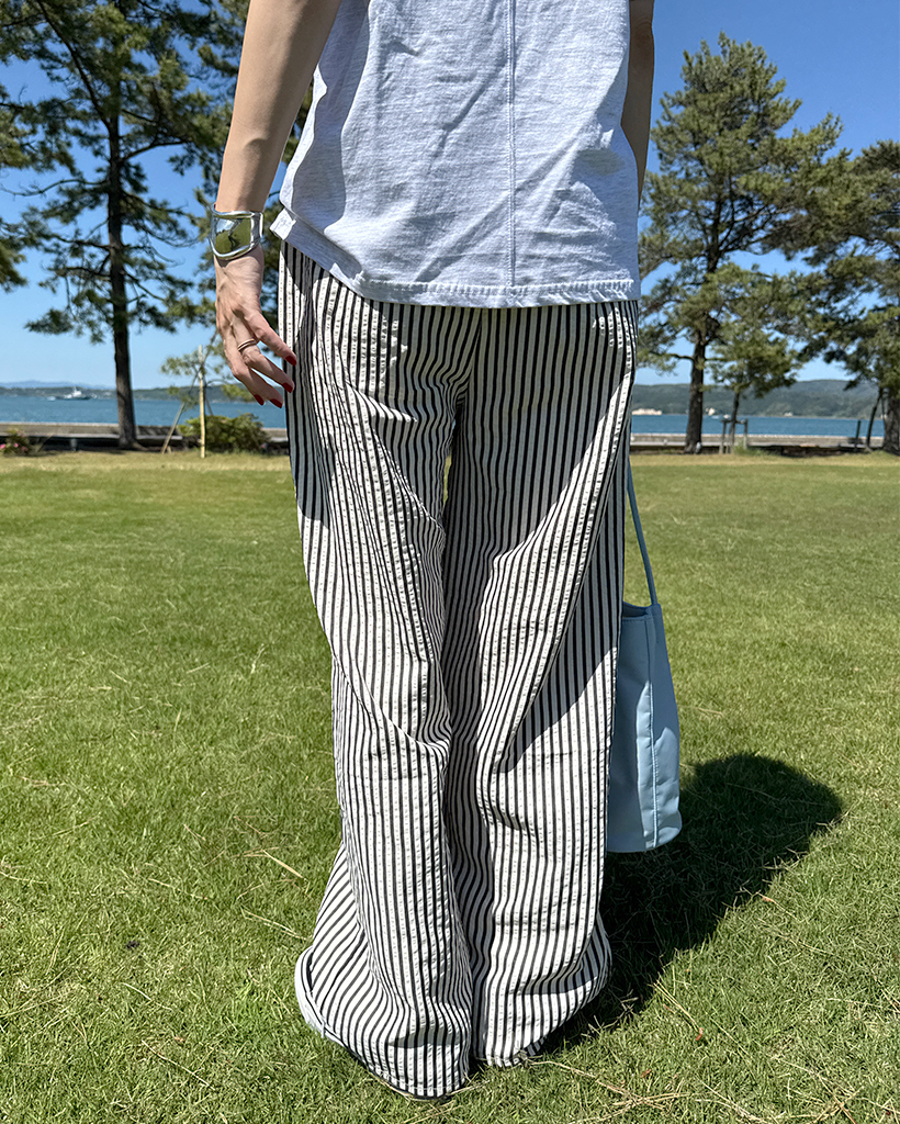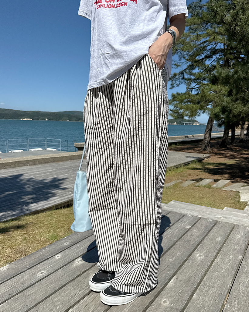 シンプルストライプバンディングパンツ