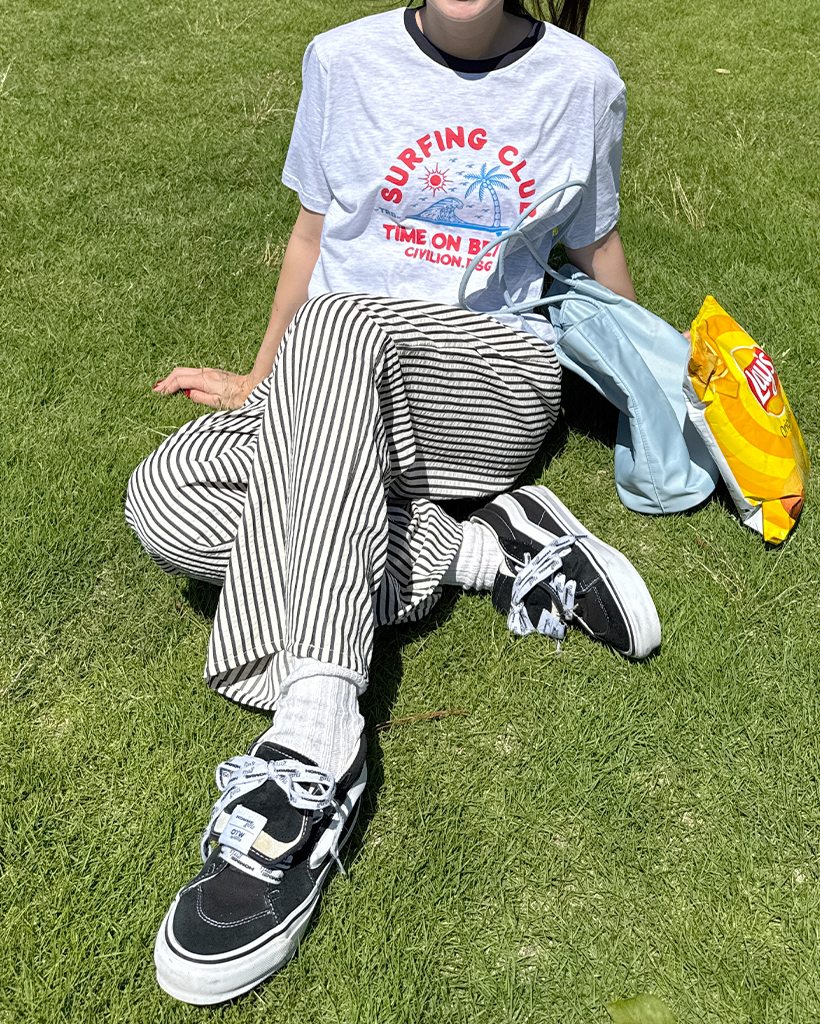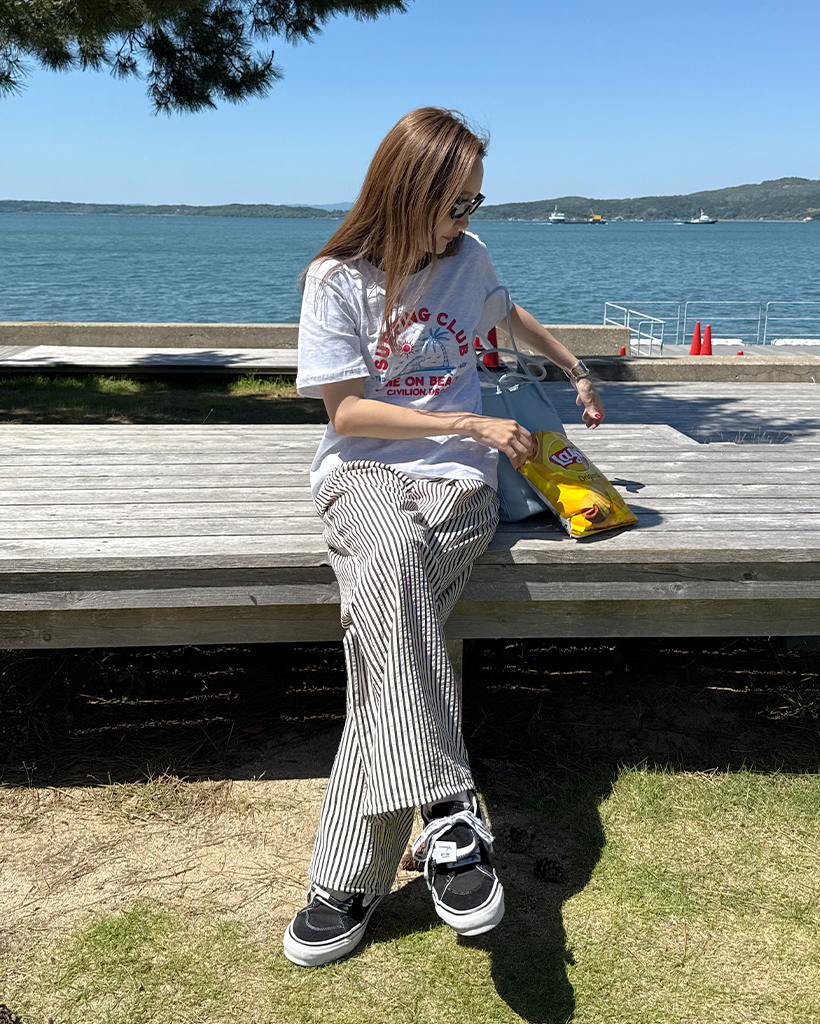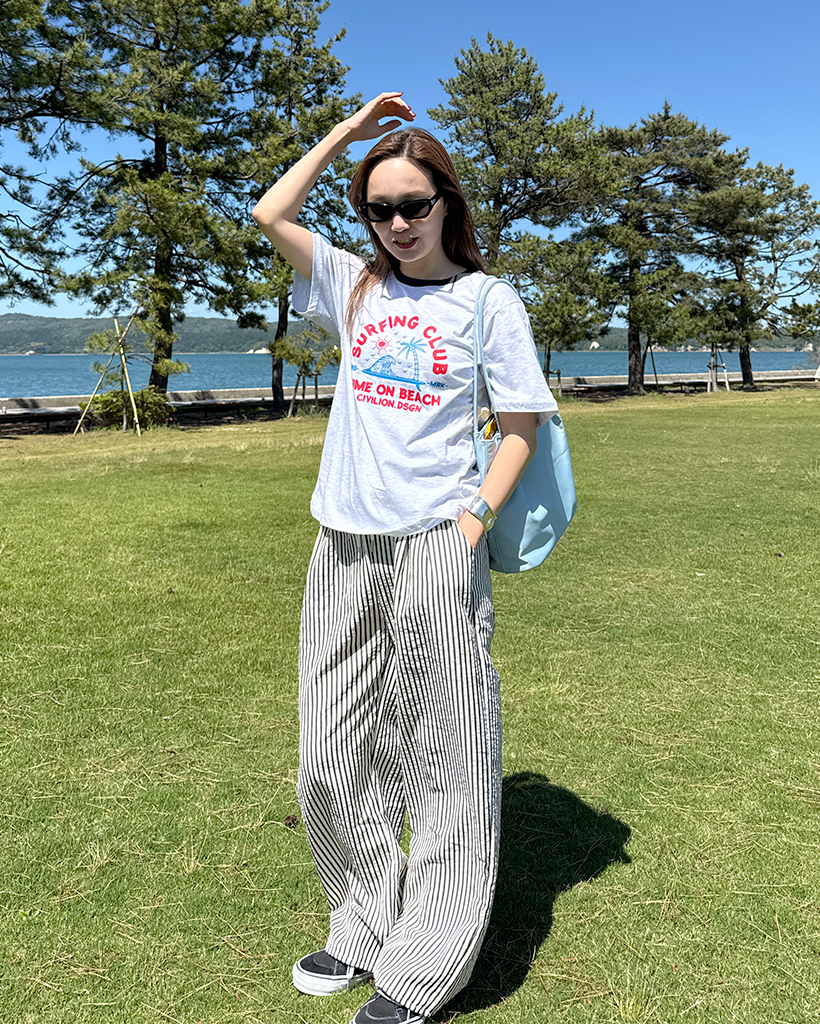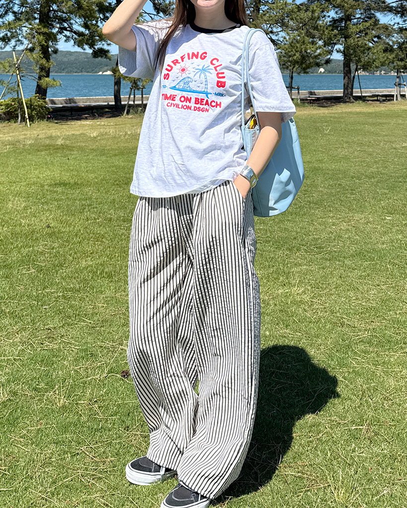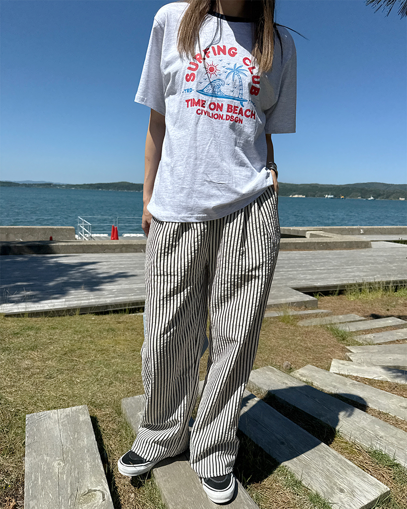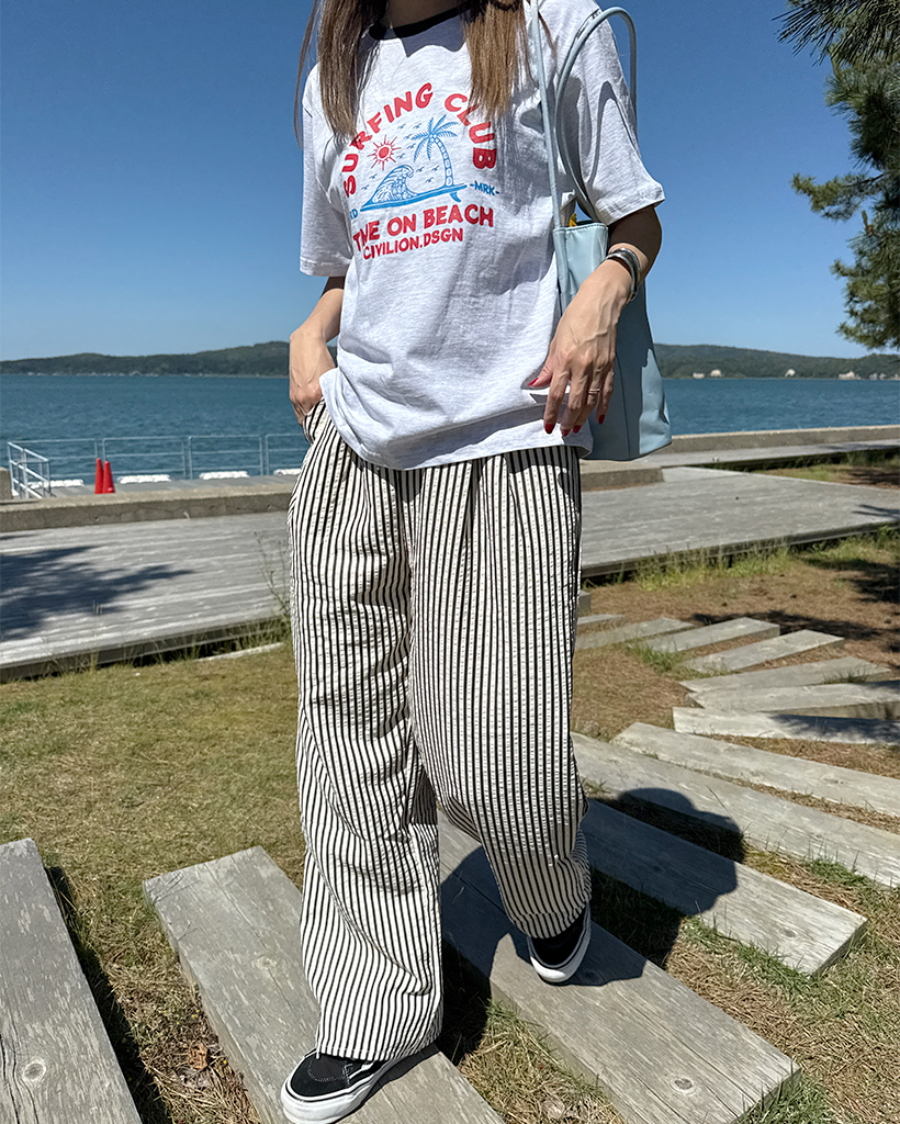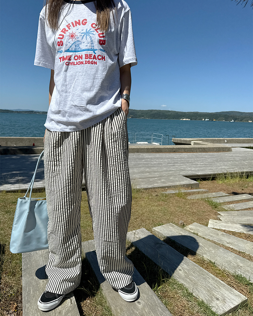 シンプルストライプバンディングパンツ