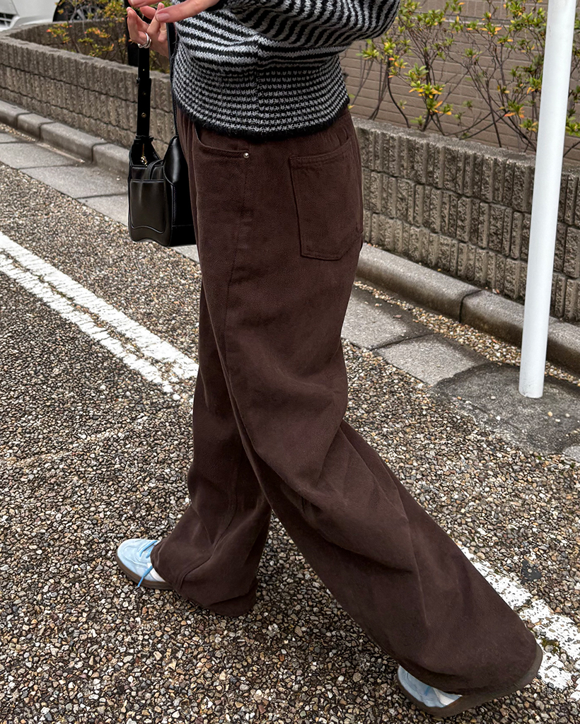 裏起毛ピーチスキンコットンワイドパンツ