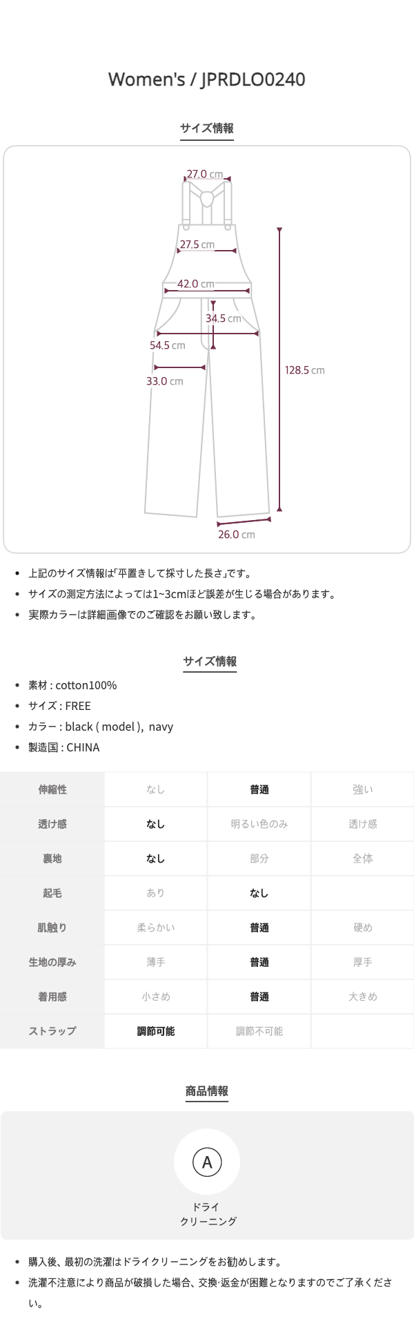 コットンオーバーオールパンツ