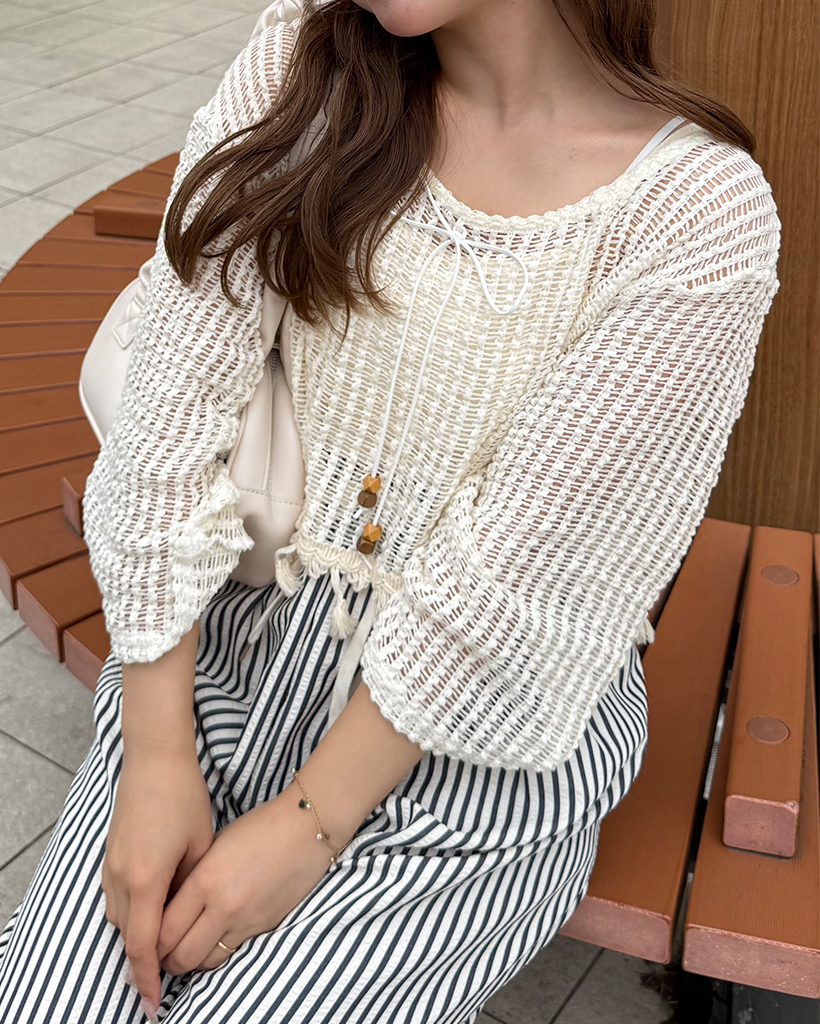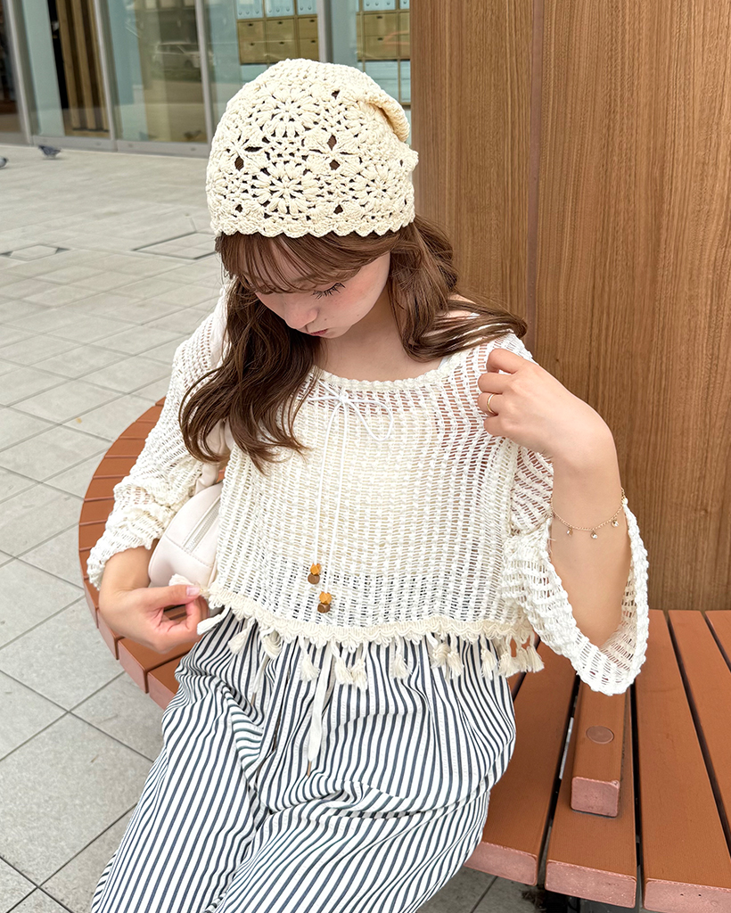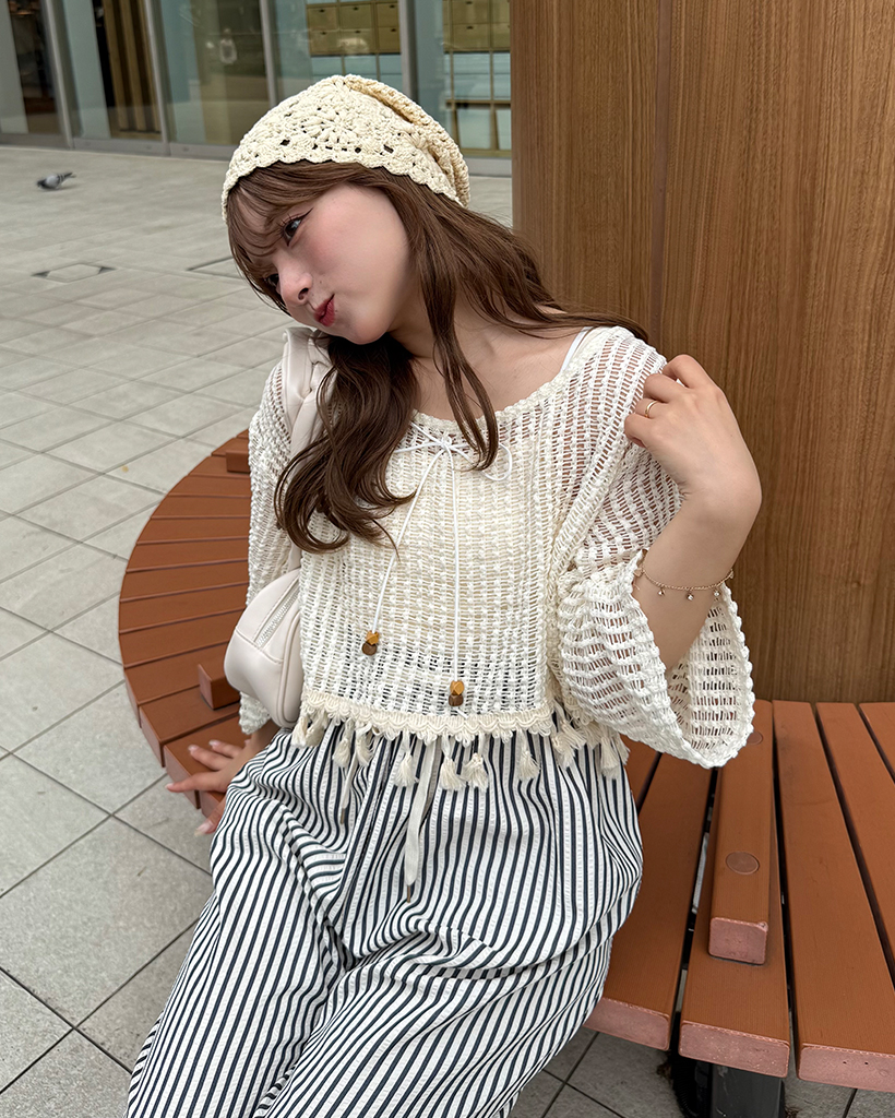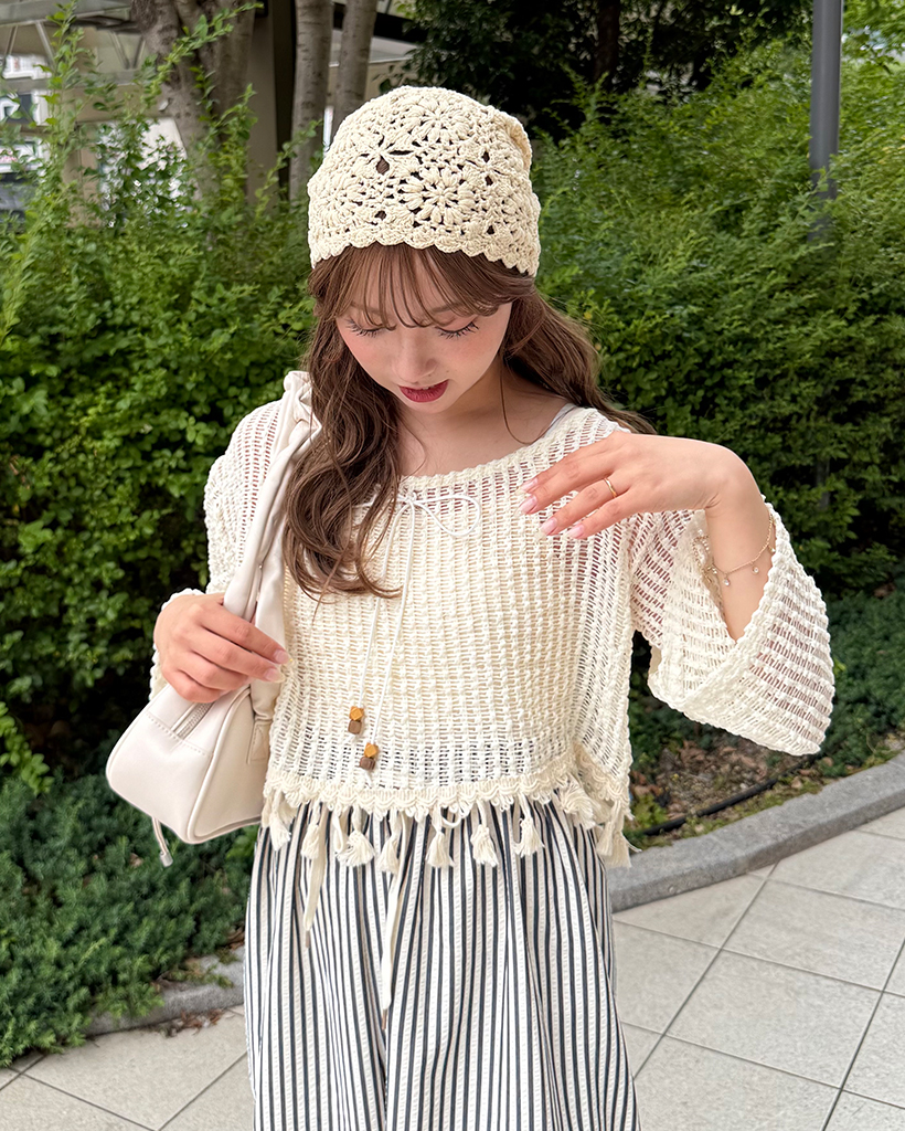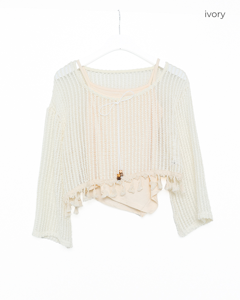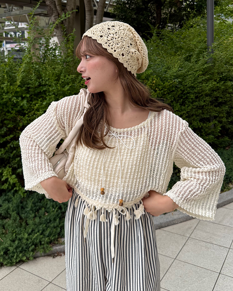 ユニークキャミ&アクセセットクロップドメッシュサマーニット
