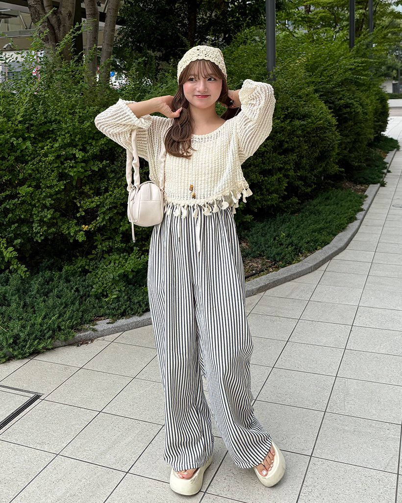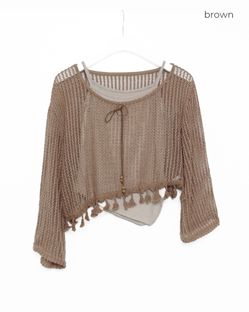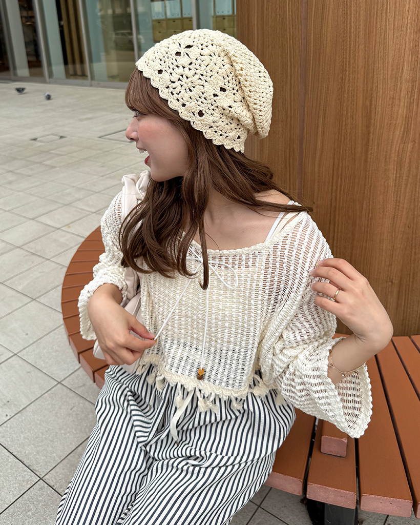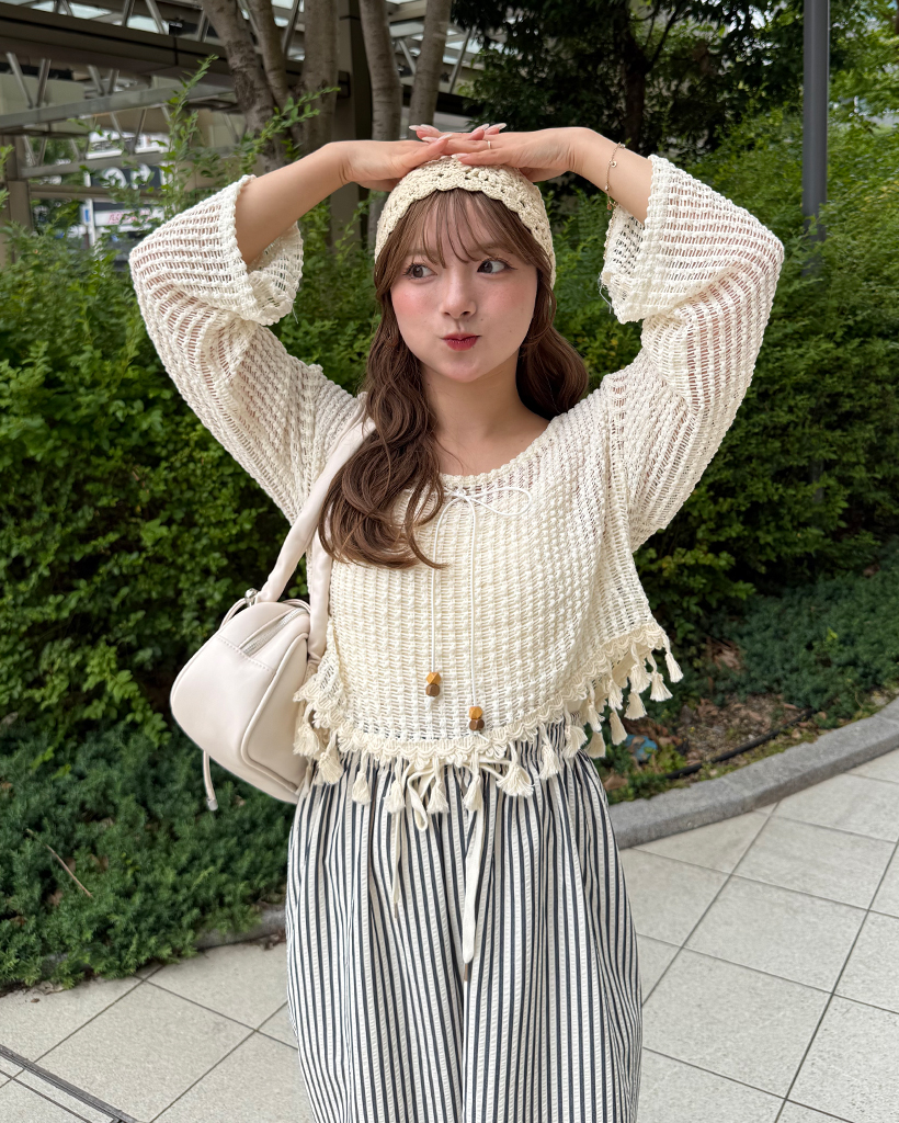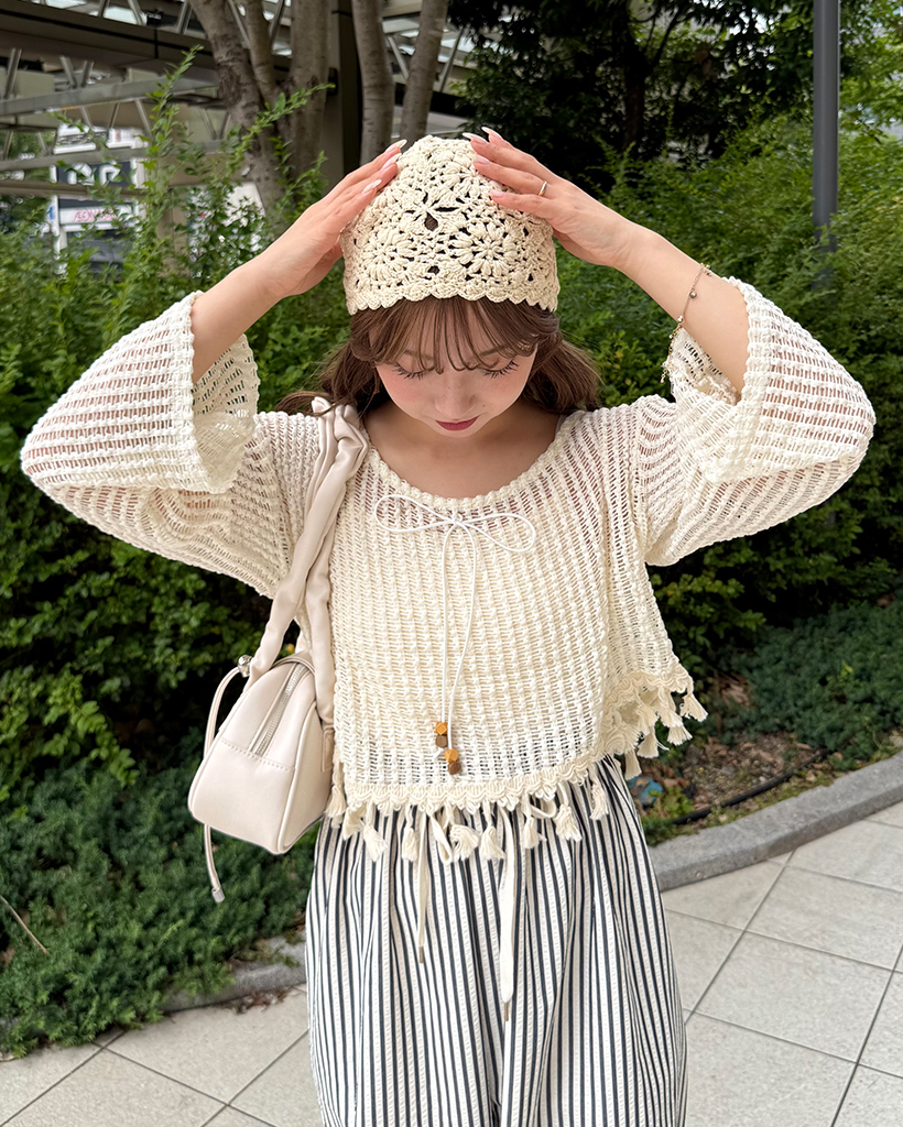 ユニークキャミ&アクセセットクロップドメッシュサマーニット