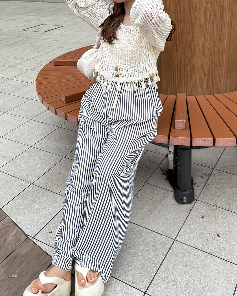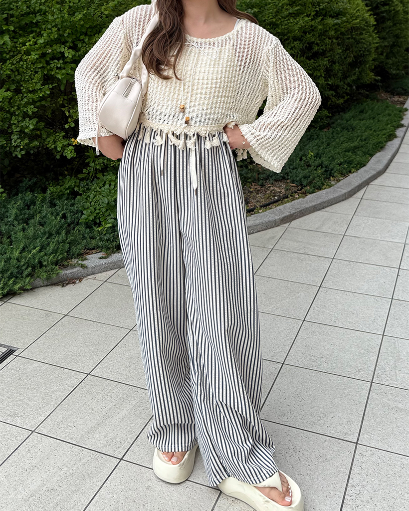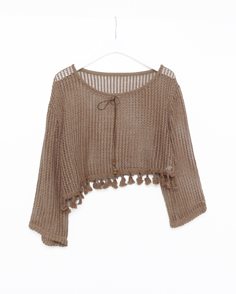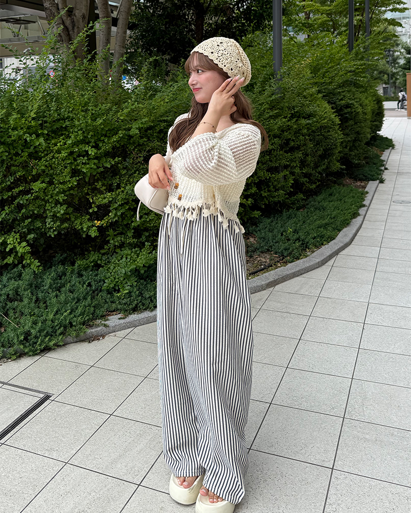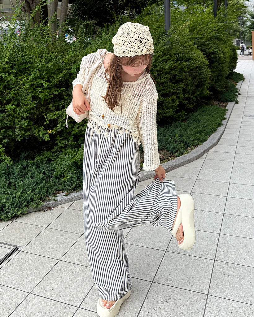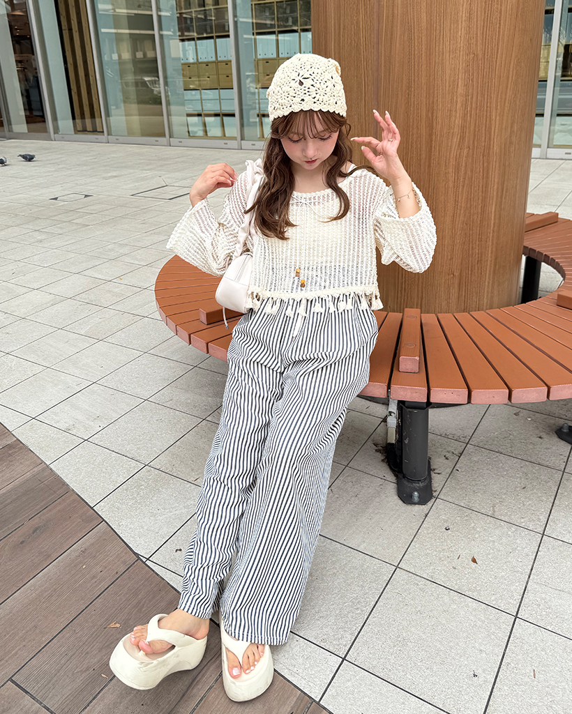 ユニークキャミ&アクセセットクロップドメッシュサマーニット