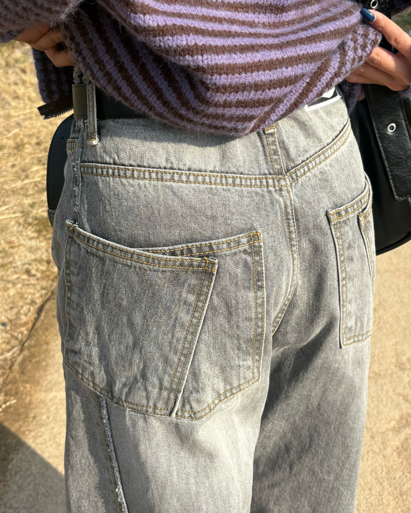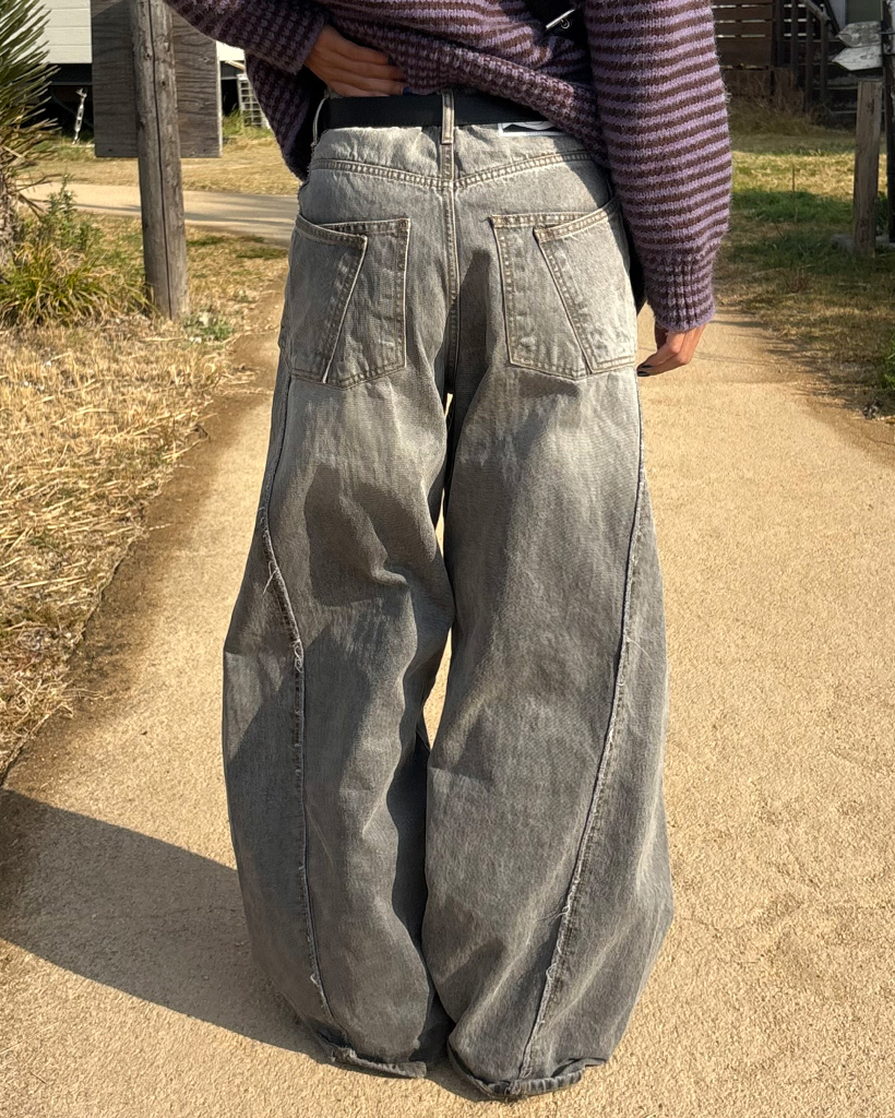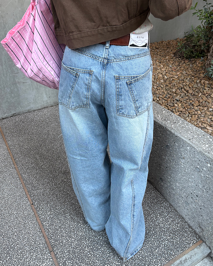バックユニークセンターシームダブルポケットジーンズ