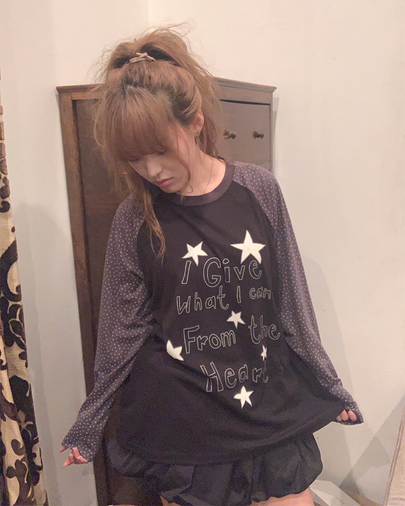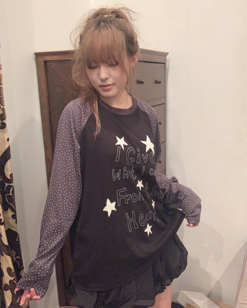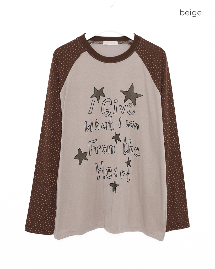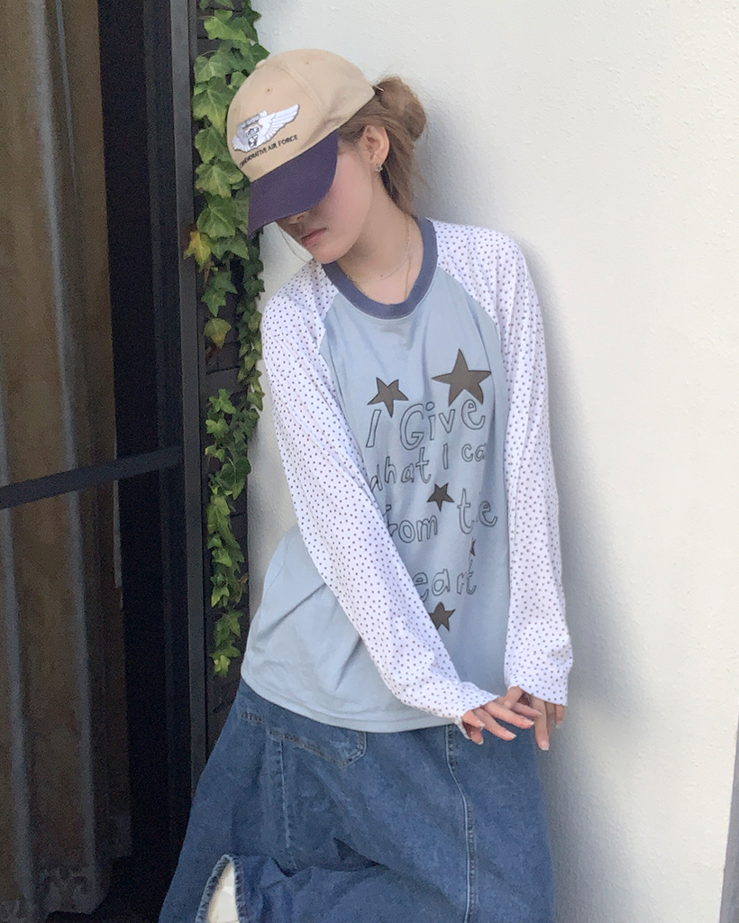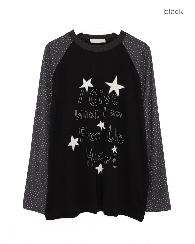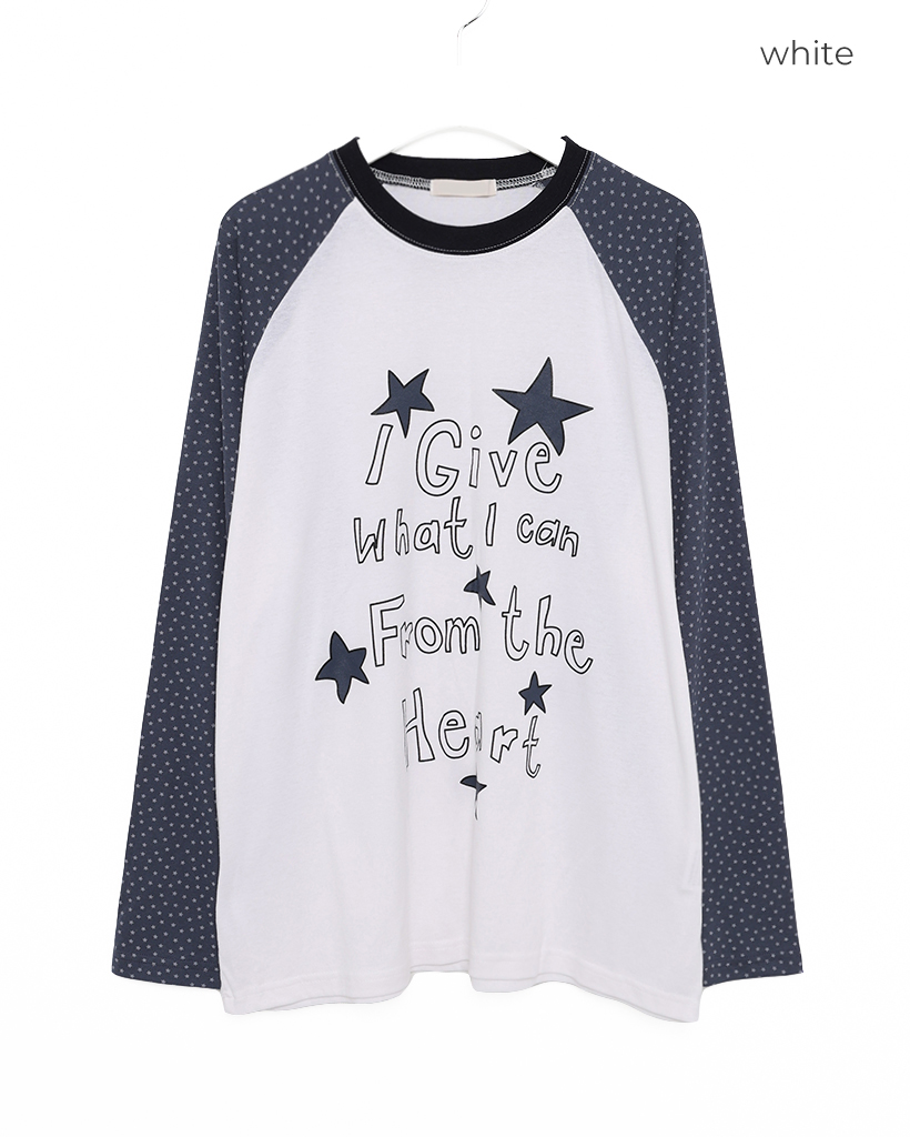 (ユニセックス)スターグラフィックレタリングラグラン長袖Tシャツ