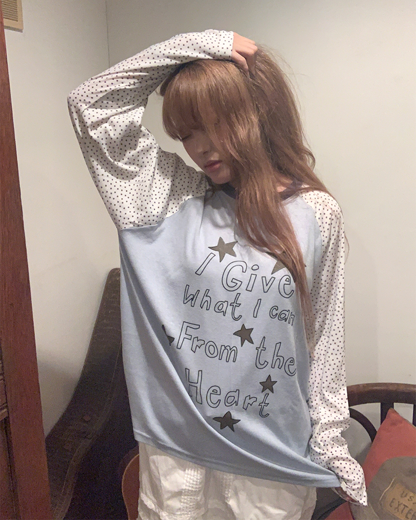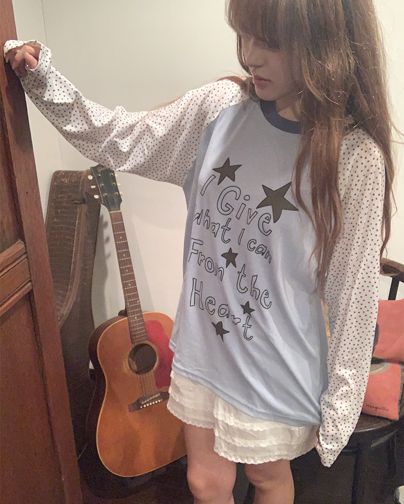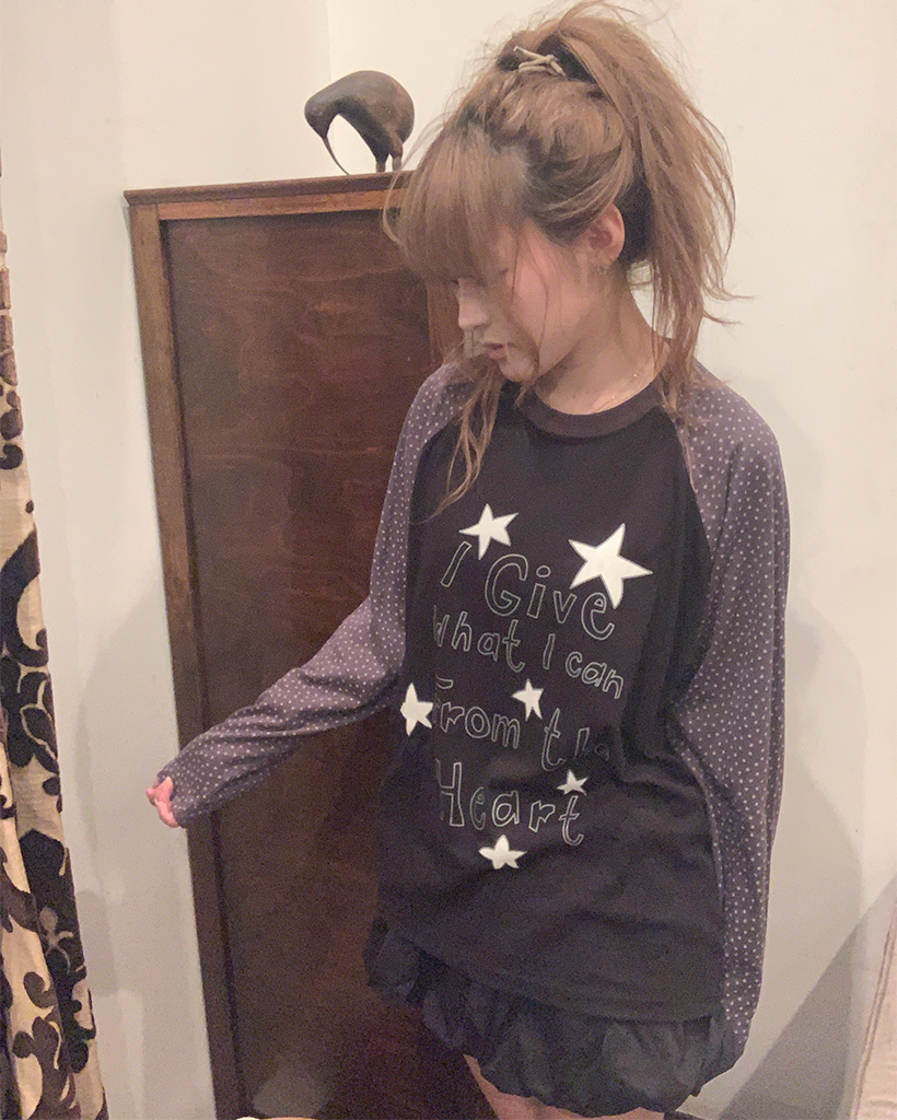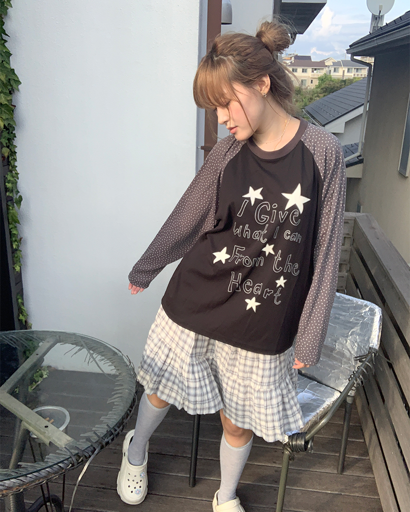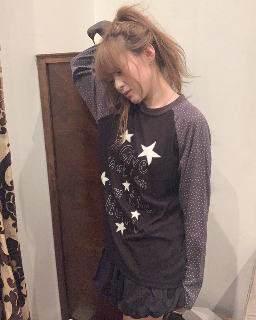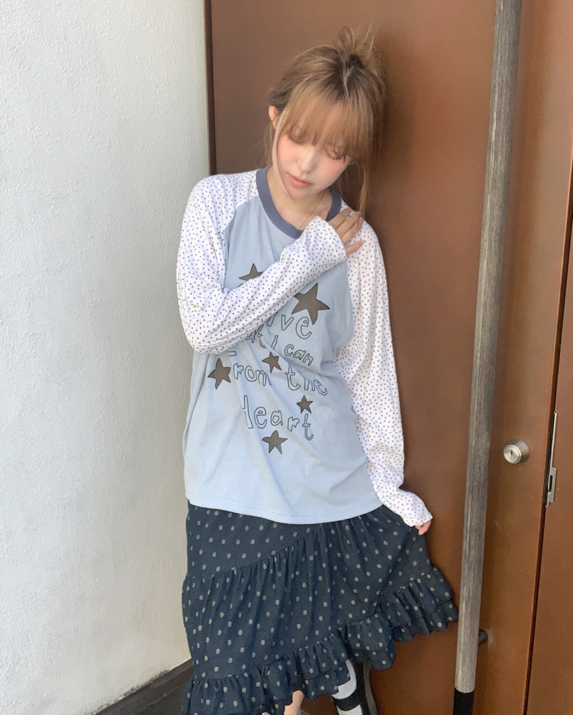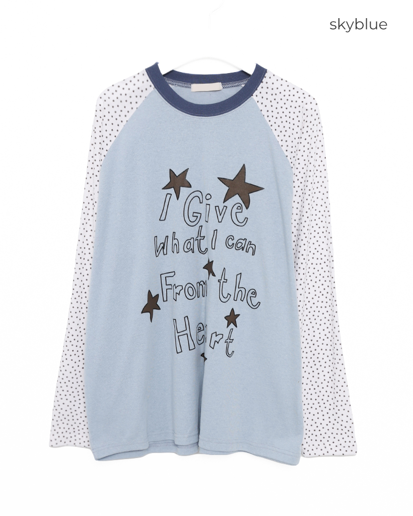 (ユニセックス)スターグラフィックレタリングラグラン長袖Tシャツ