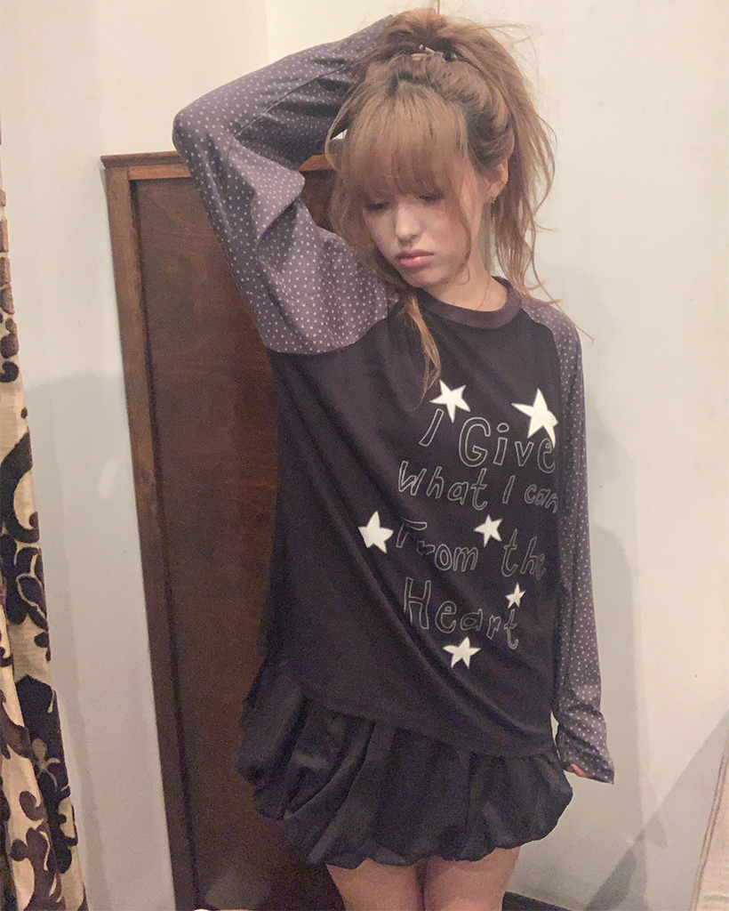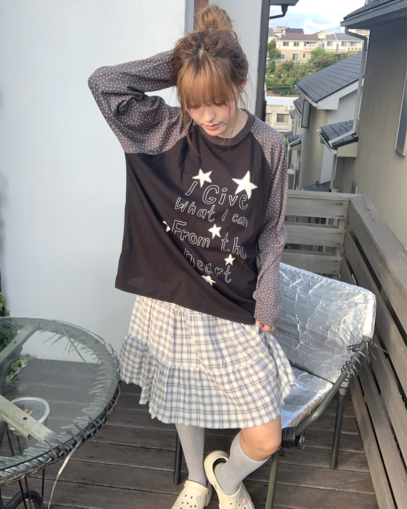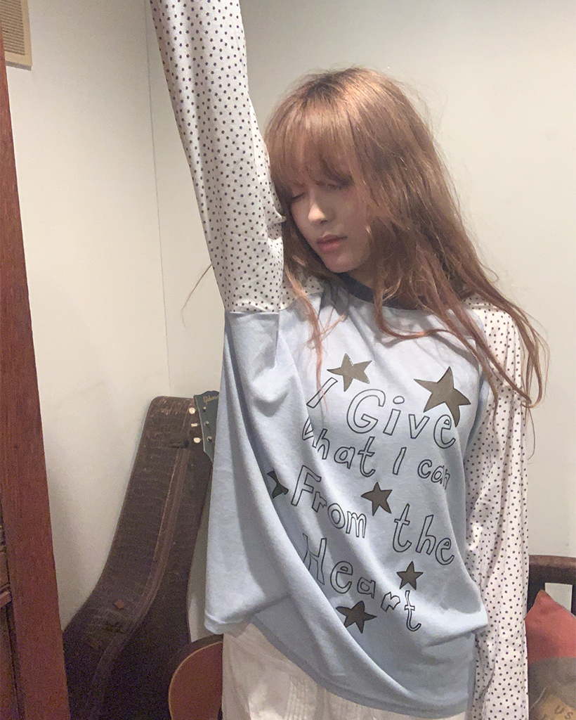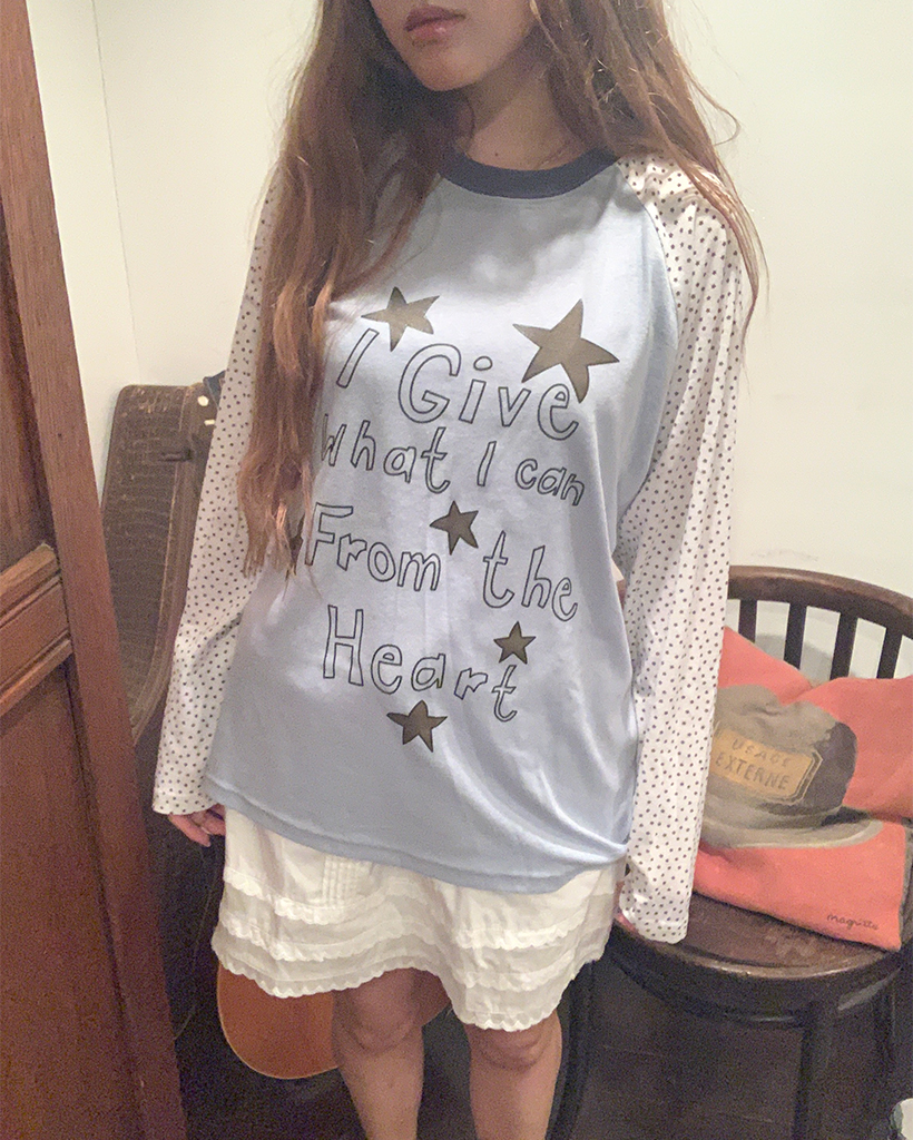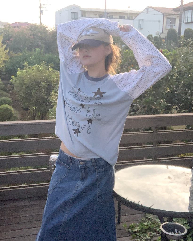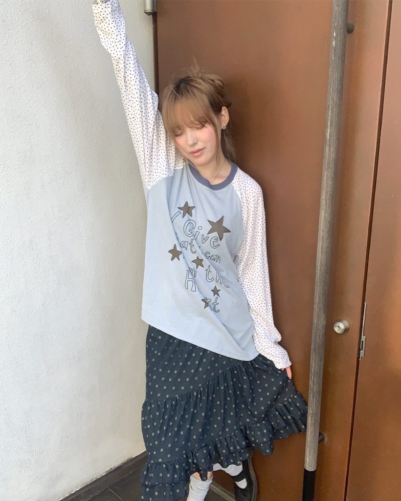 (ユニセックス)スターグラフィックレタリングラグラン長袖Tシャツ