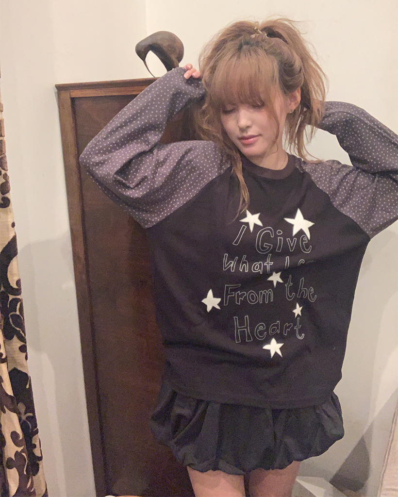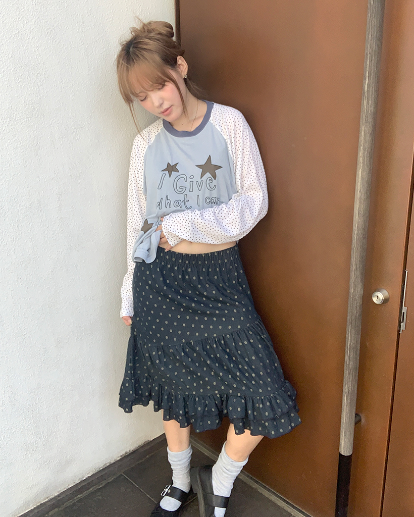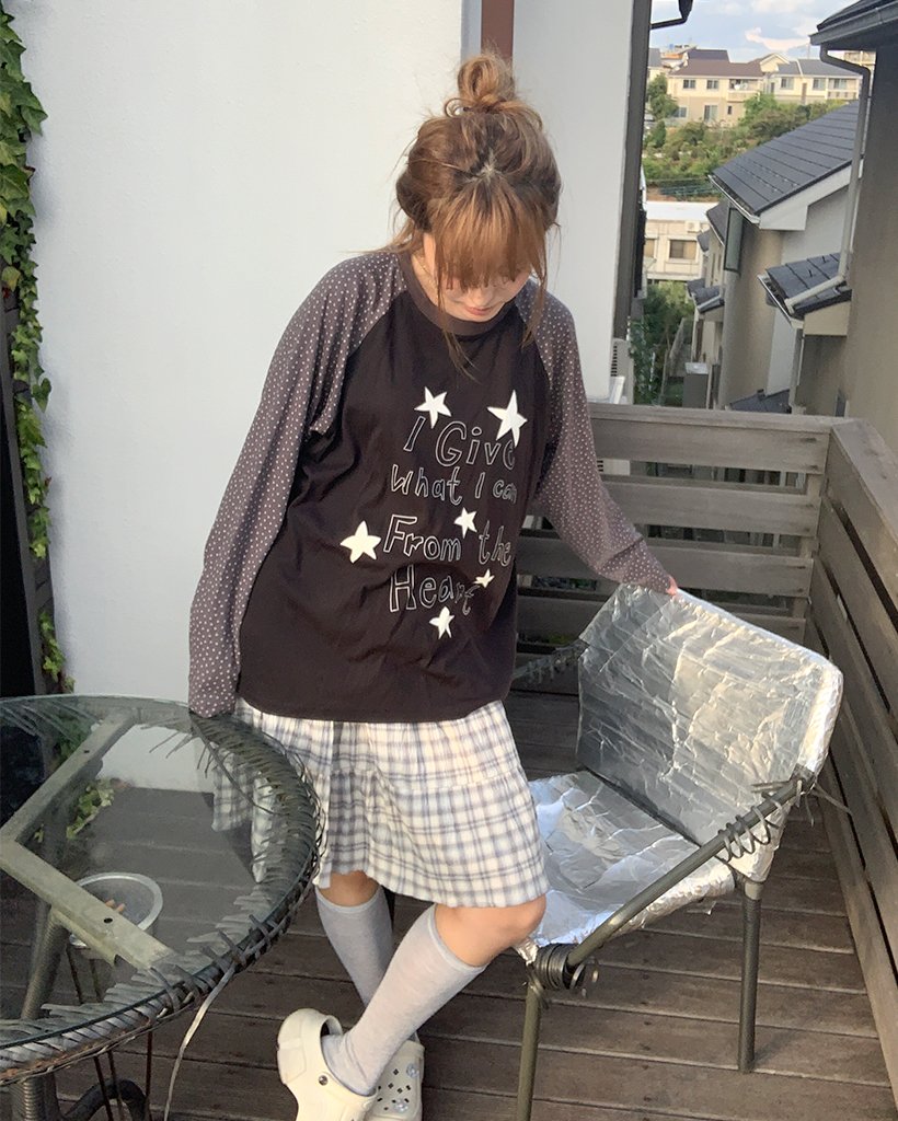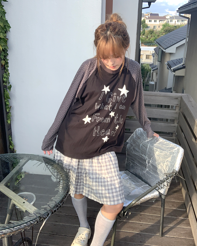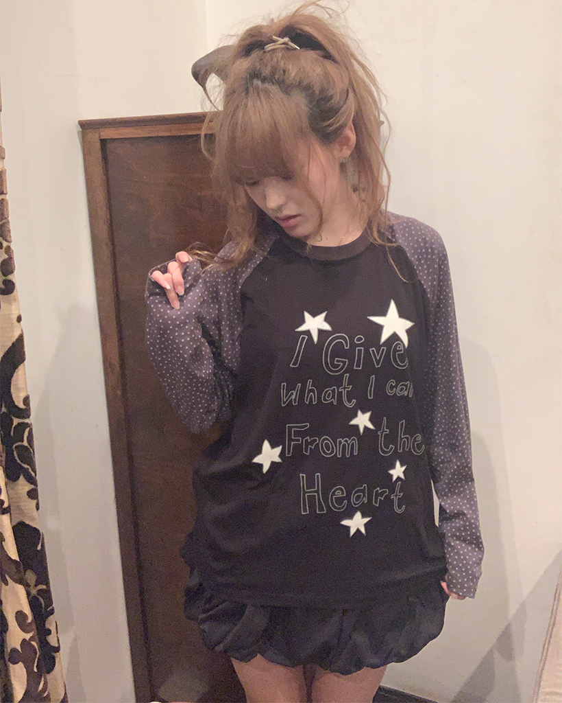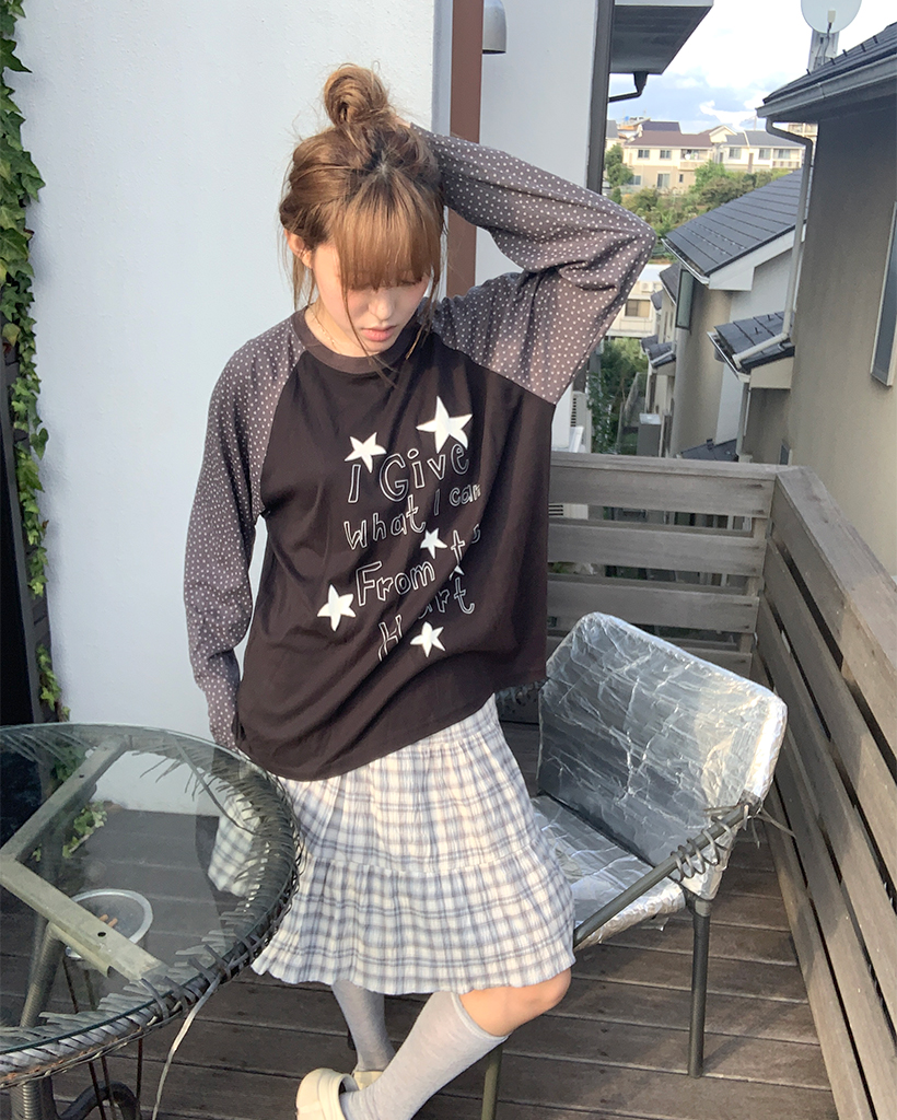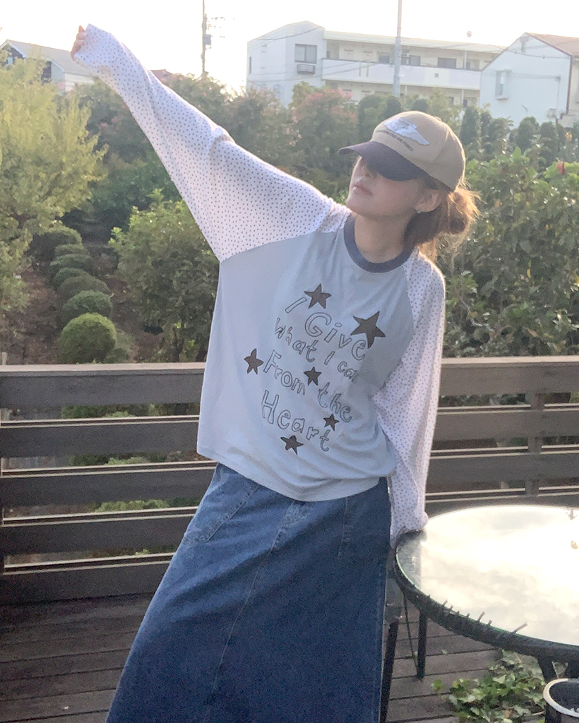(ユニセックス)スターグラフィックレタリングラグラン長袖Tシャツ