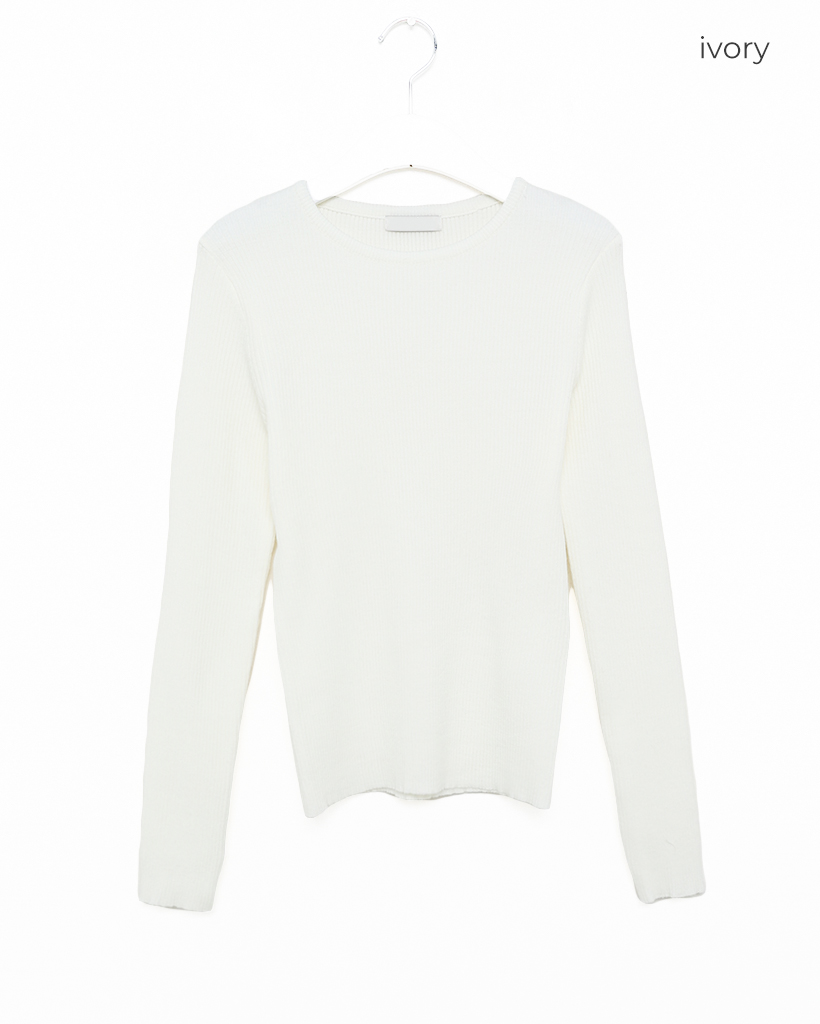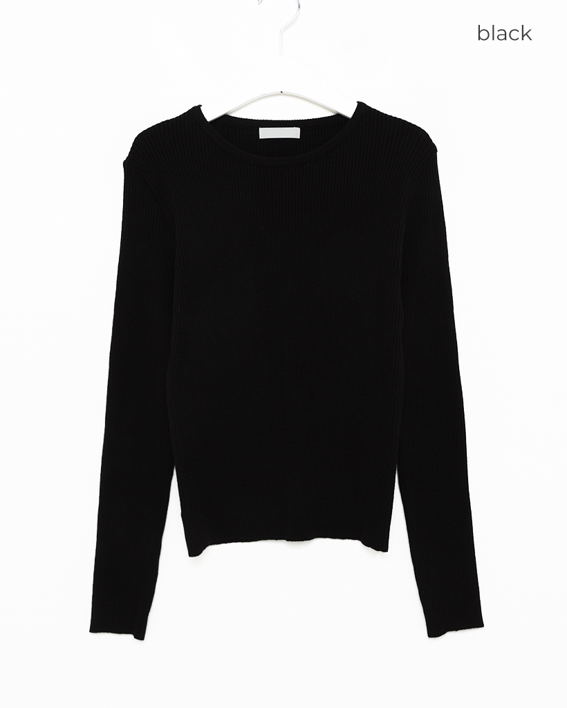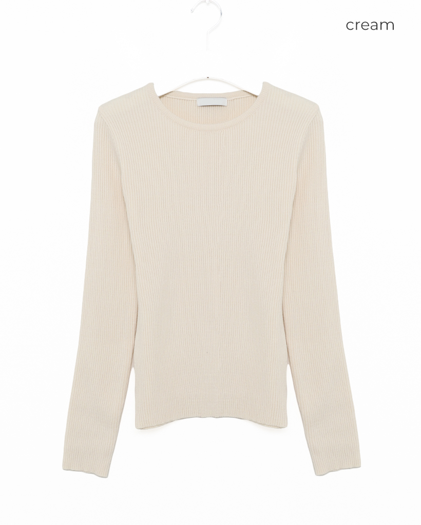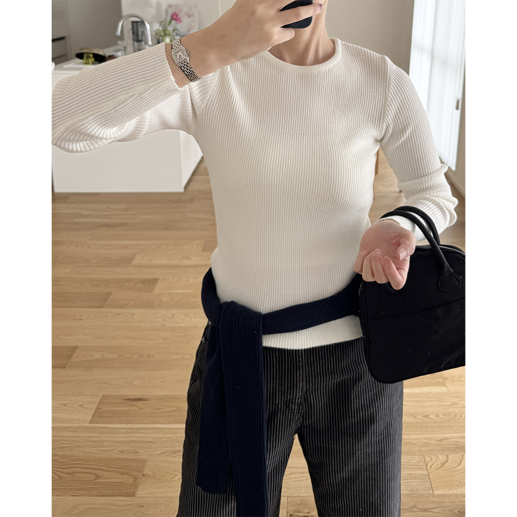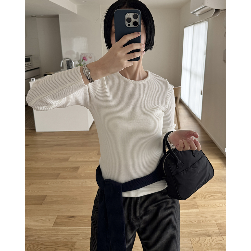 シンプルリブラウンドニット
