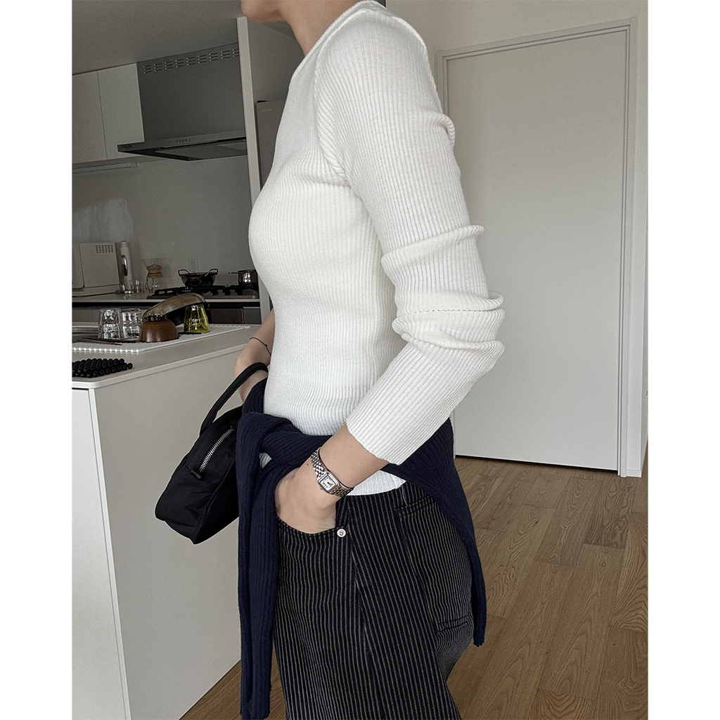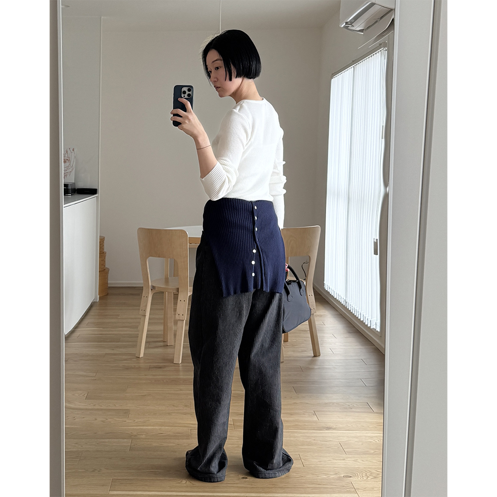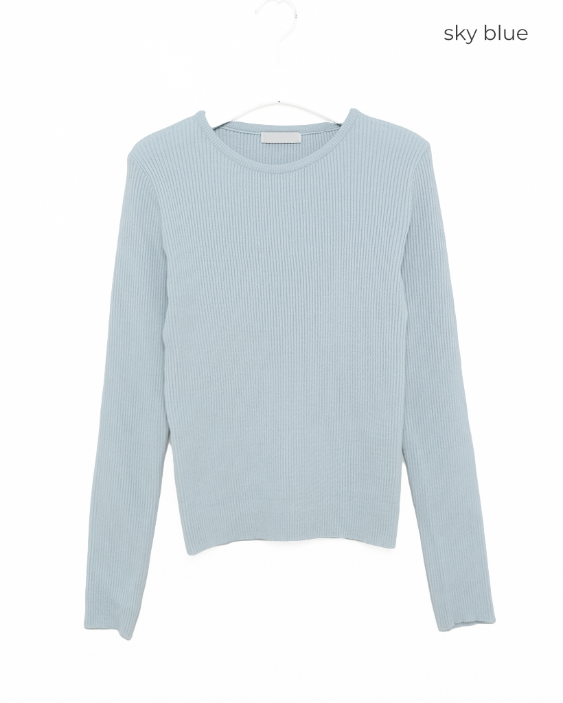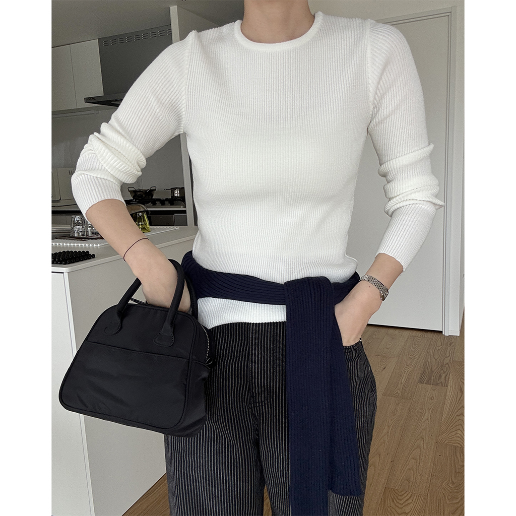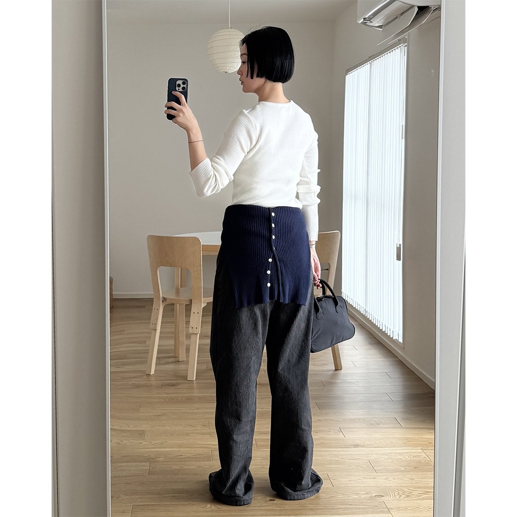 シンプルリブラウンドニット