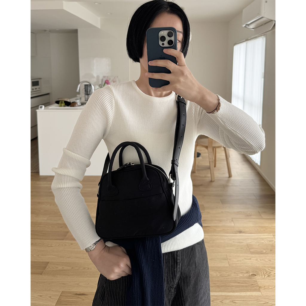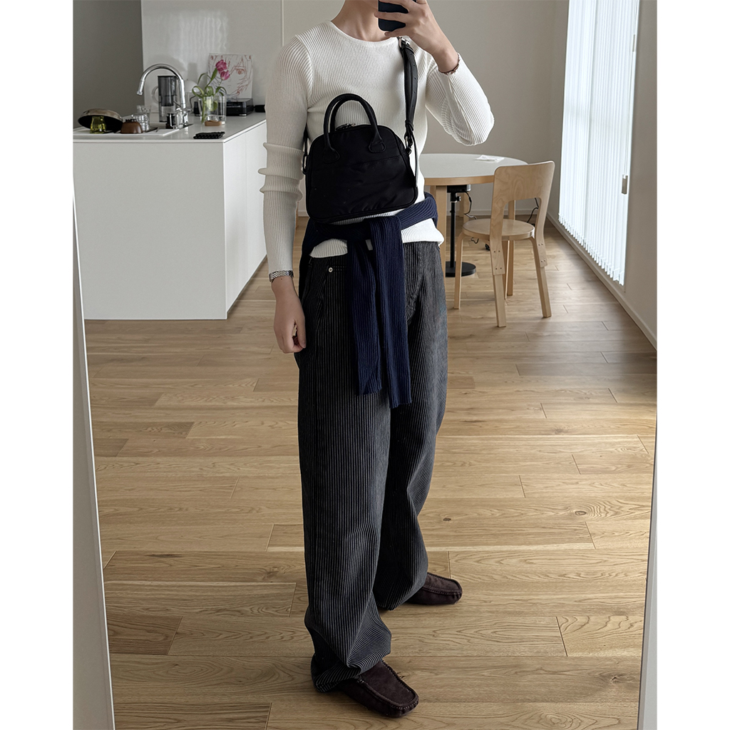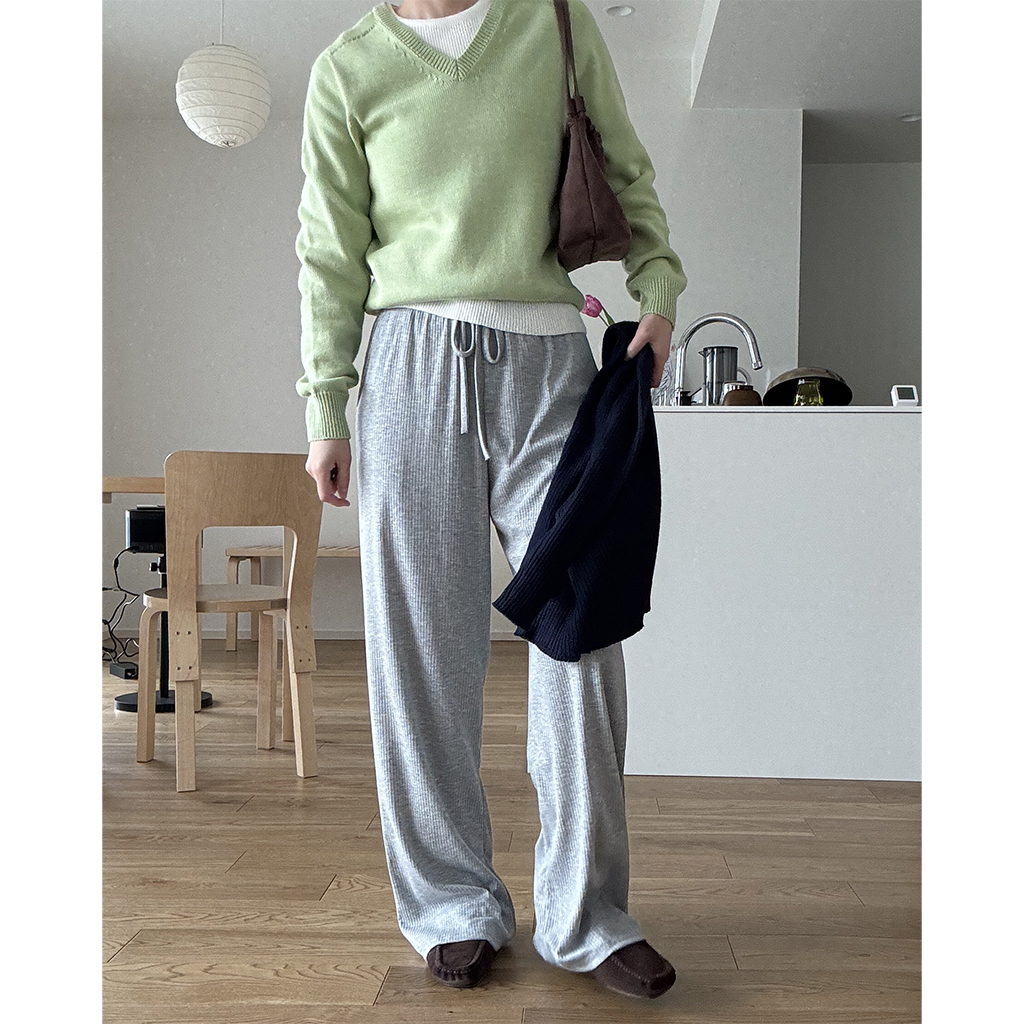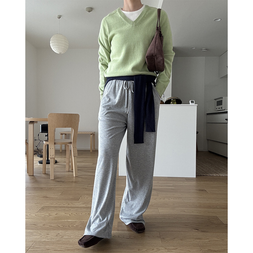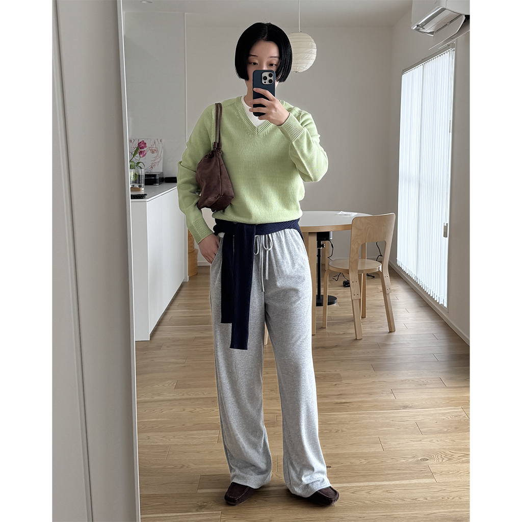 シンプルリブラウンドニット