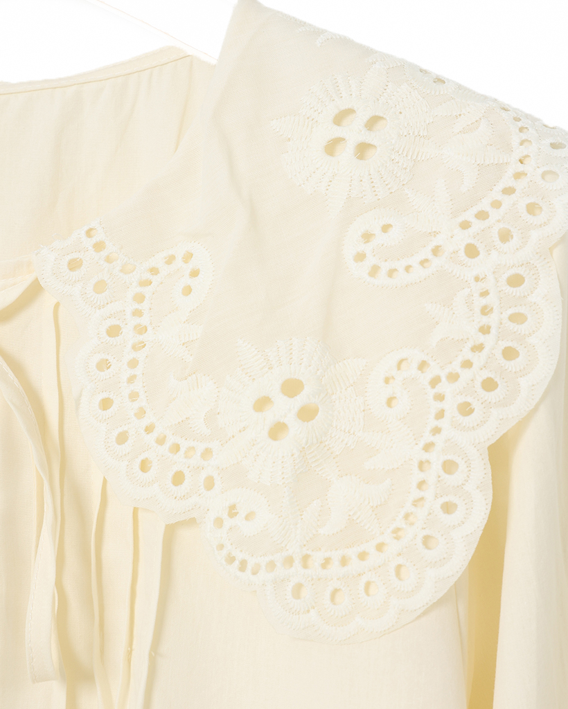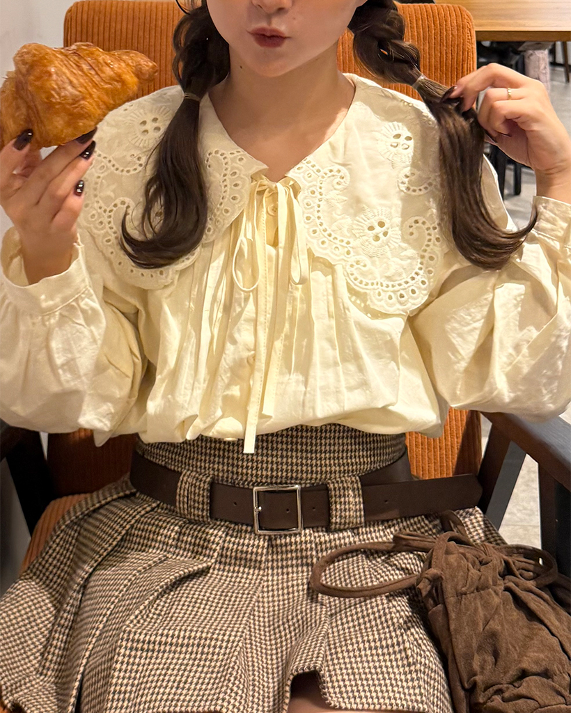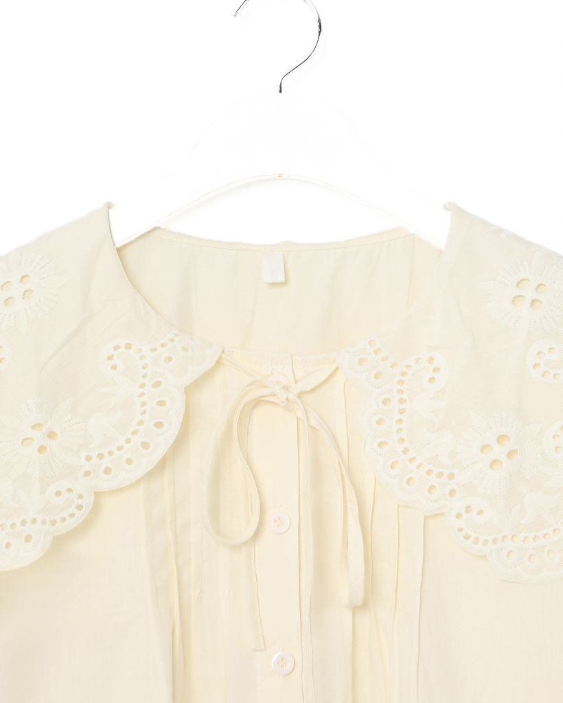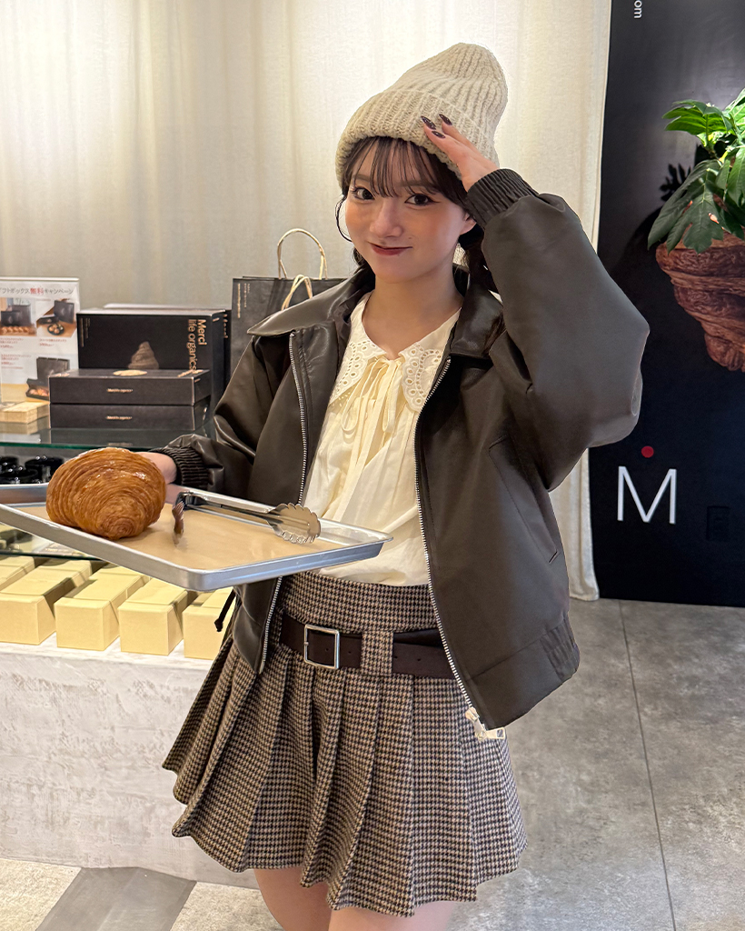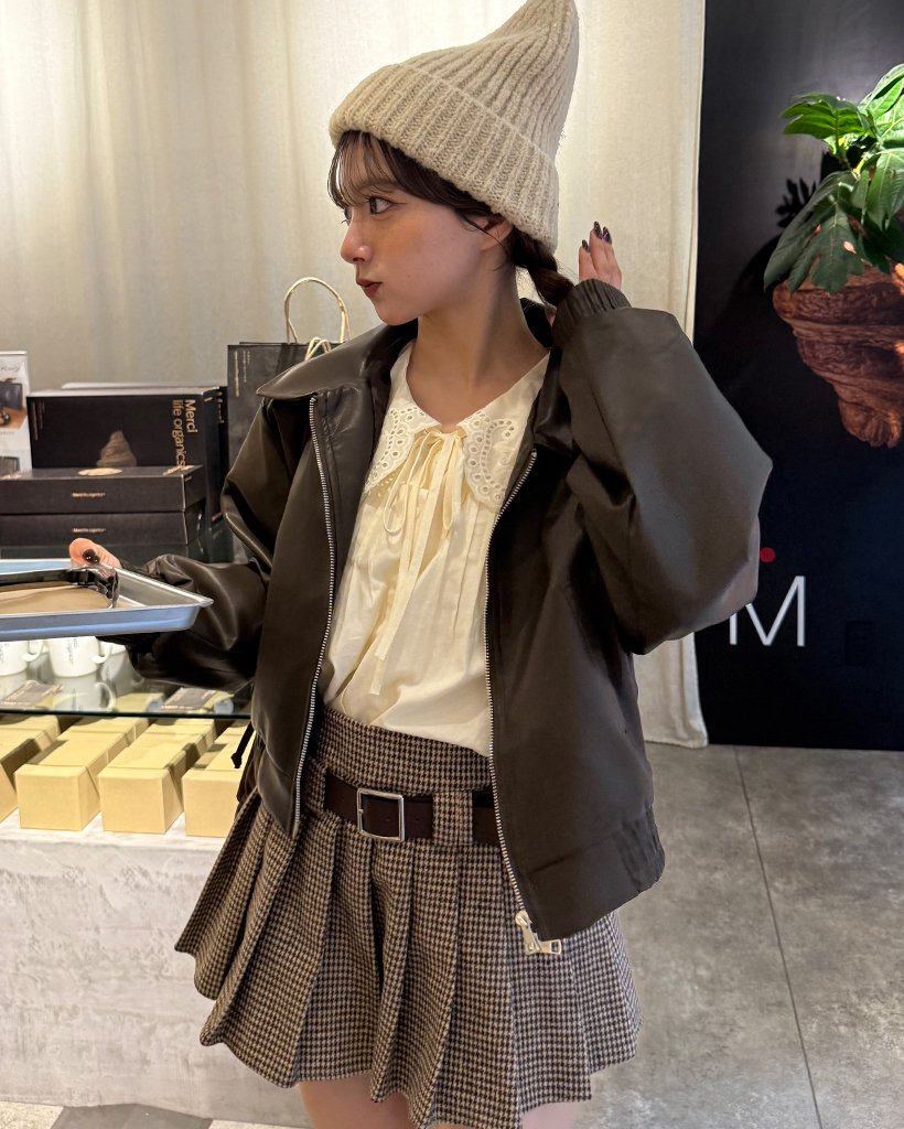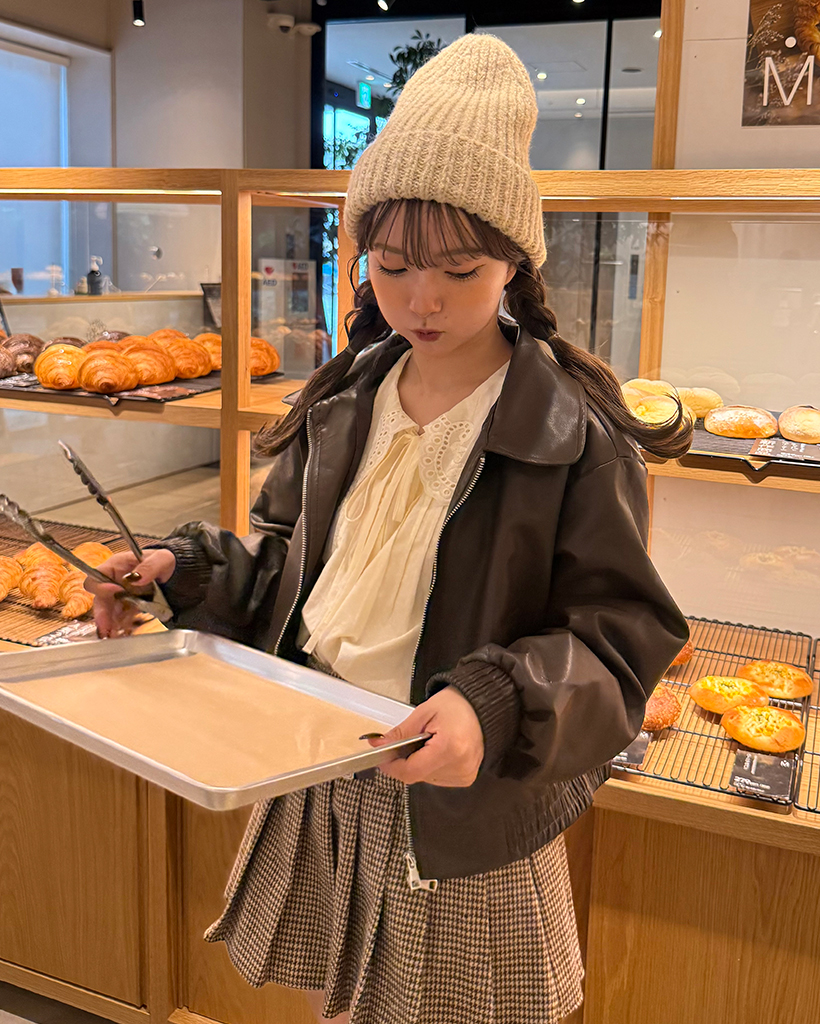 パンチング生地の生産過程で襟の部分にハギレ布がついている場合があります。