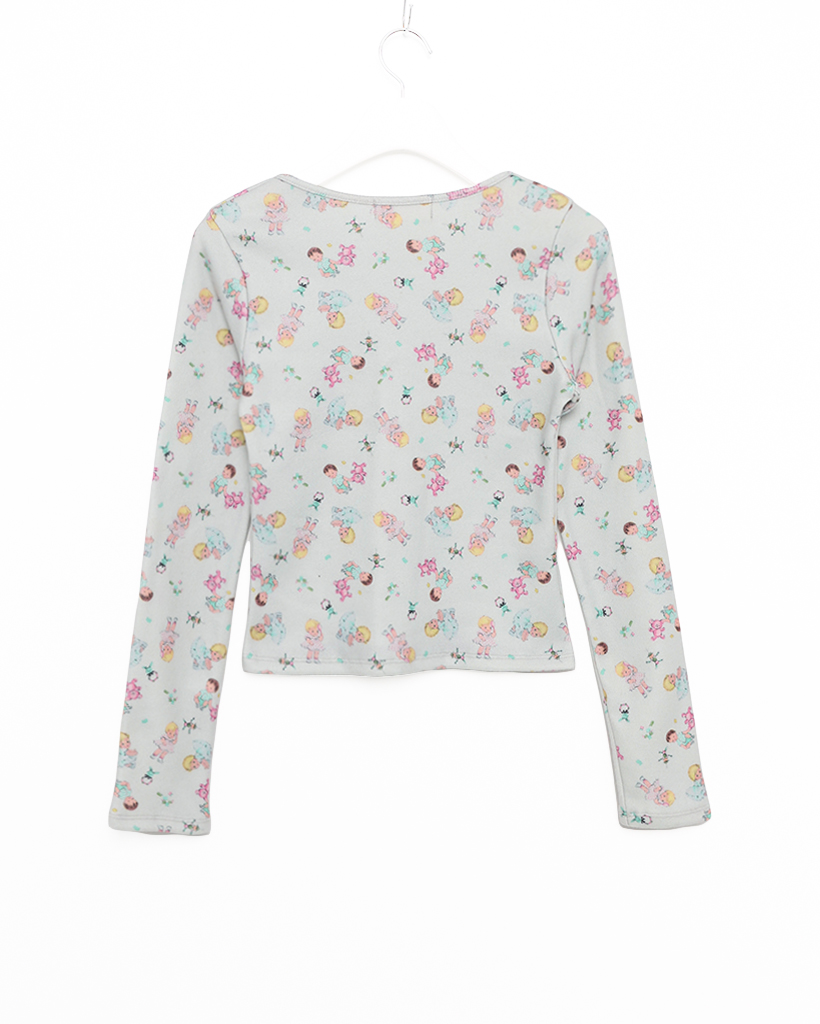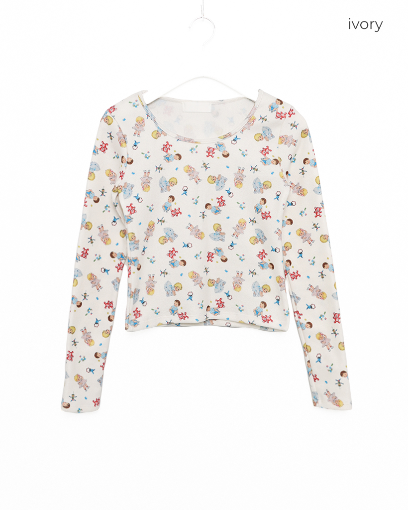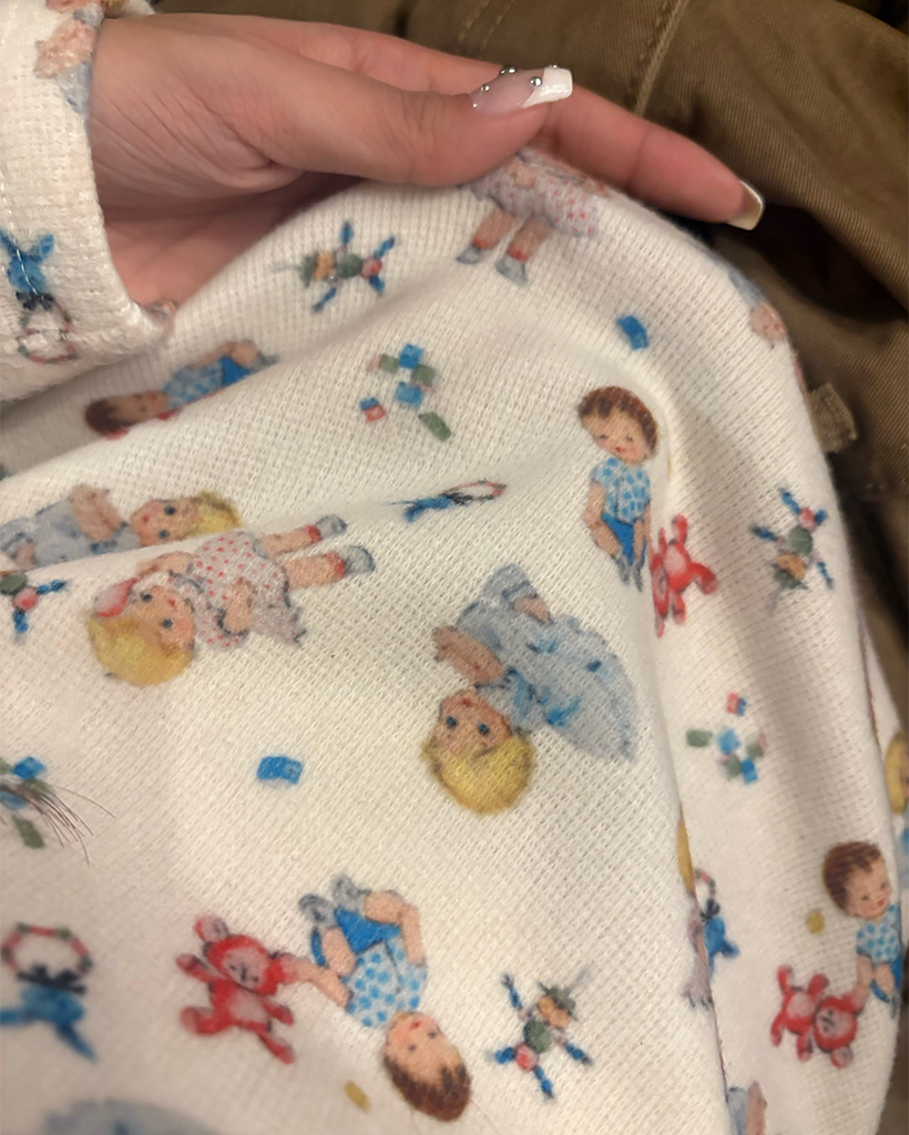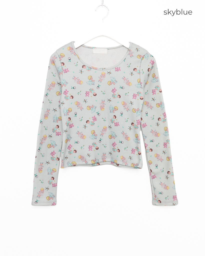 ベイビージュエルネッククロップド裏起毛カットソー