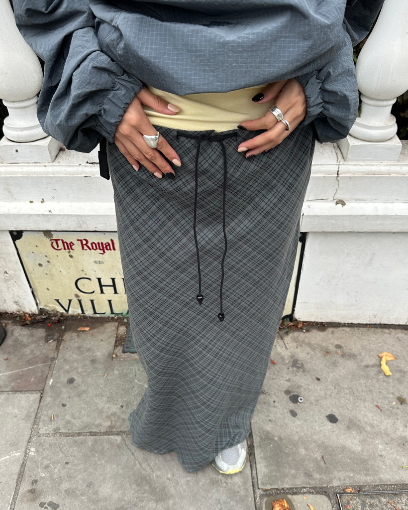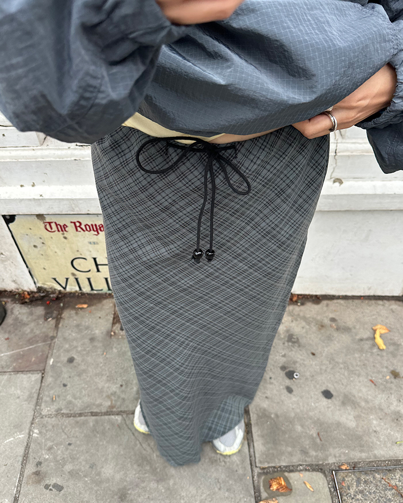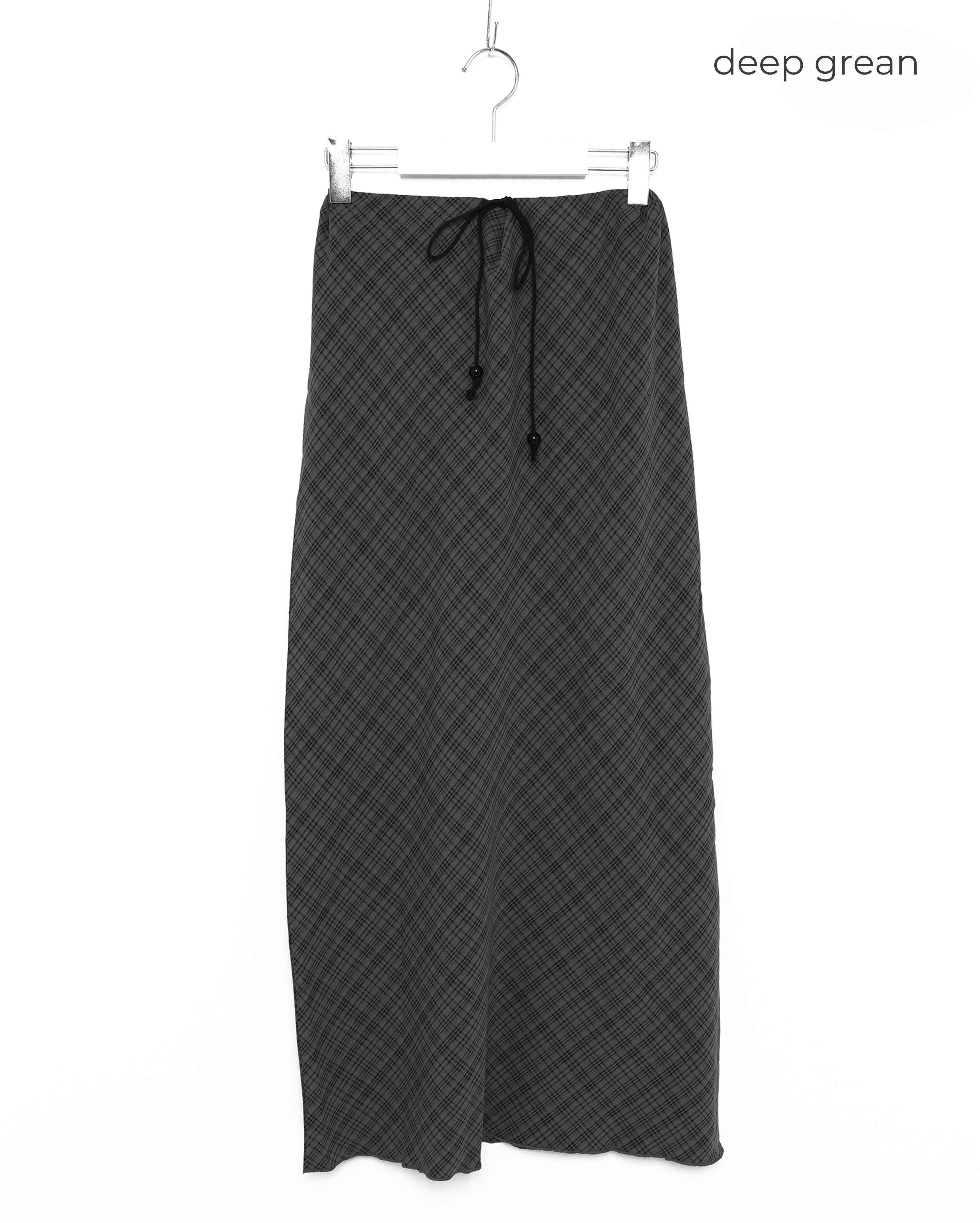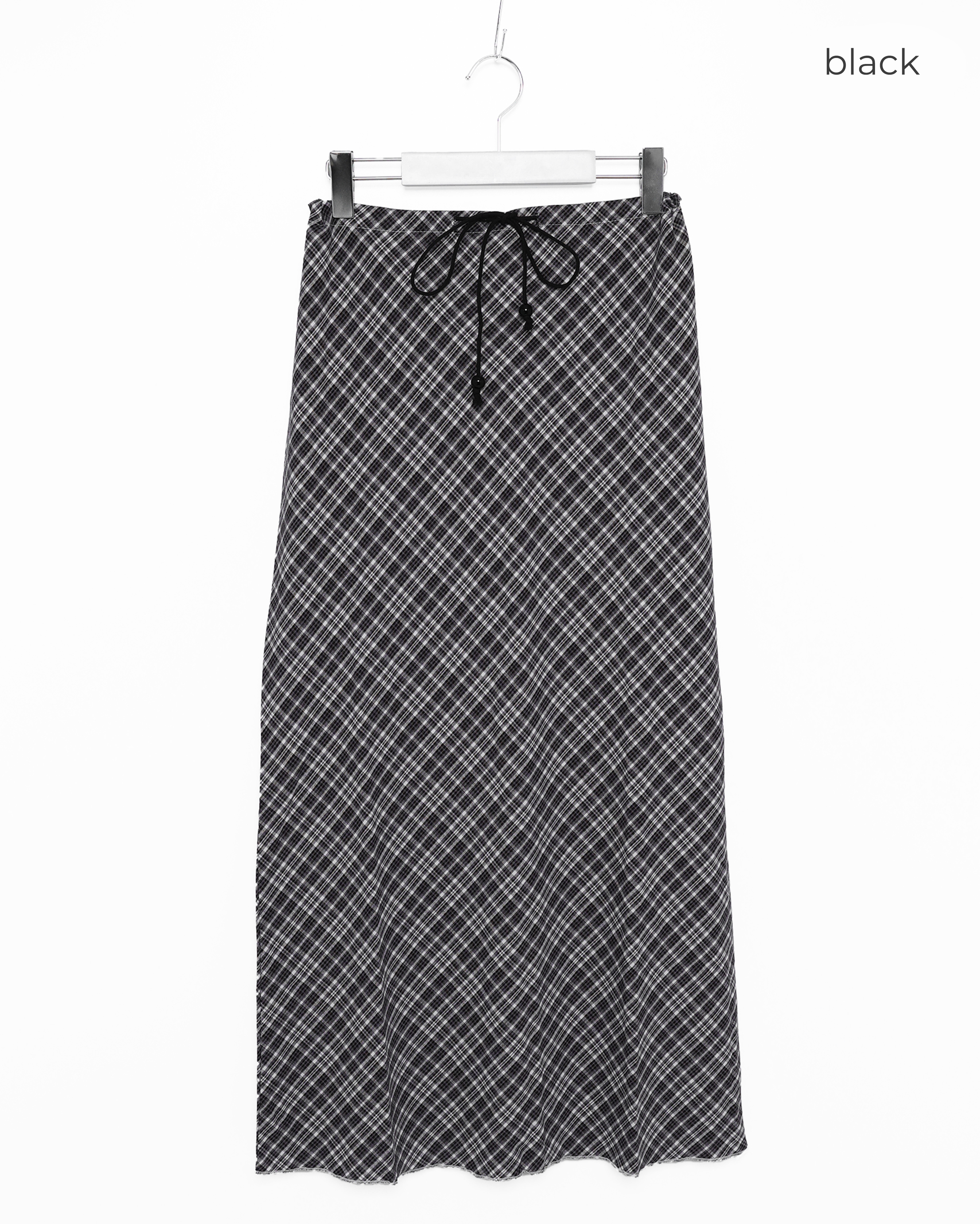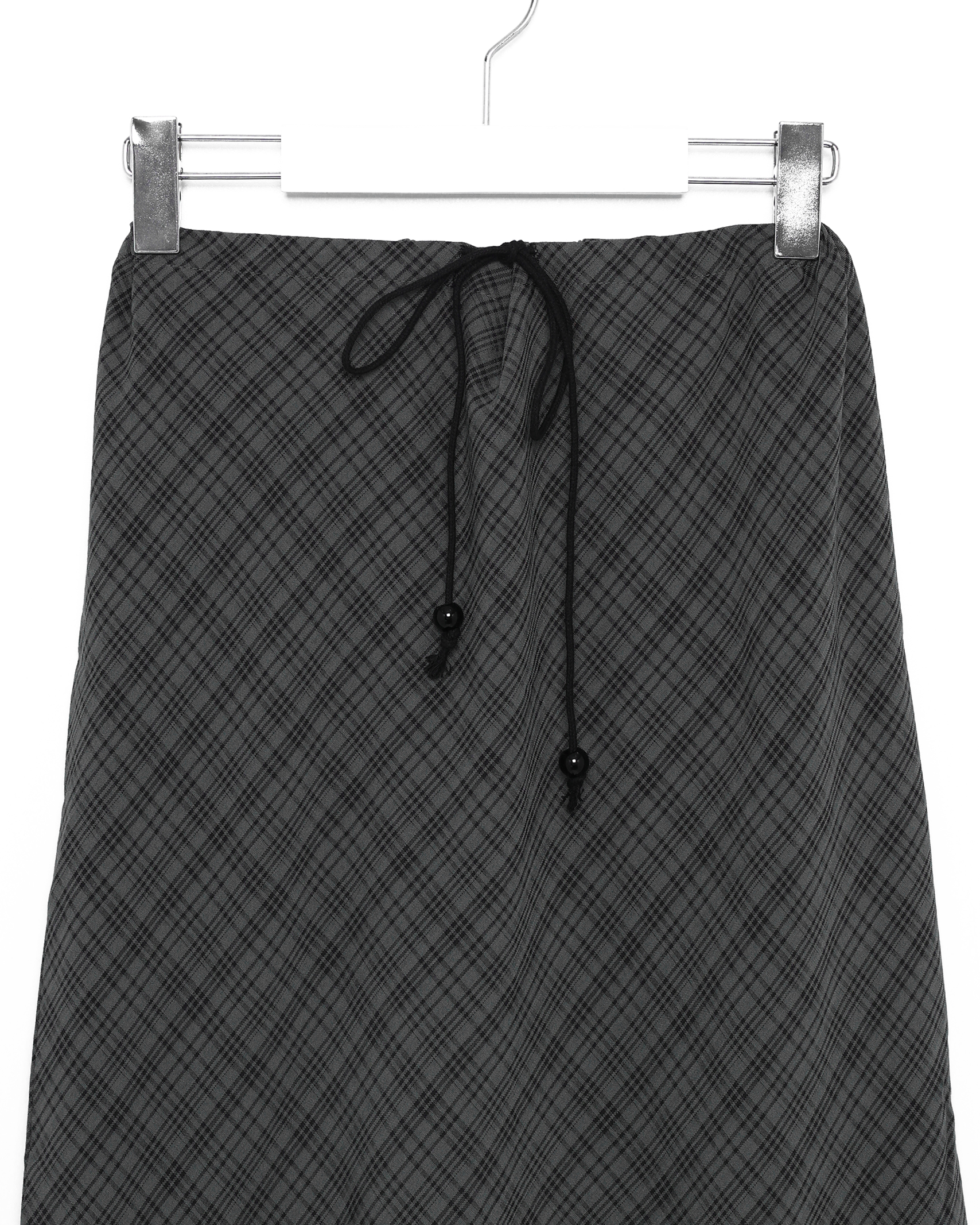 ウエストドローストリングチェックマキシスカート