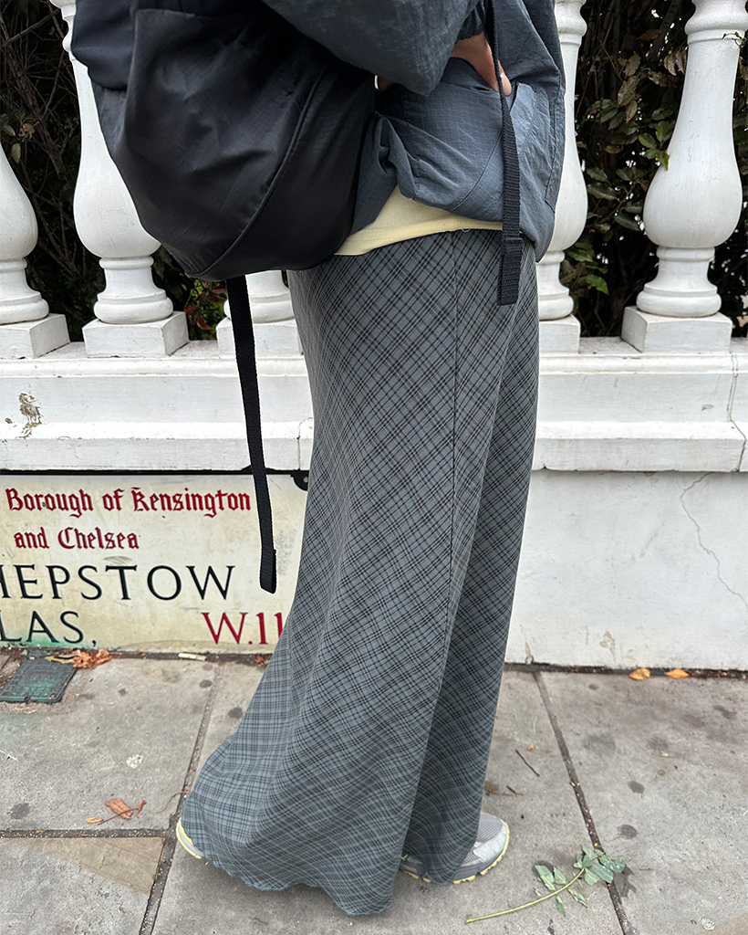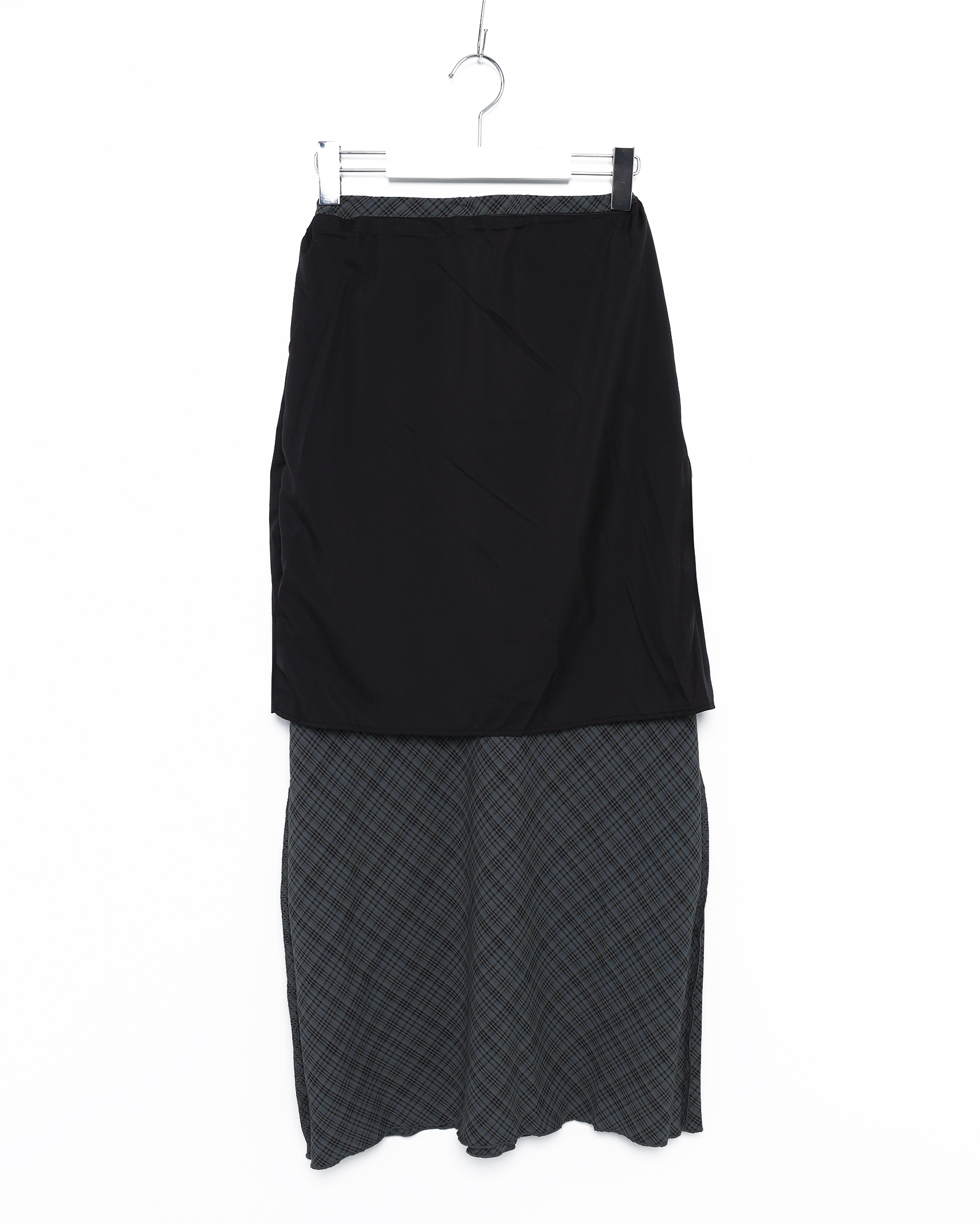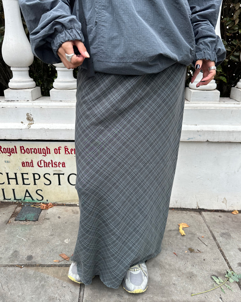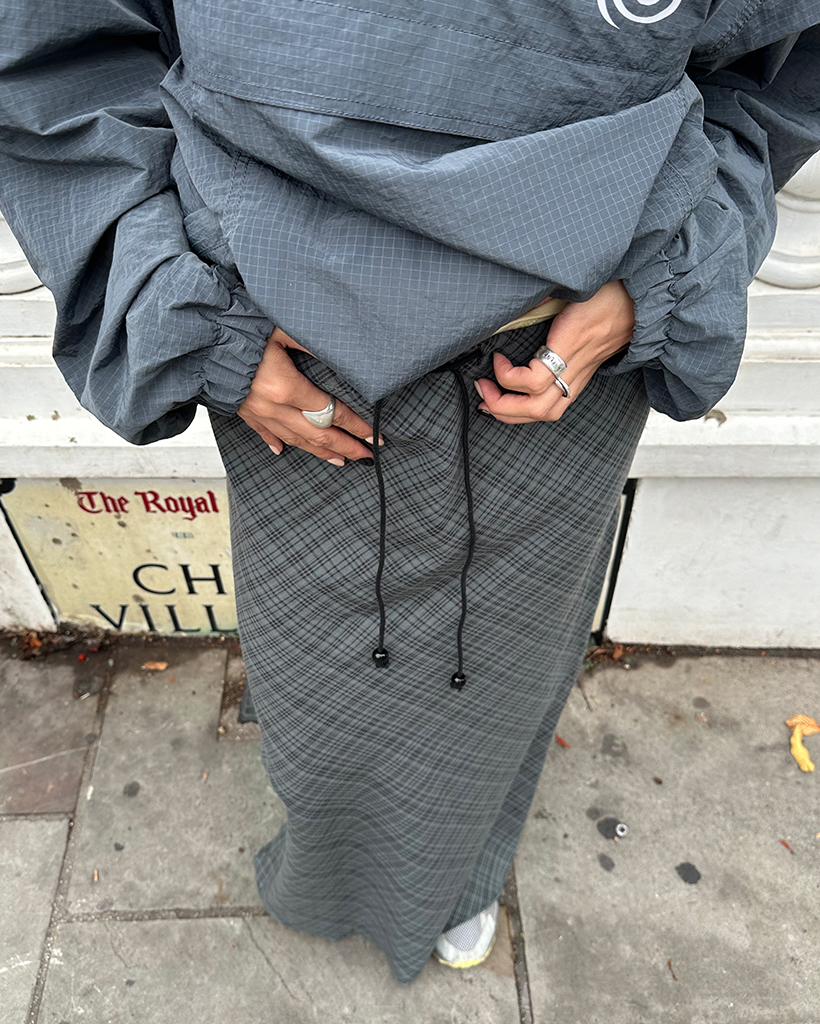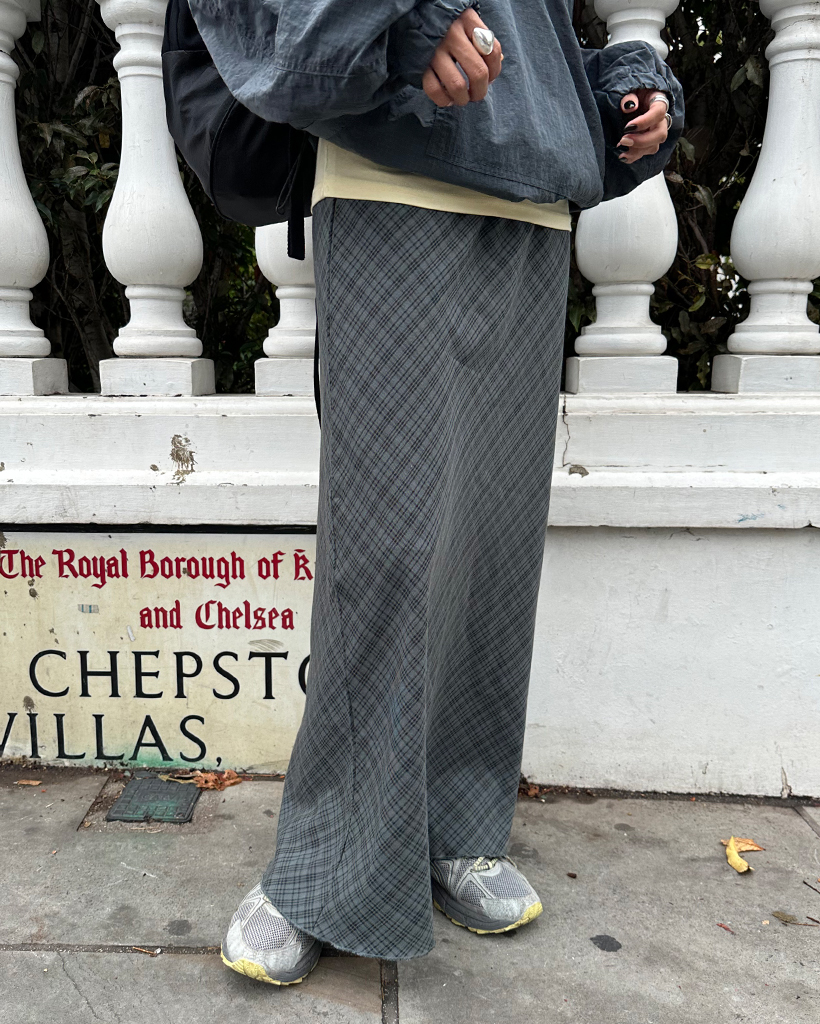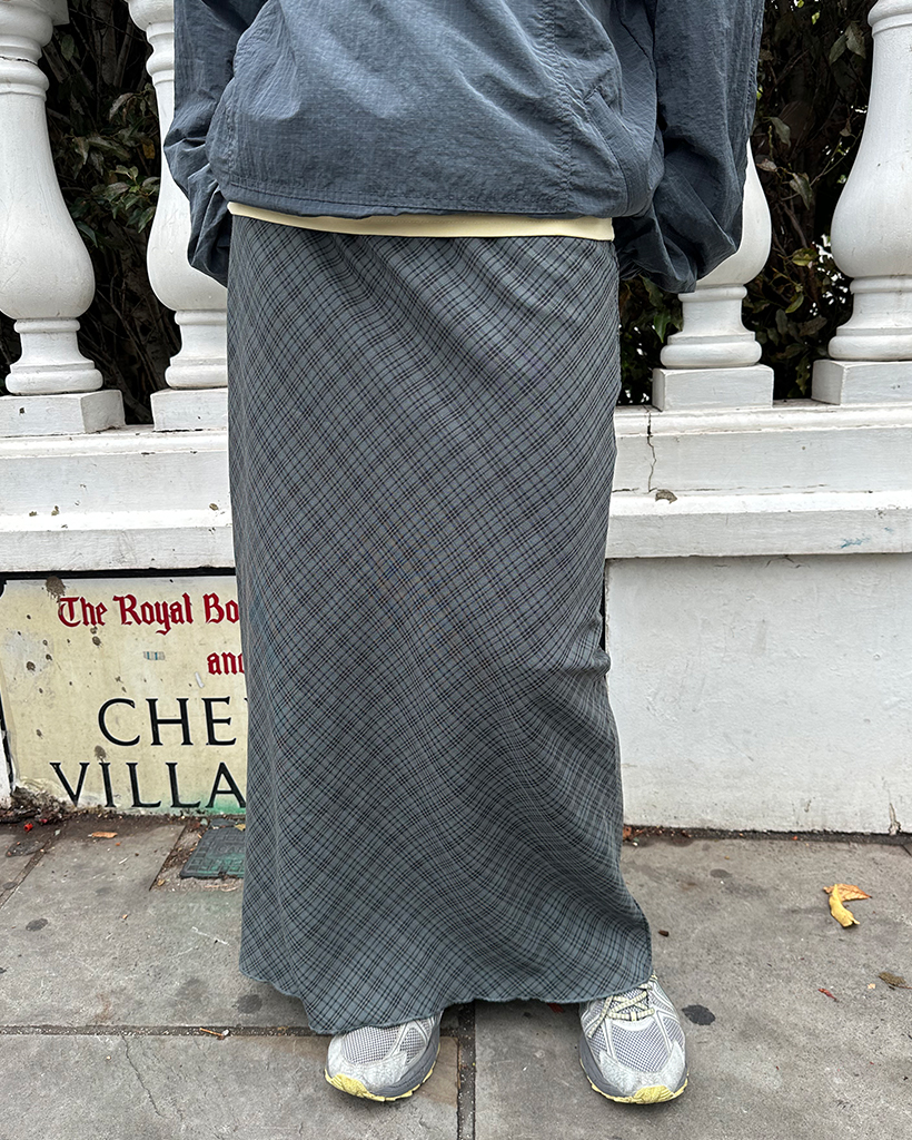 ウエストドローストリングチェックマキシスカート