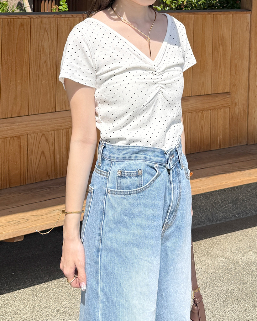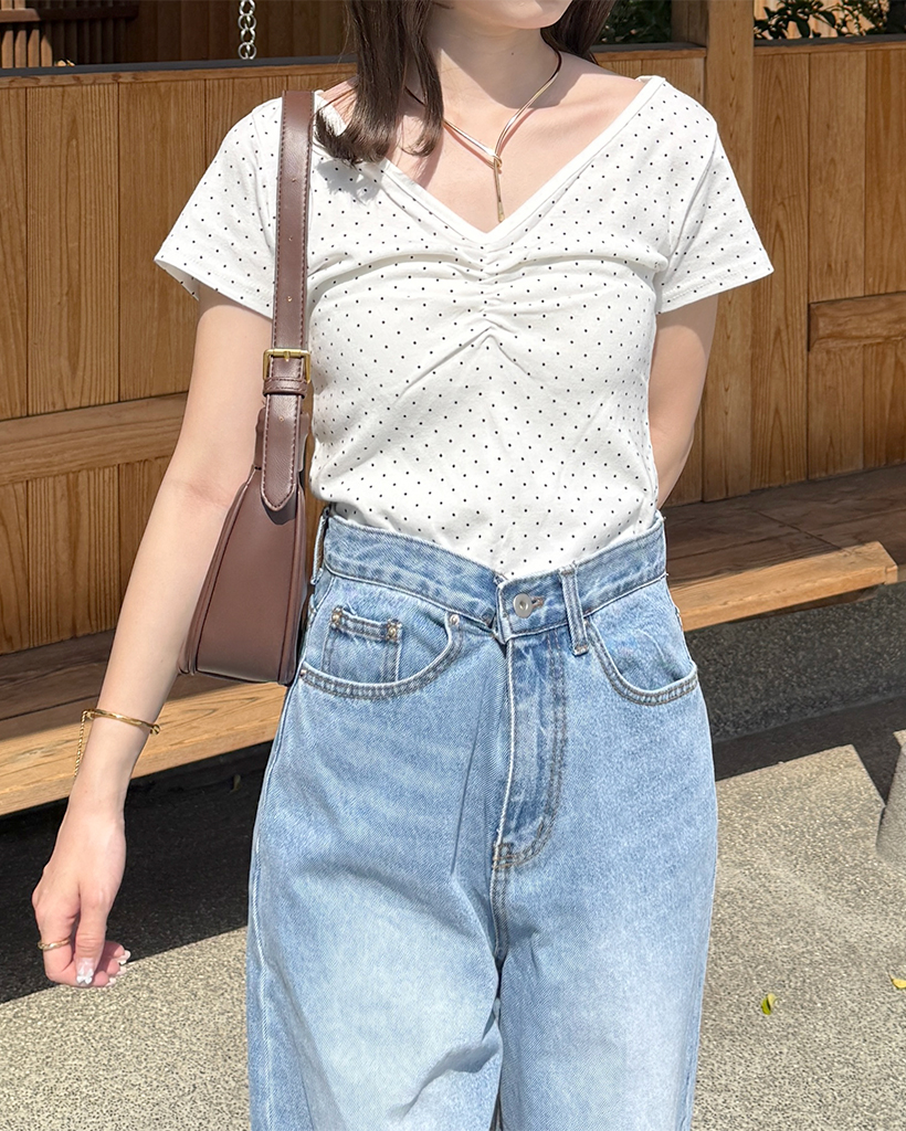 vネックドットシャーリング半袖Tシャツ