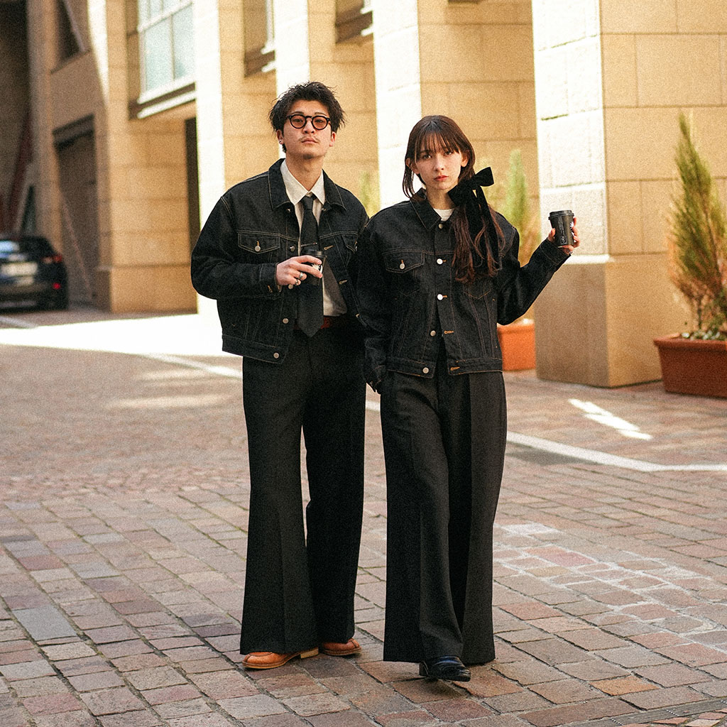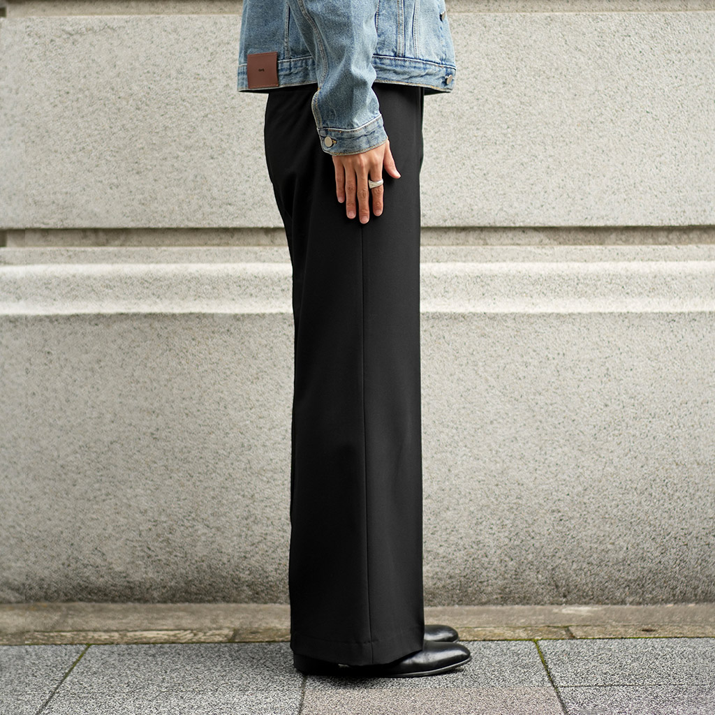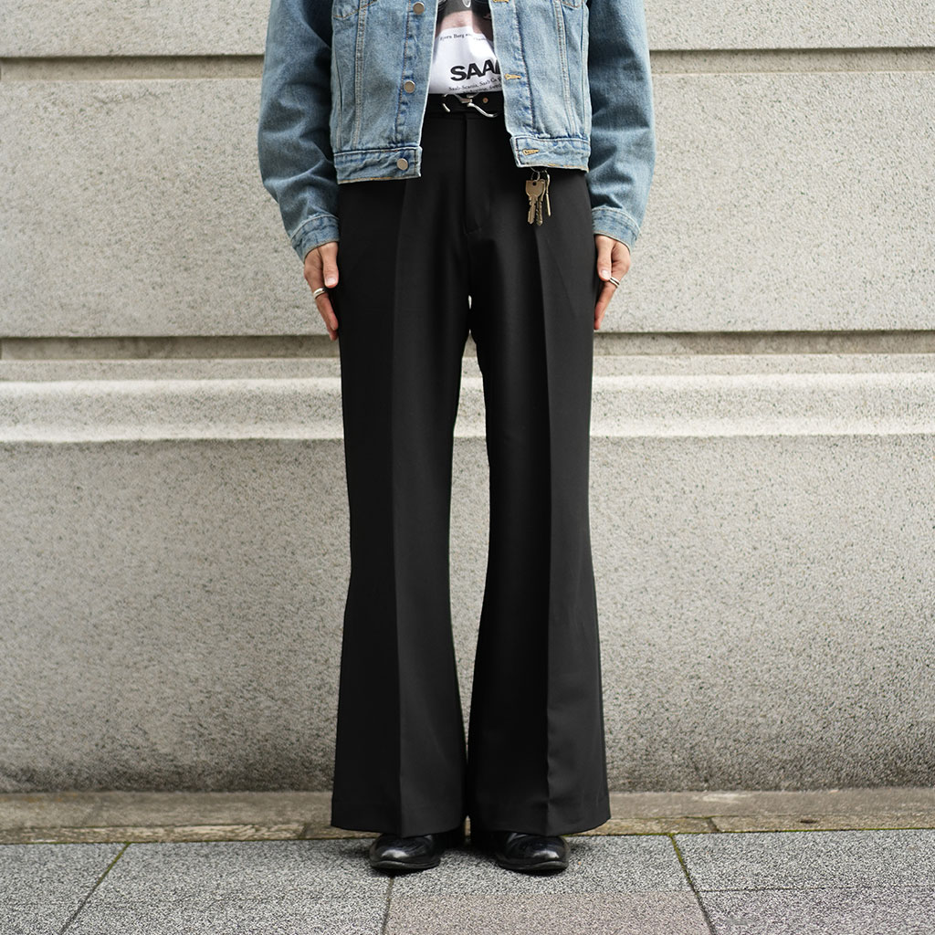 [8回再販](ORIGINAL) ワイドフレアスラックス (black)