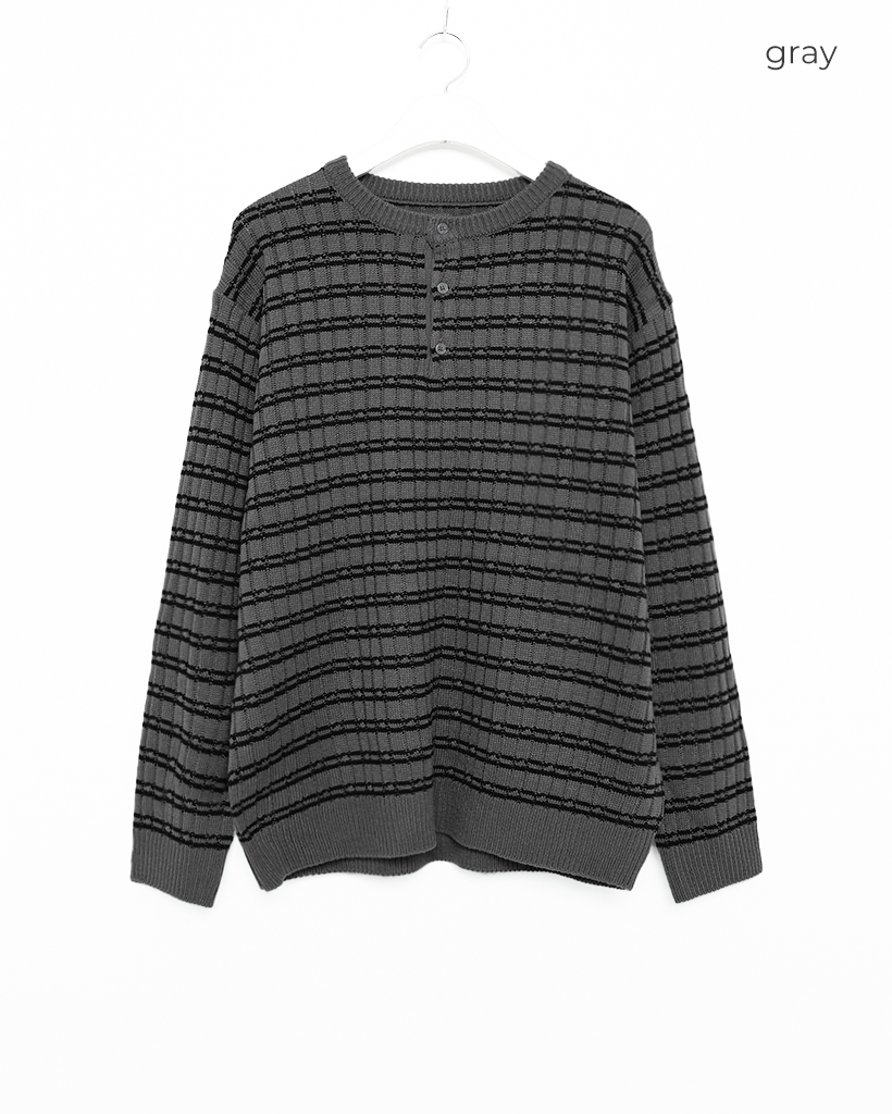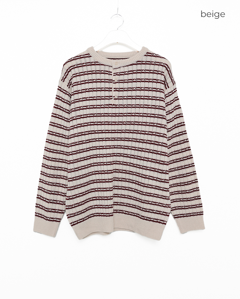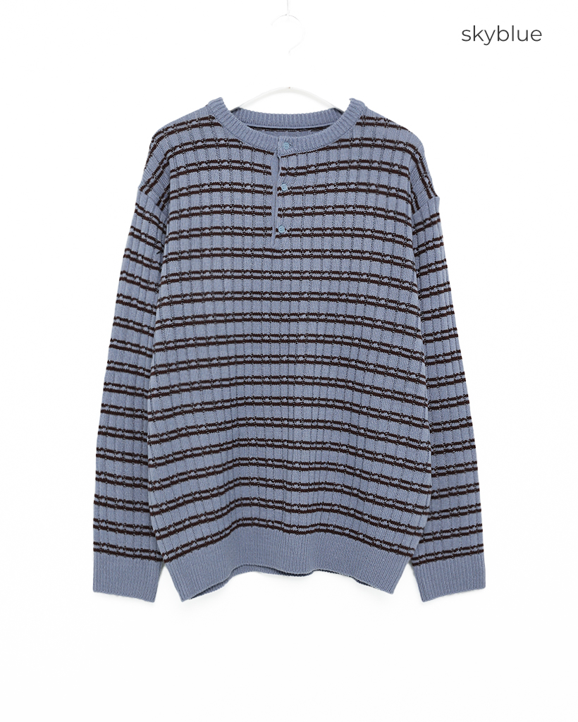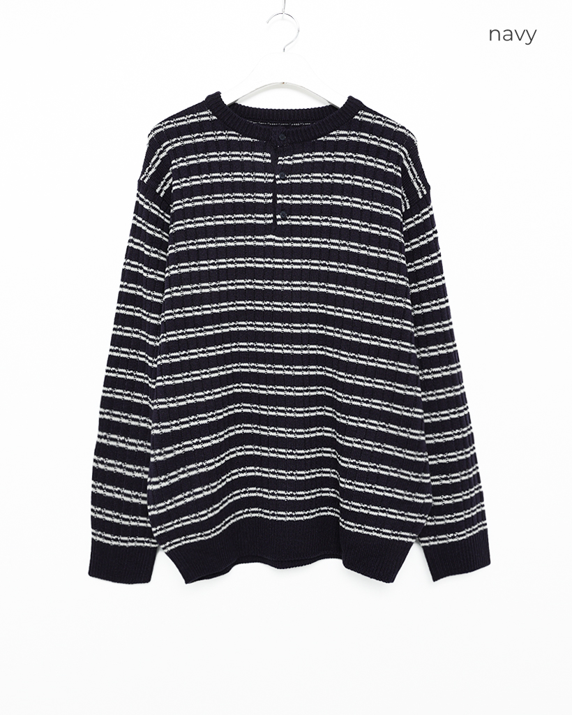 (ユニセックス)ハーフオープンボーダーニット