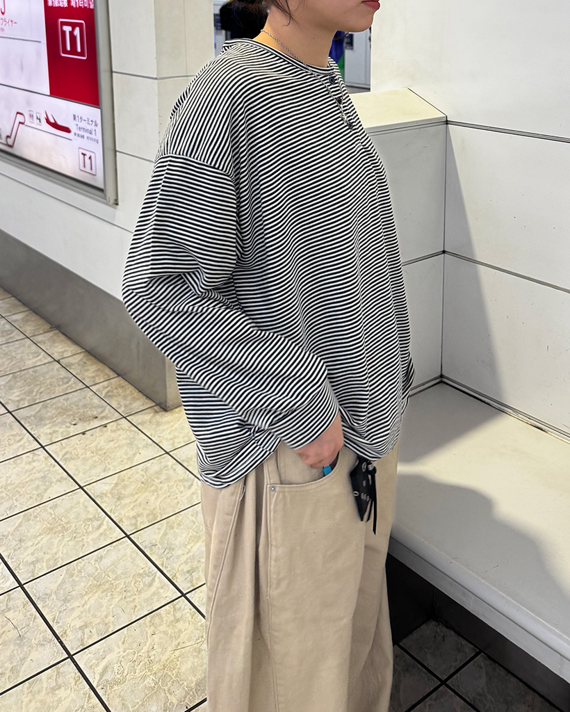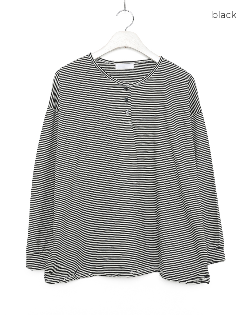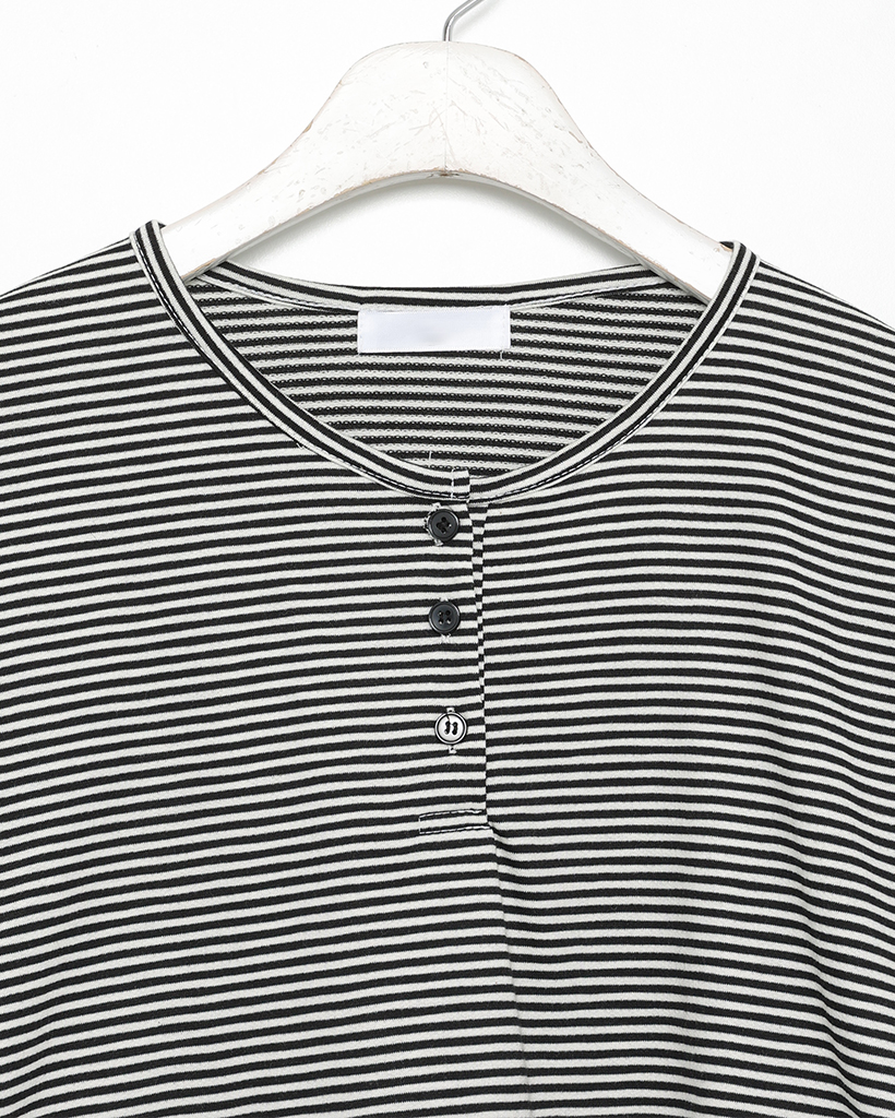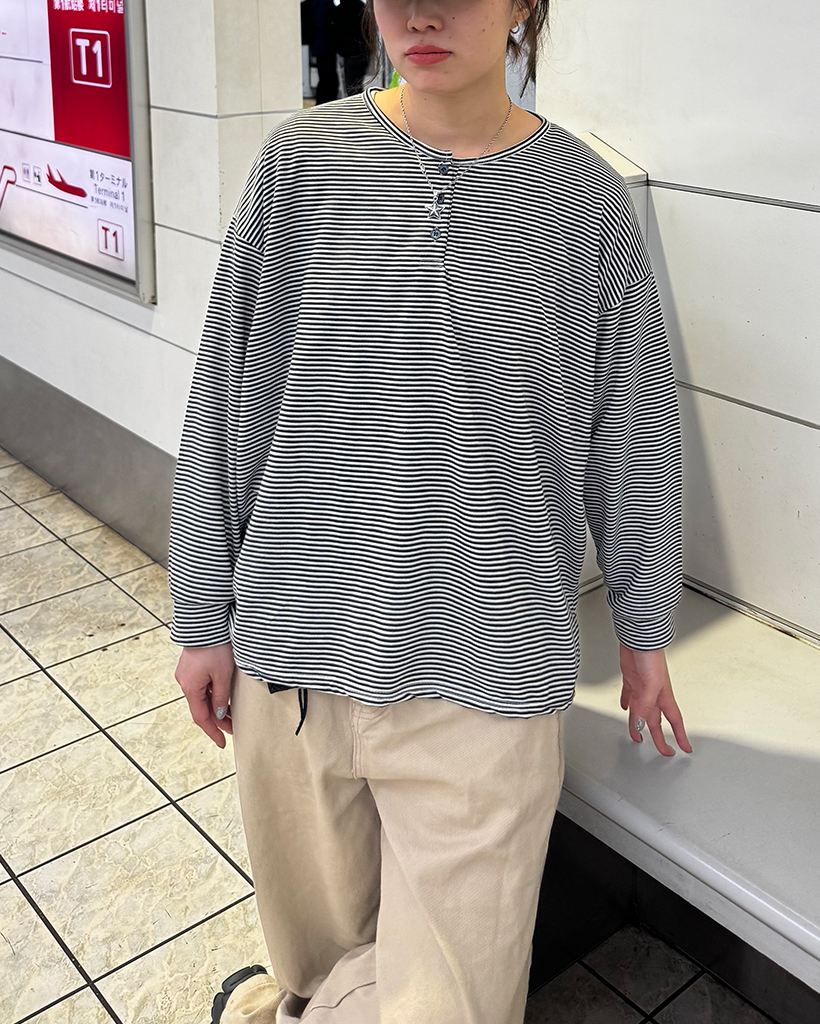 ボーダーヘンリーネックTシャツ