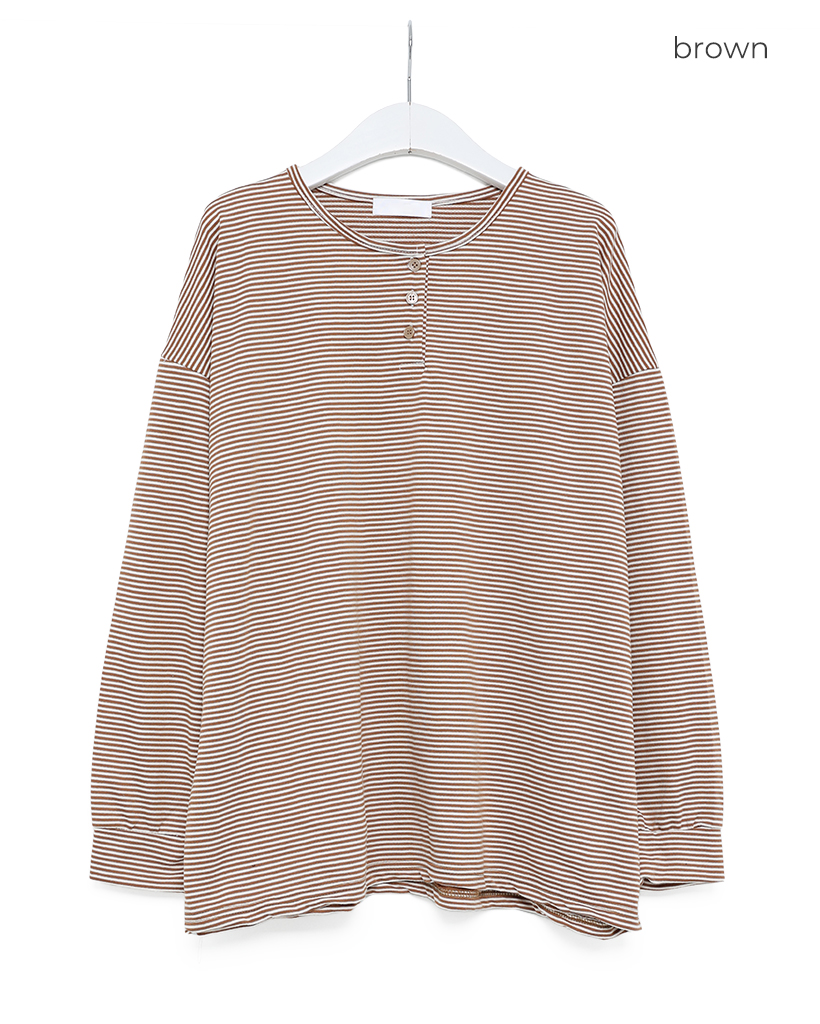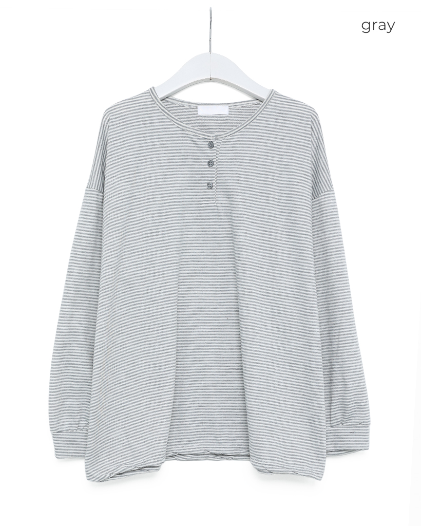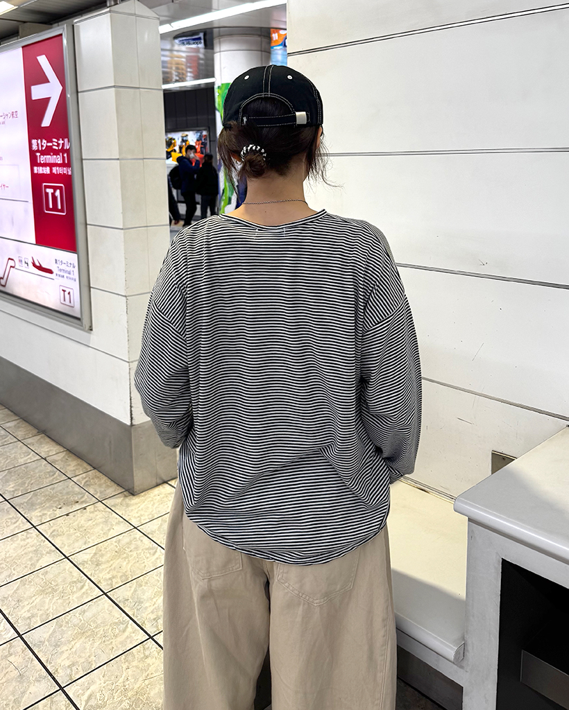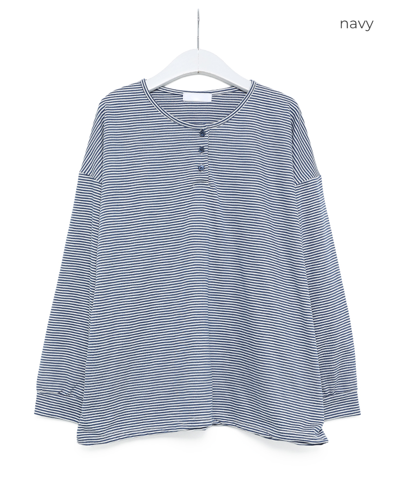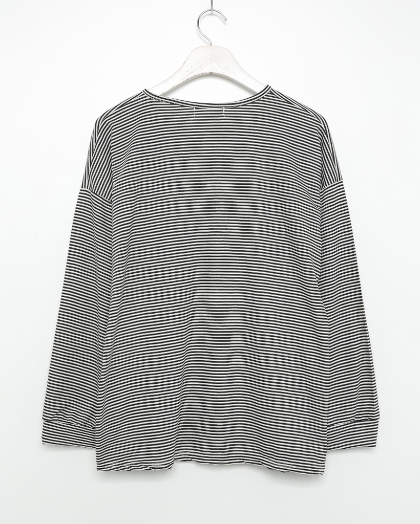 ボーダーヘンリーネックTシャツ