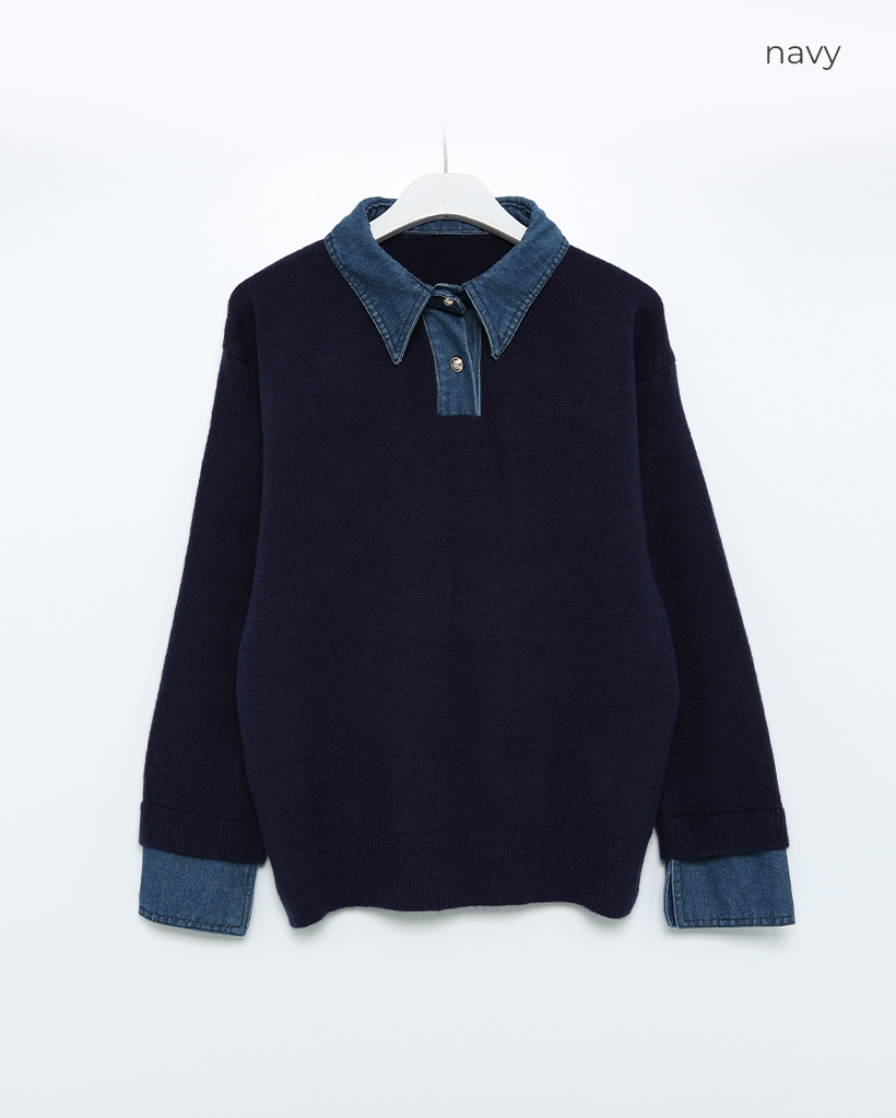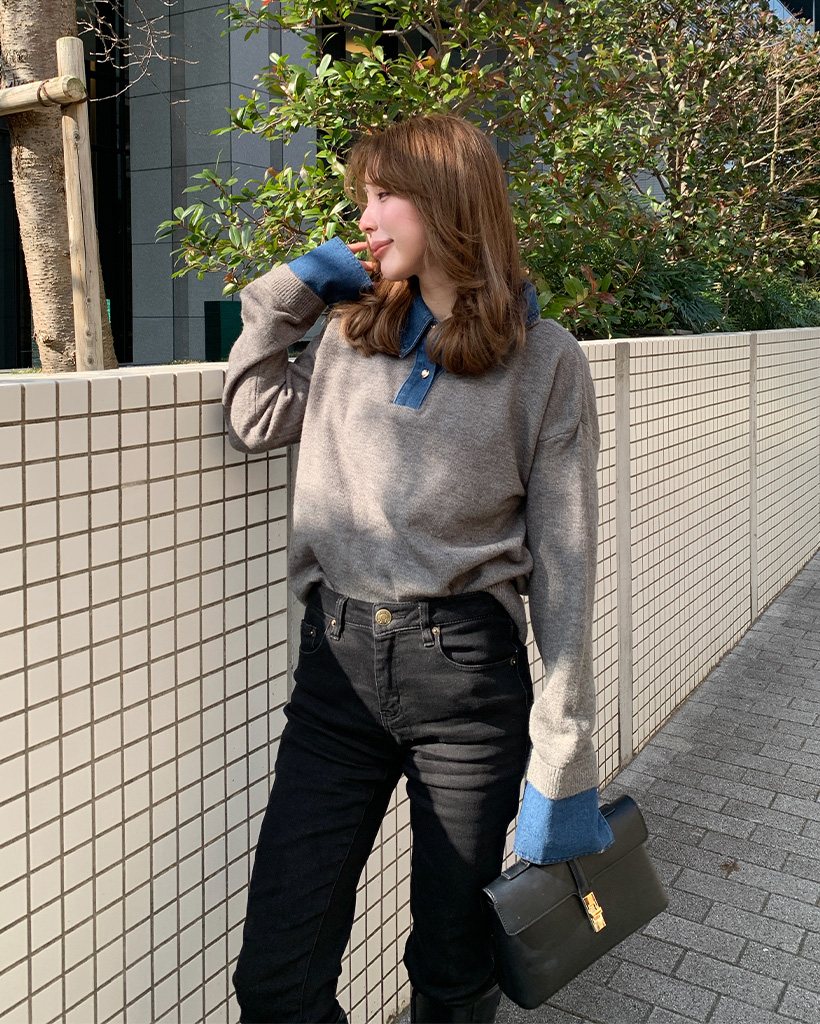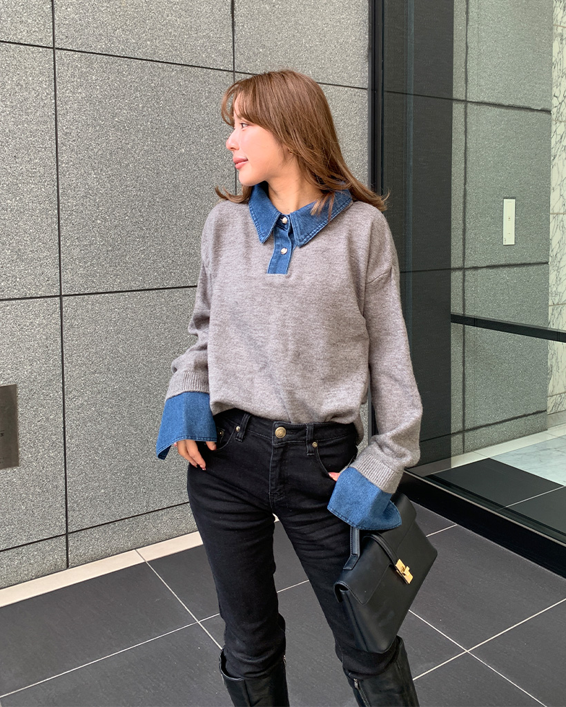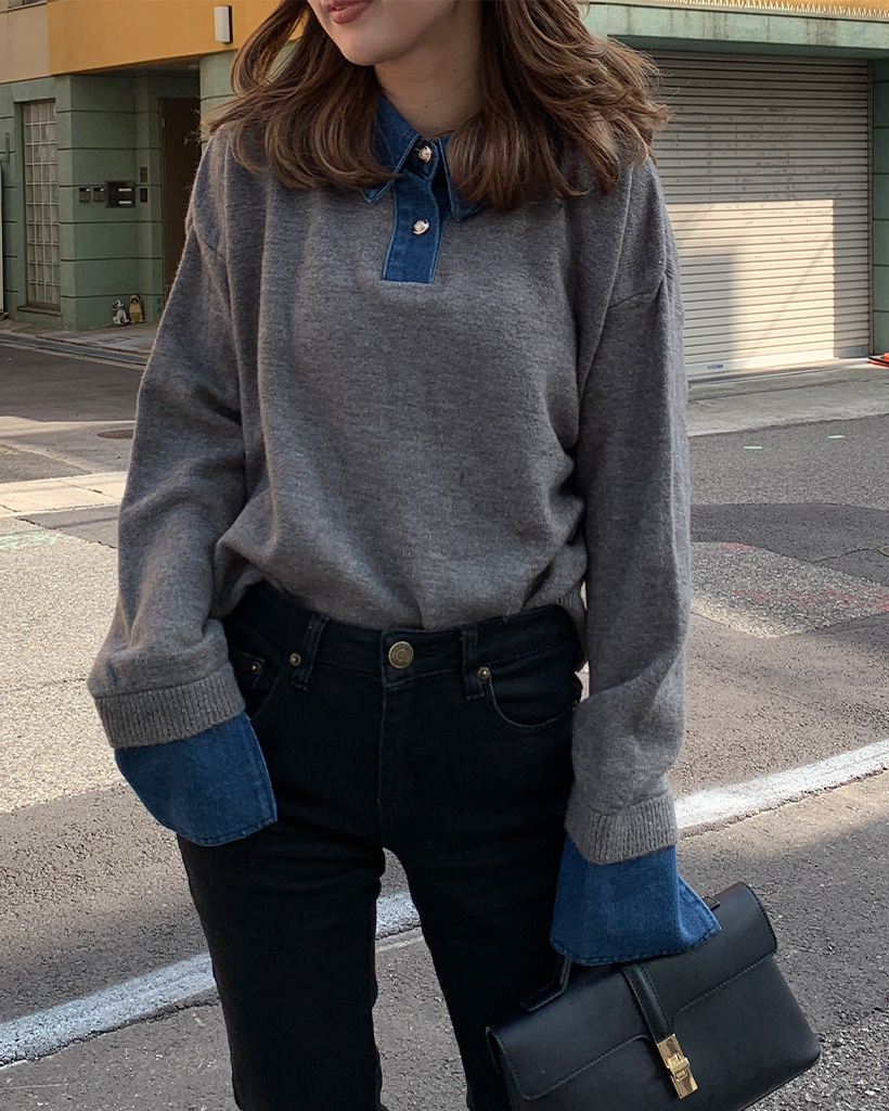 デニムバイカラーポイントカラーニット