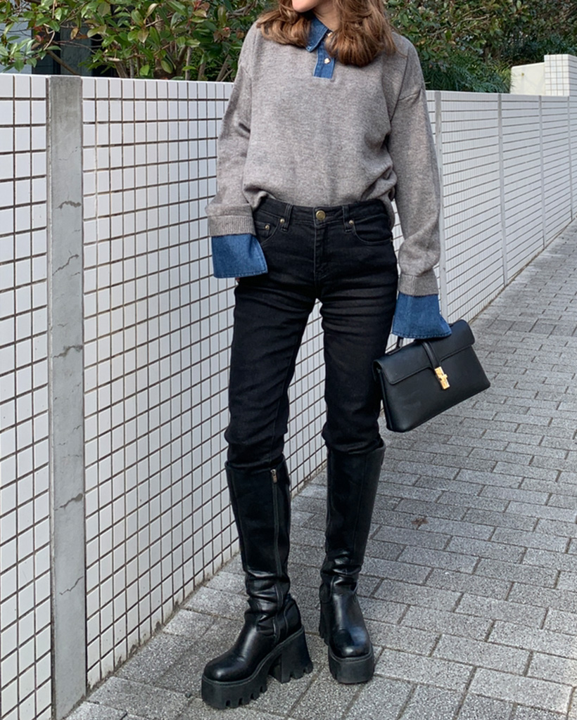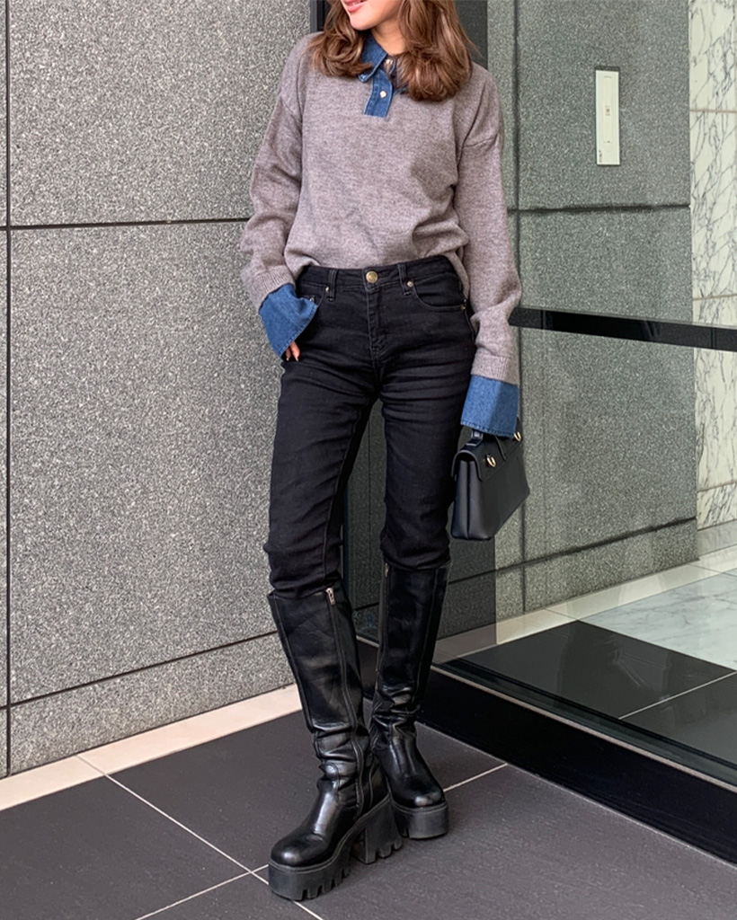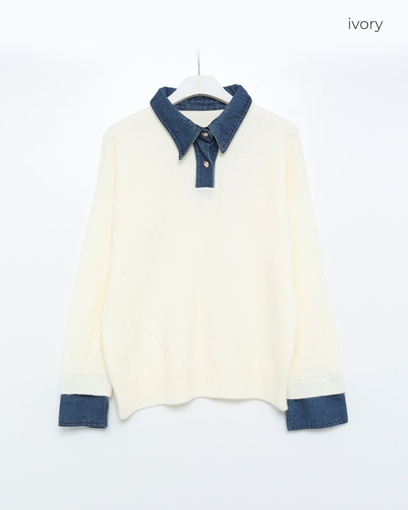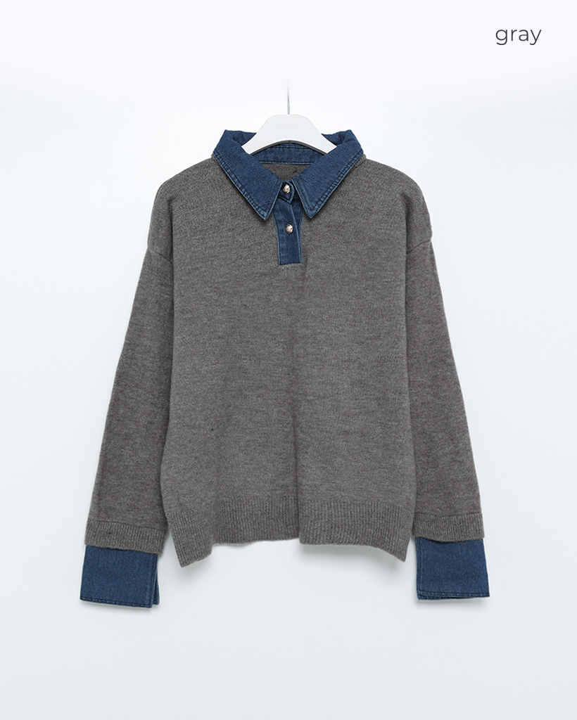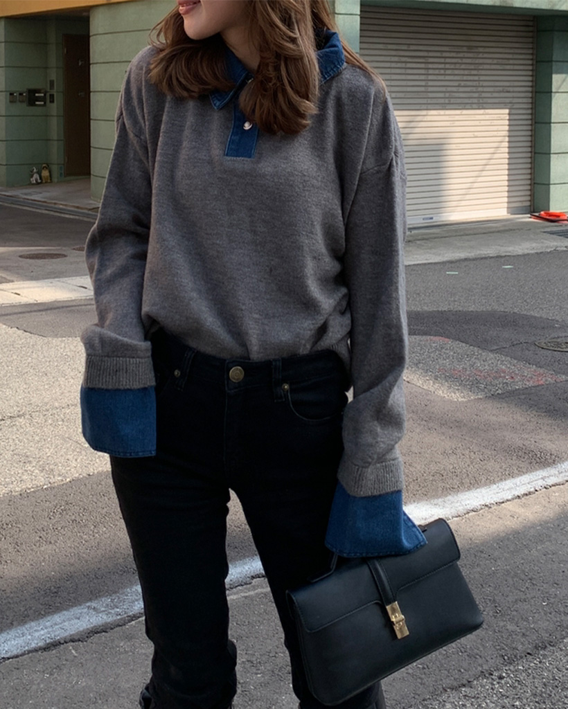 デニムバイカラーポイントカラーニット