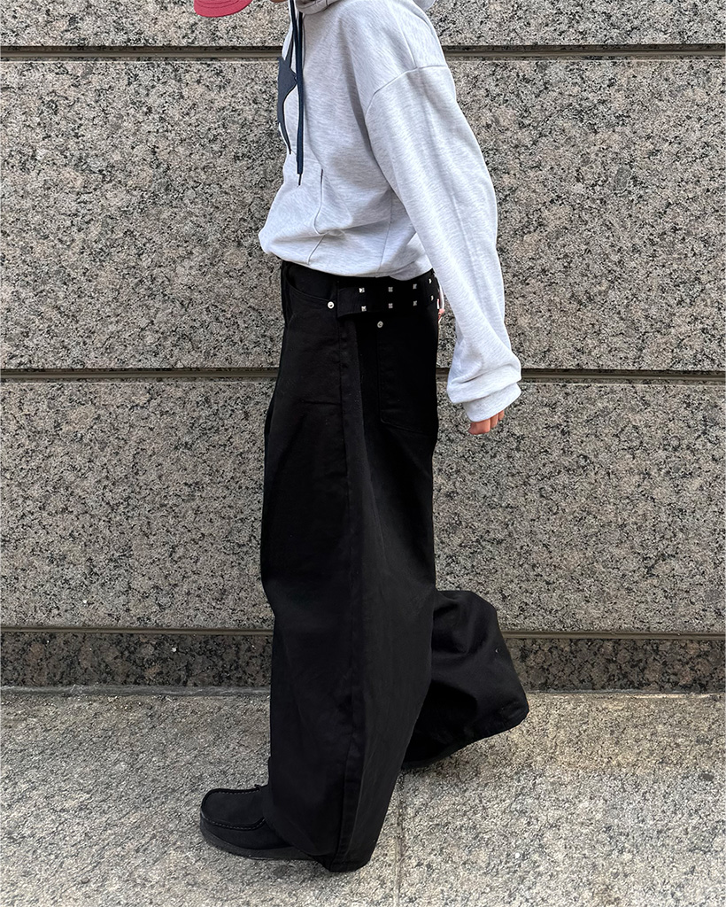 (ユニセックス)スタッズベルト ワイドパンツ