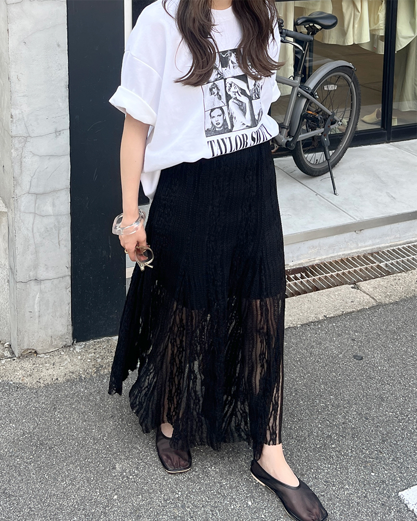 シースルーレースロングスカート