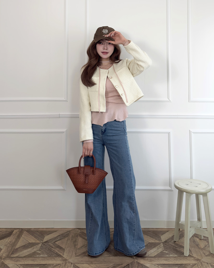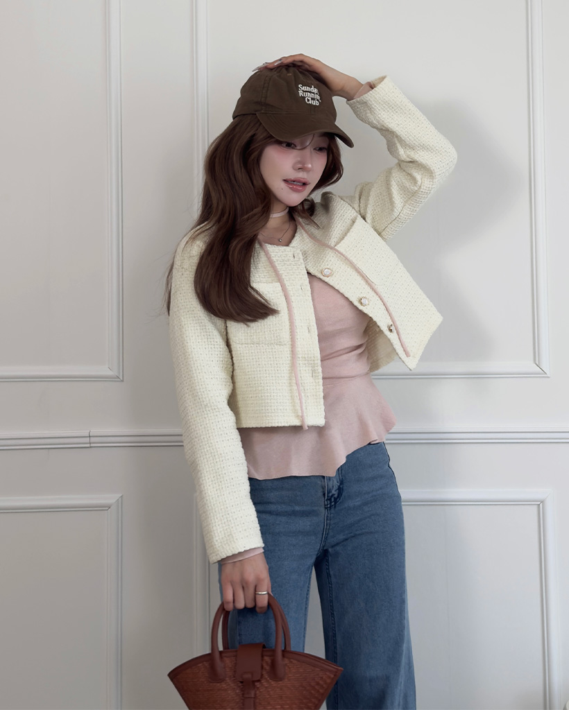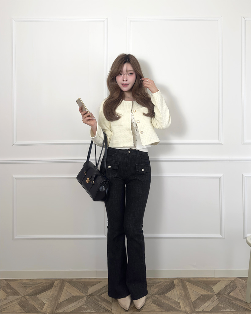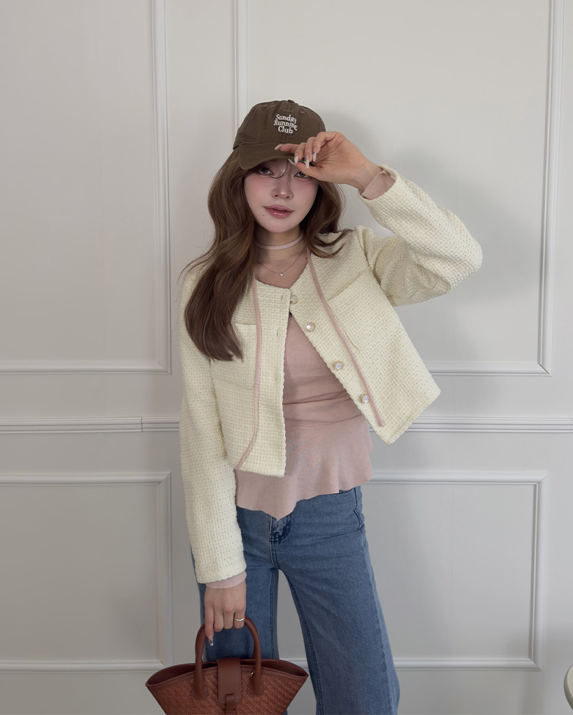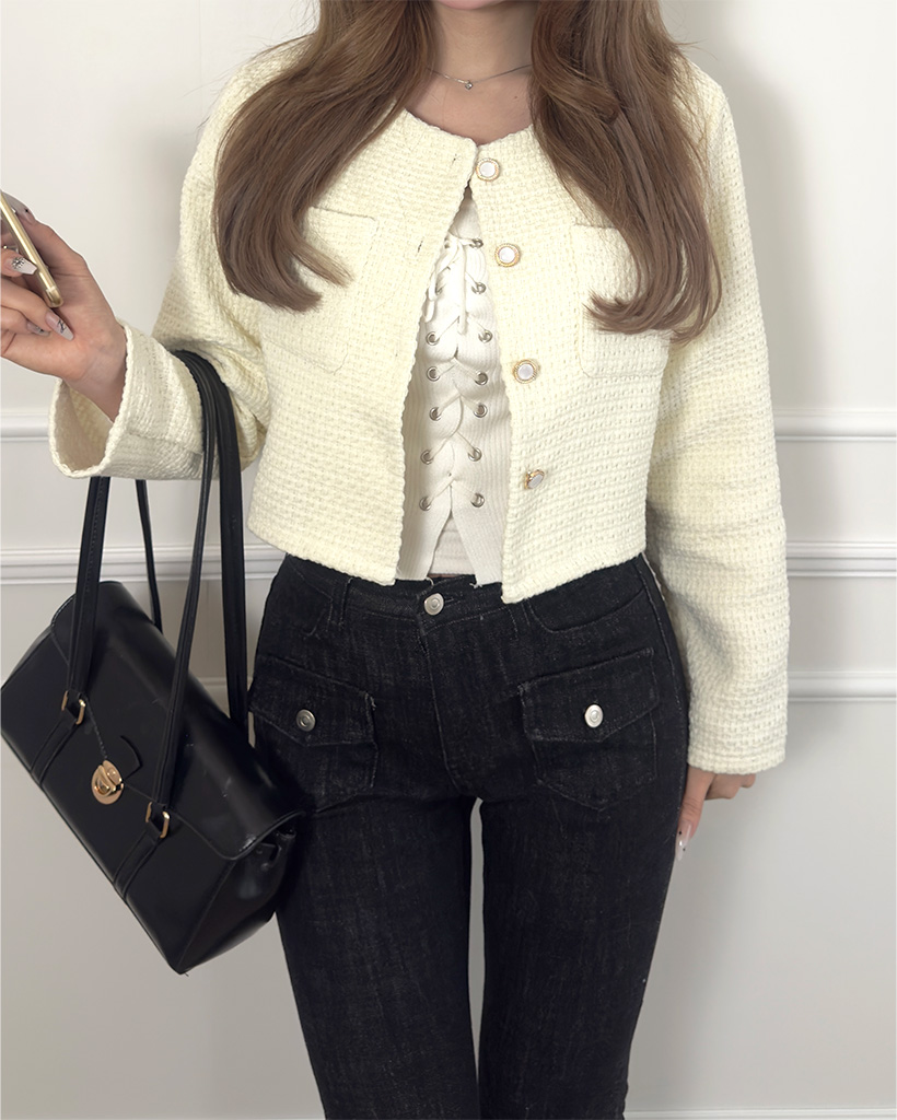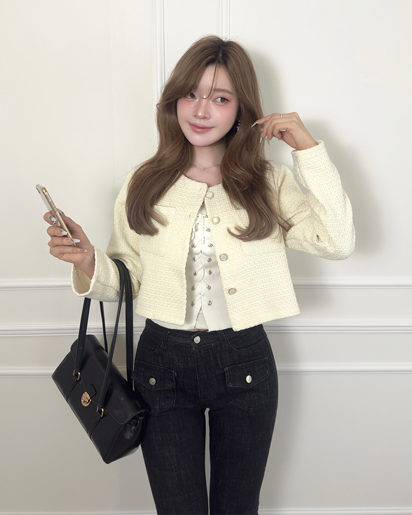 フラップポケットクロップツイードジャケット