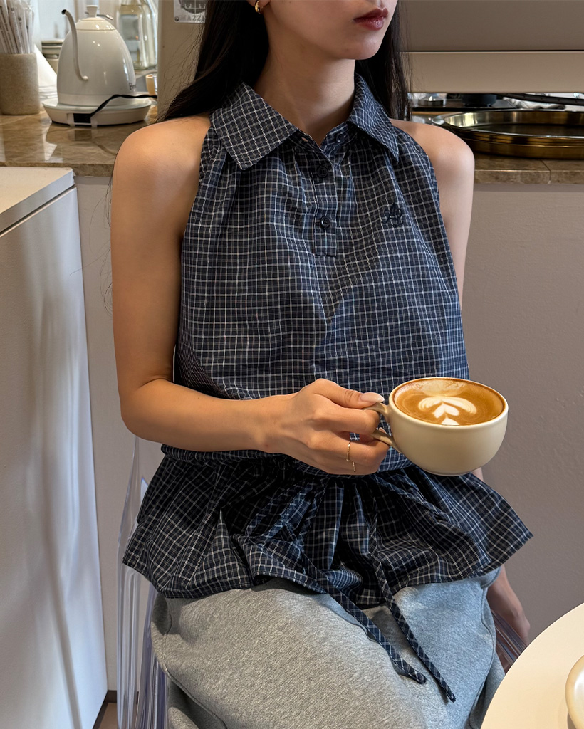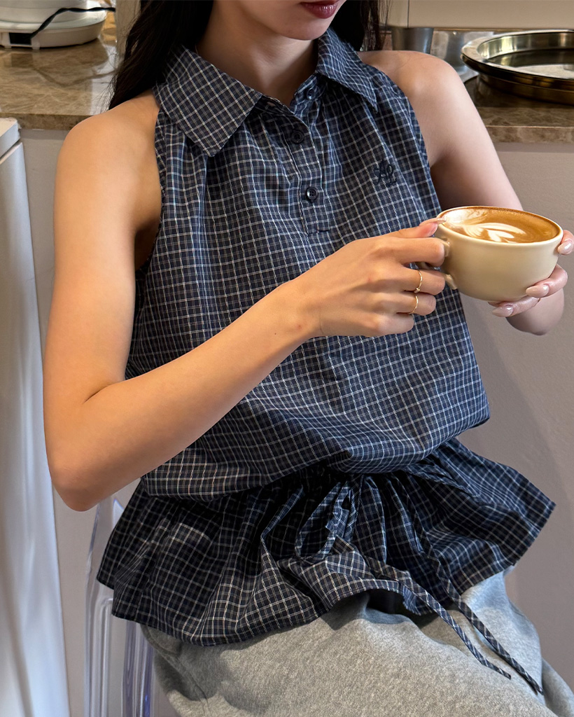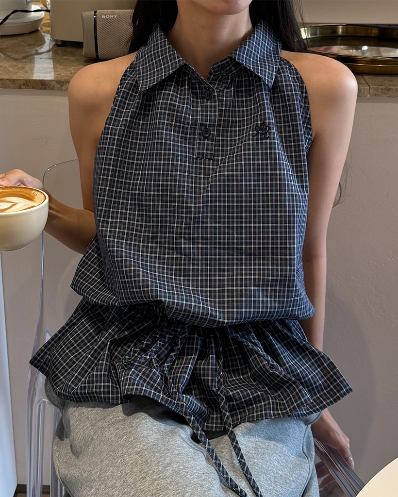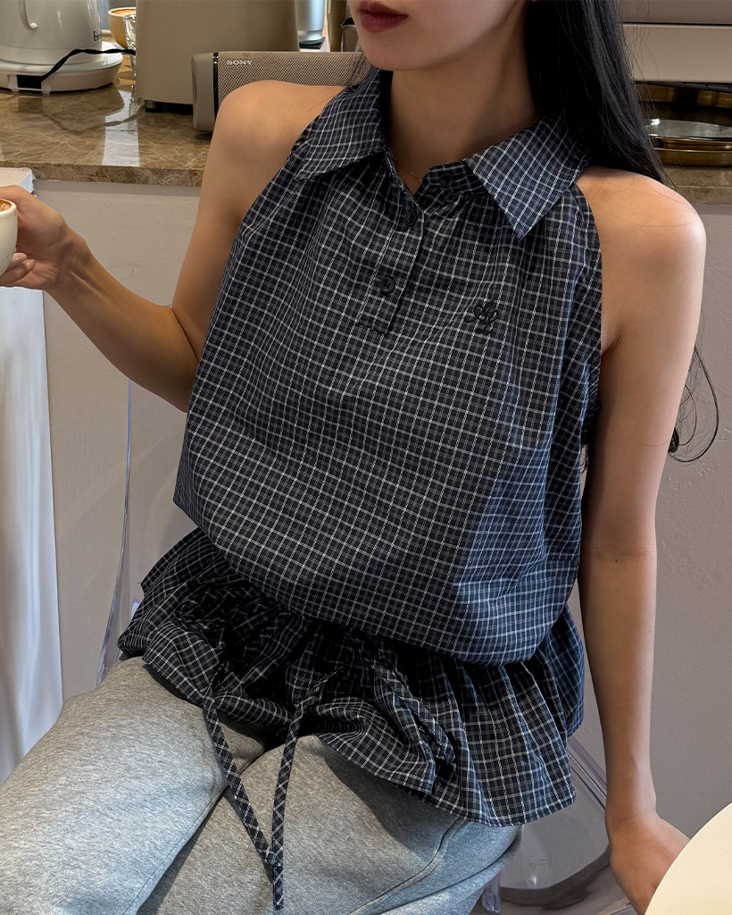 カラーチェックノースリーブブラウス