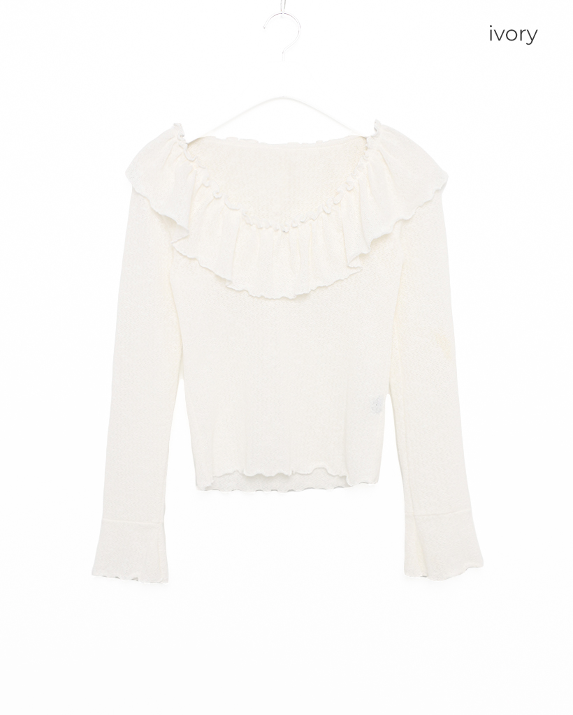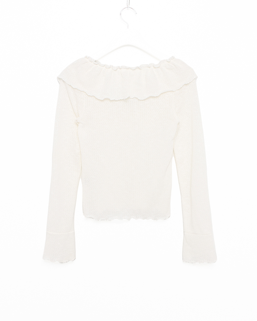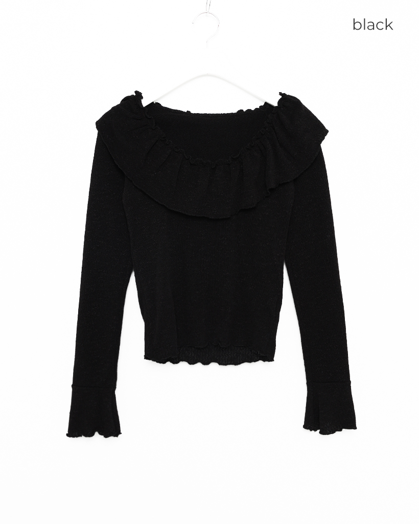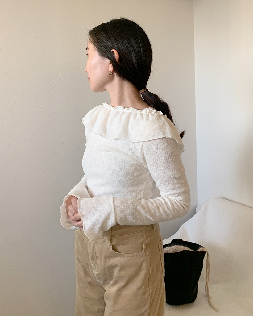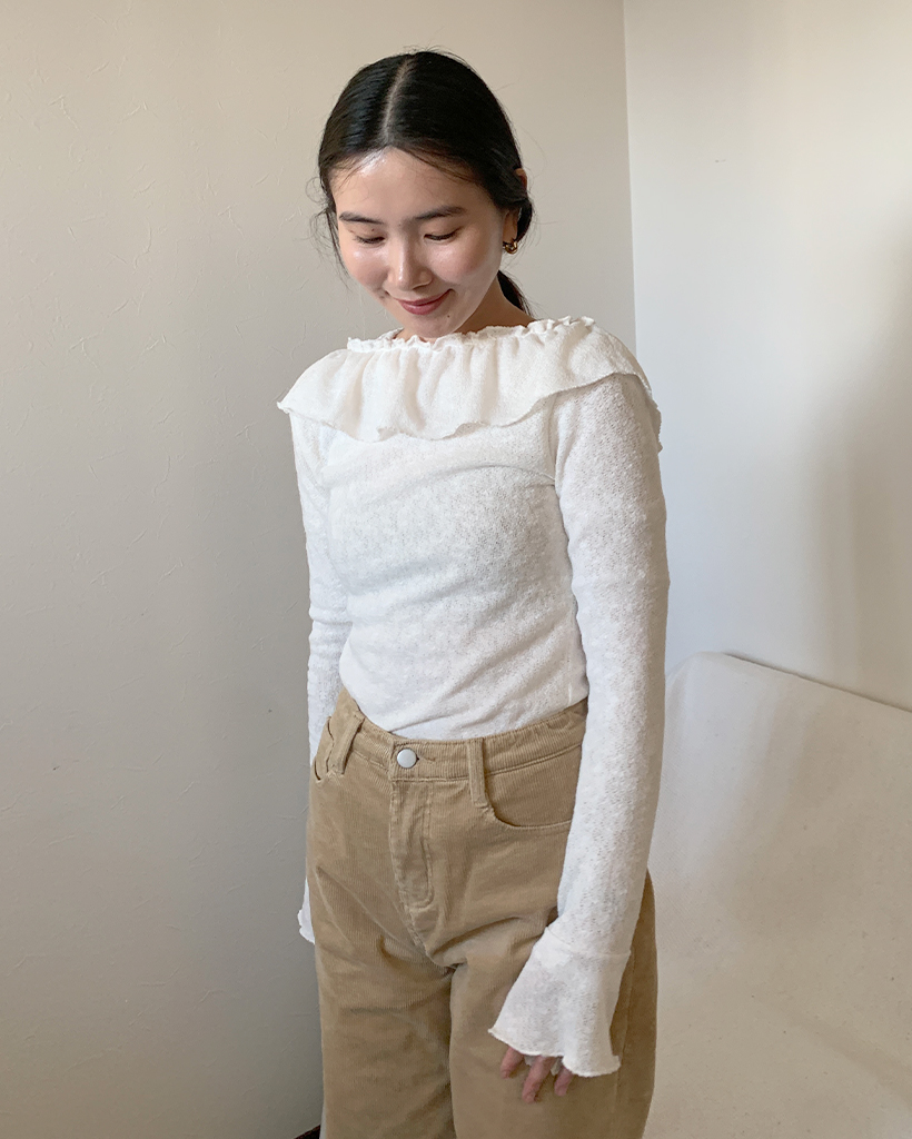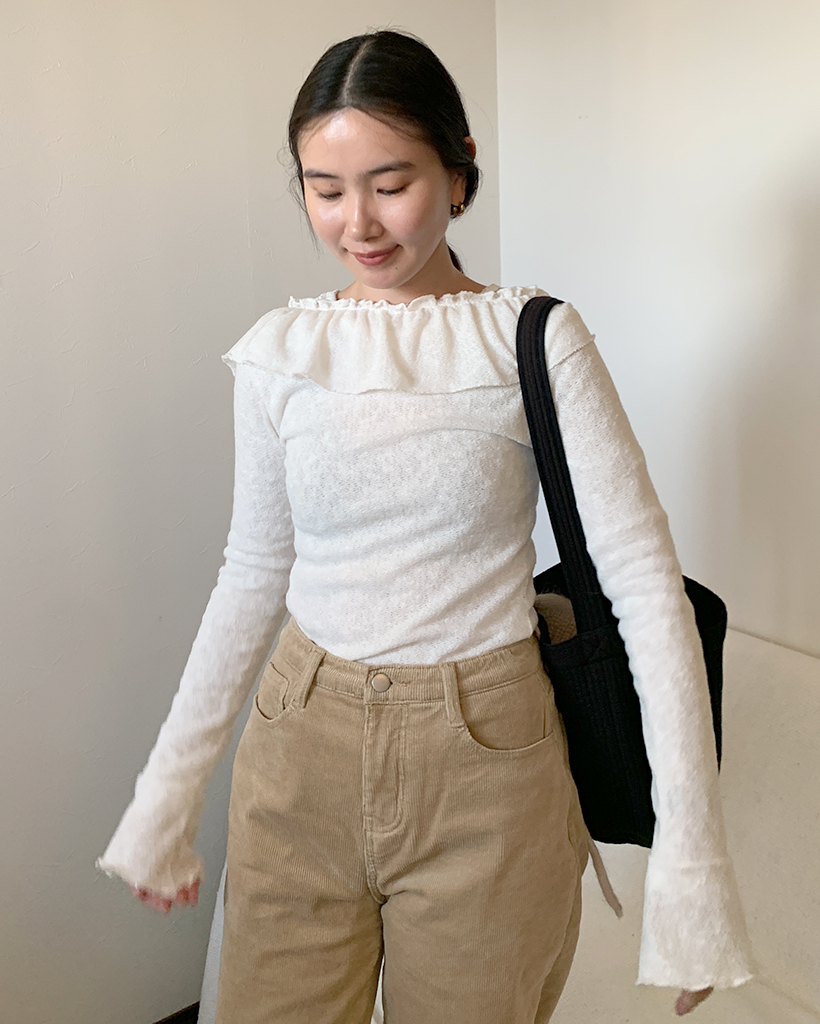 オフショルダーフリルシャーリングTシャツ