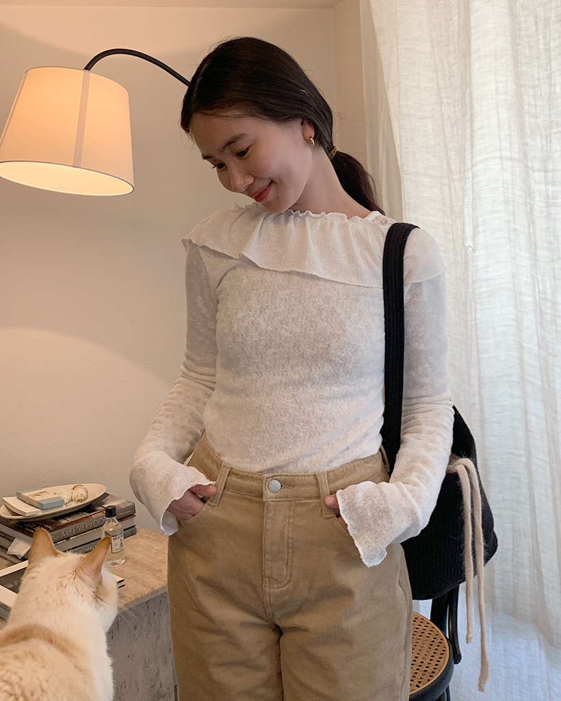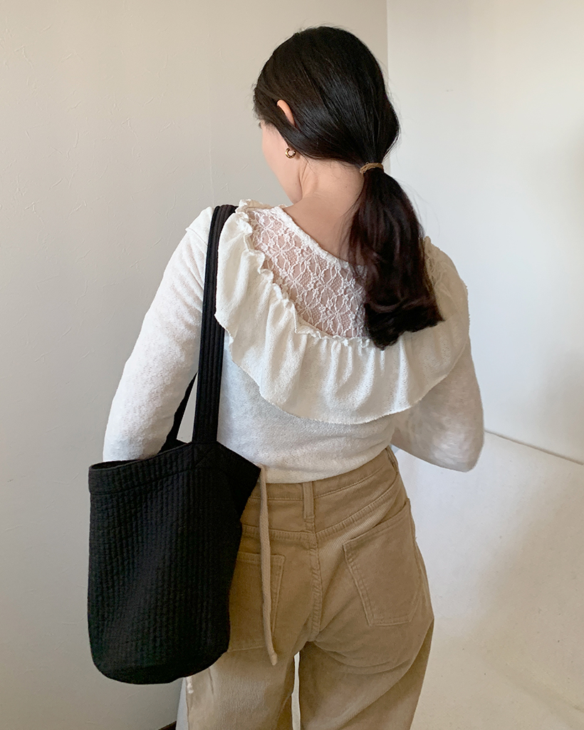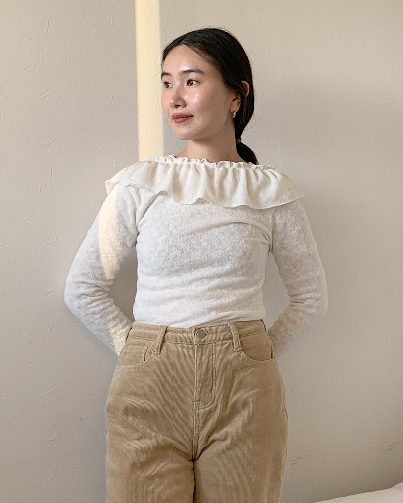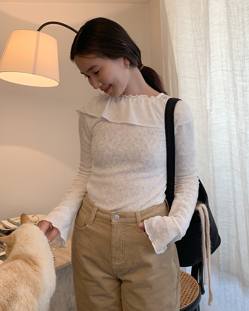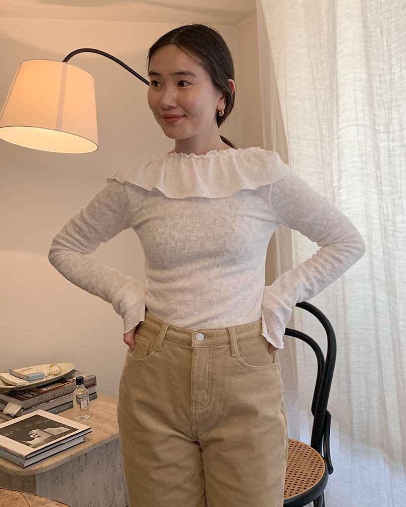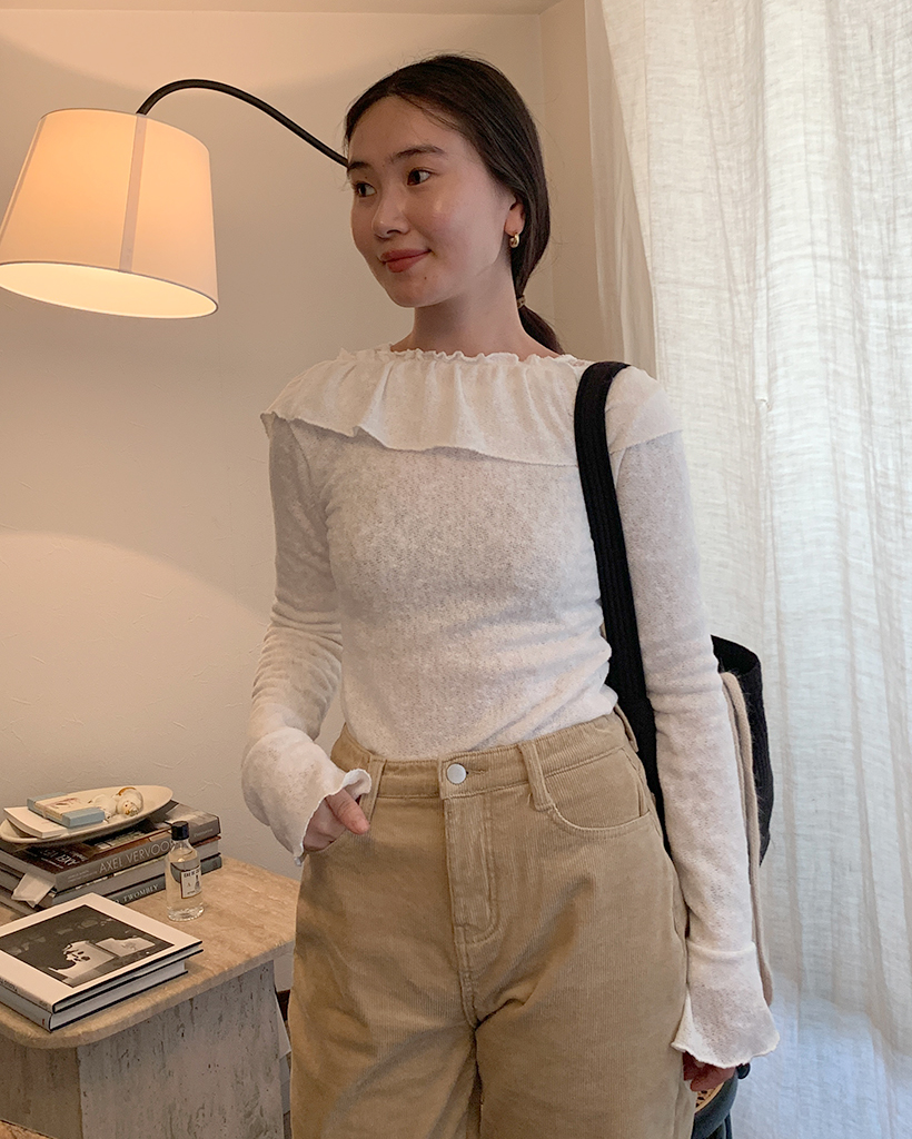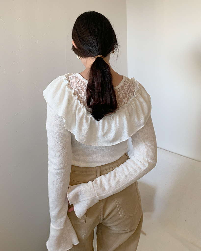 オフショルダーフリルシャーリングTシャツ
