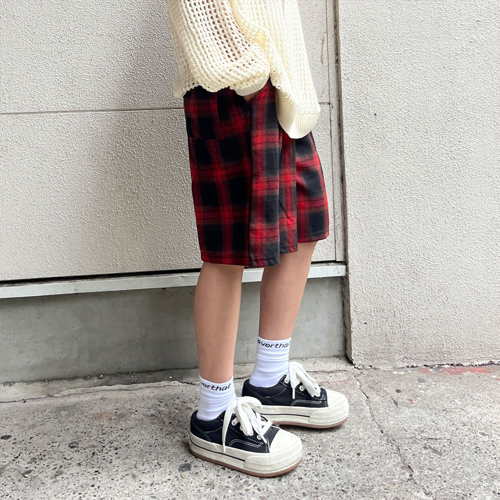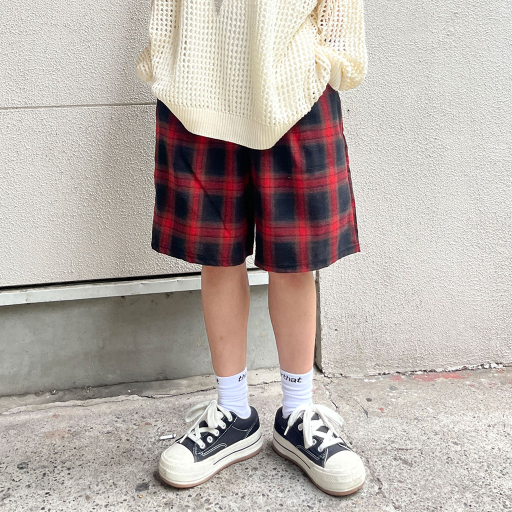 (ユニセックス) チェックコットンショーツ